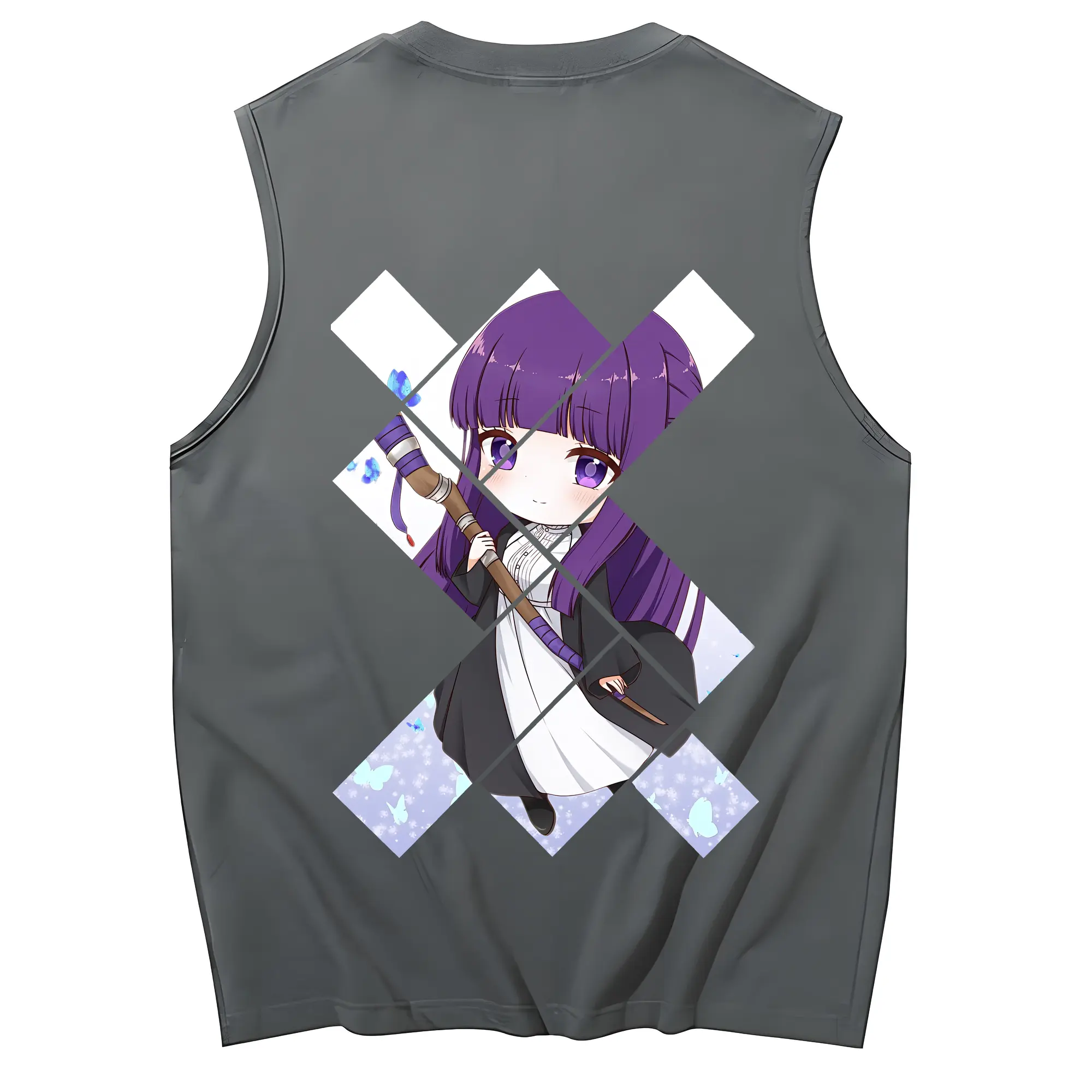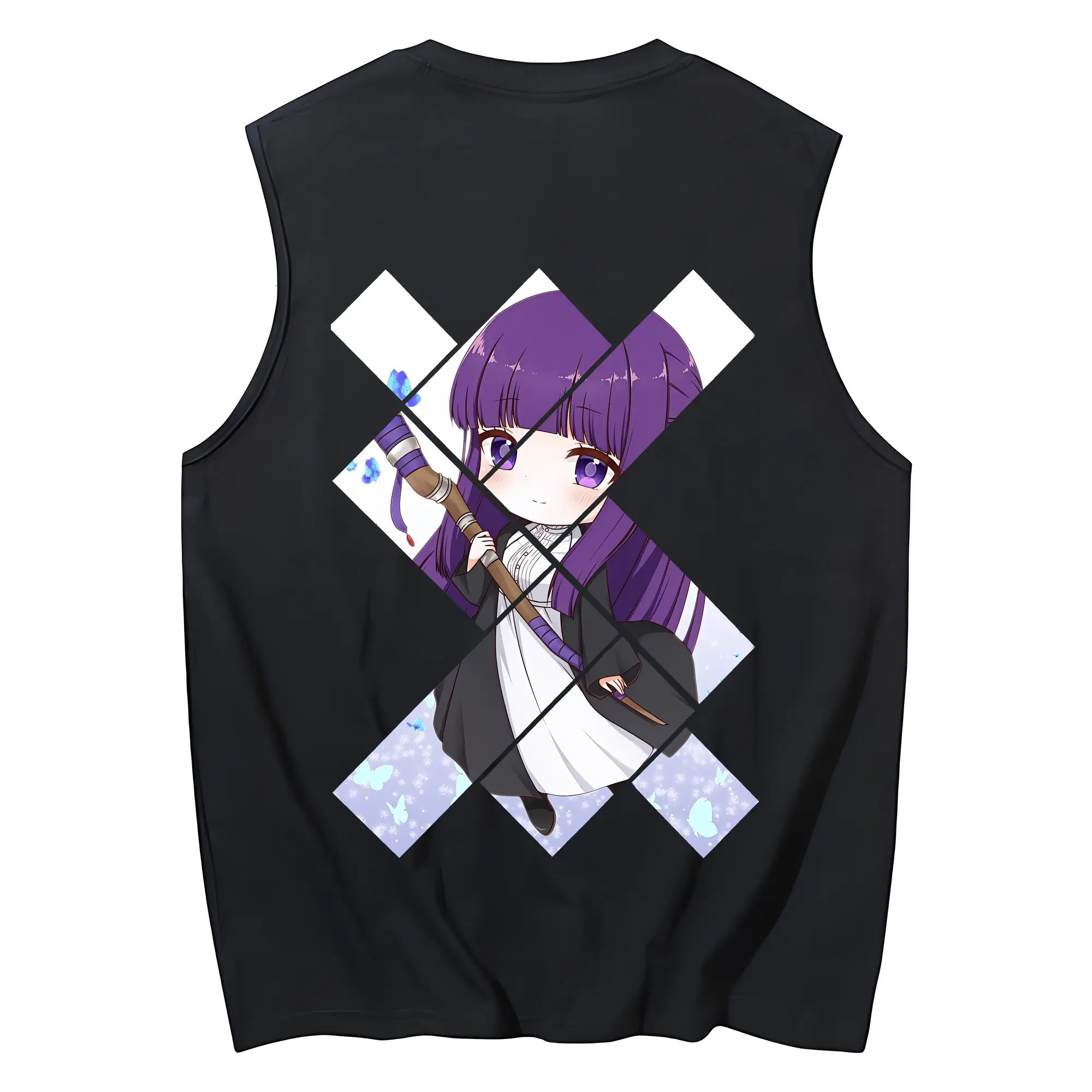葬送のフリーレン(Frieren) グッズ,フェルン(Fern) - コットン100% タンクトップ ・ 背面プリント ・ タイトシルエット ・ 快適 通気性 ・ スポーツ カジュアル 散歩用