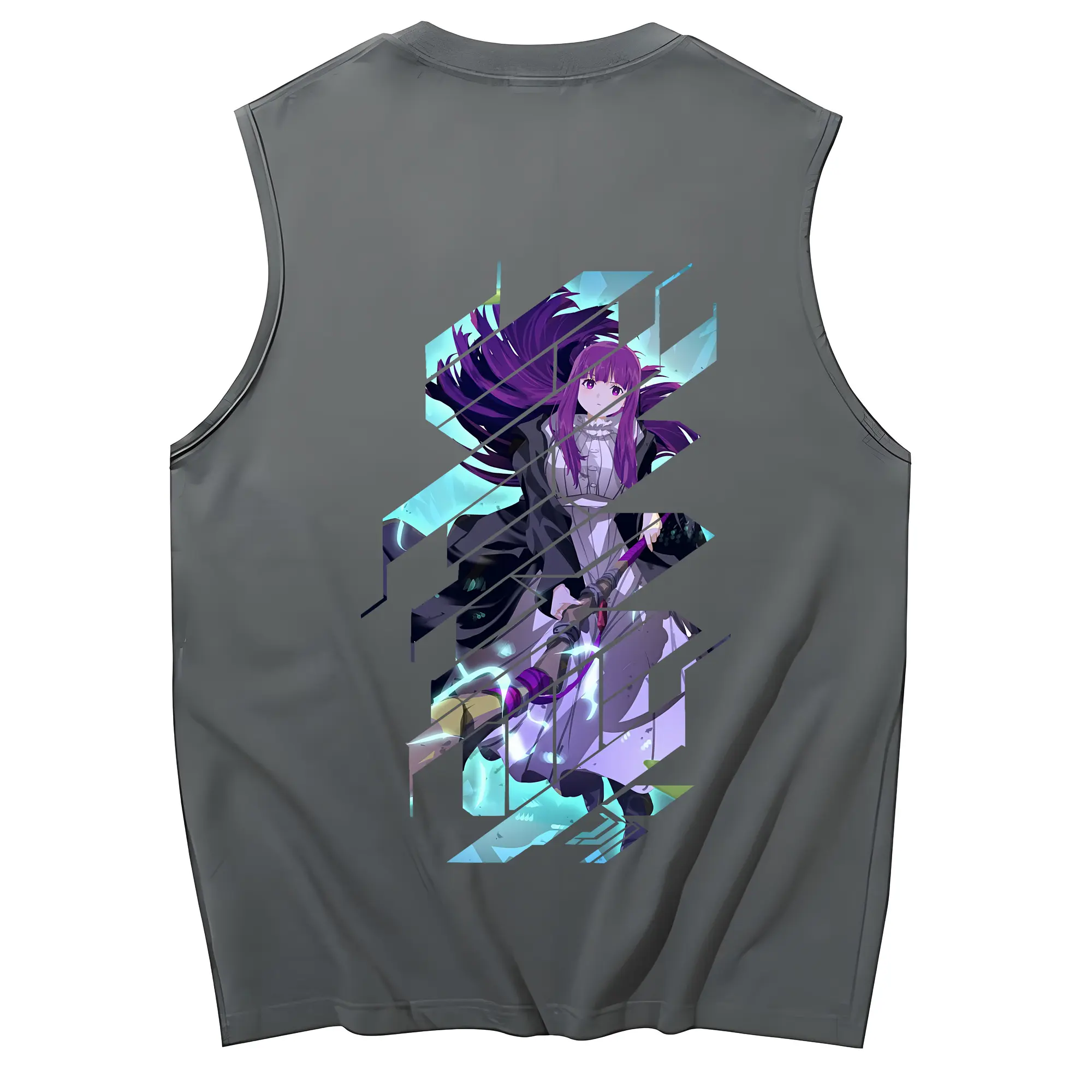 葬送のフリーレン(Frieren) グッズ,フェルン(Fern) - コットン100% タンクトップ ・ 背面プリント ・ タイトシルエット ・ 快適 通気性 ・ スポーツ カジュアル 散歩用