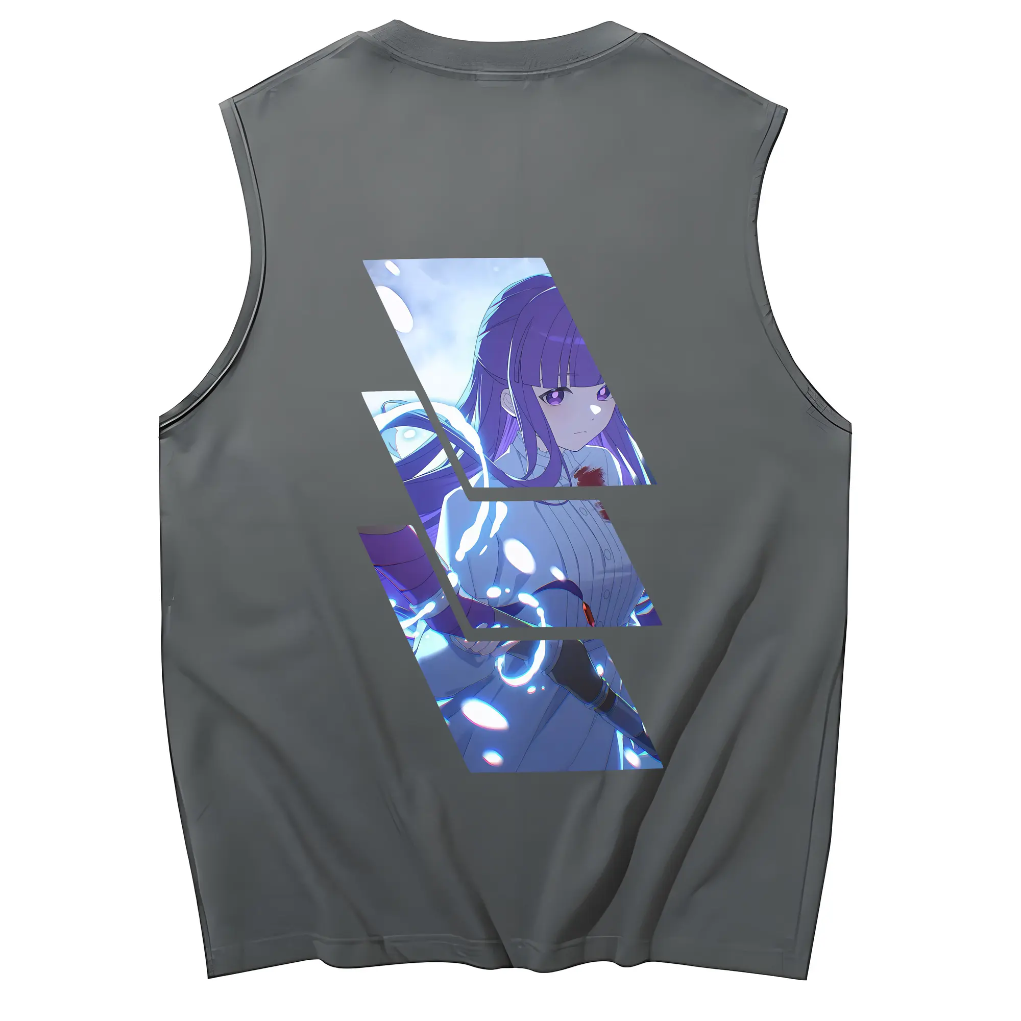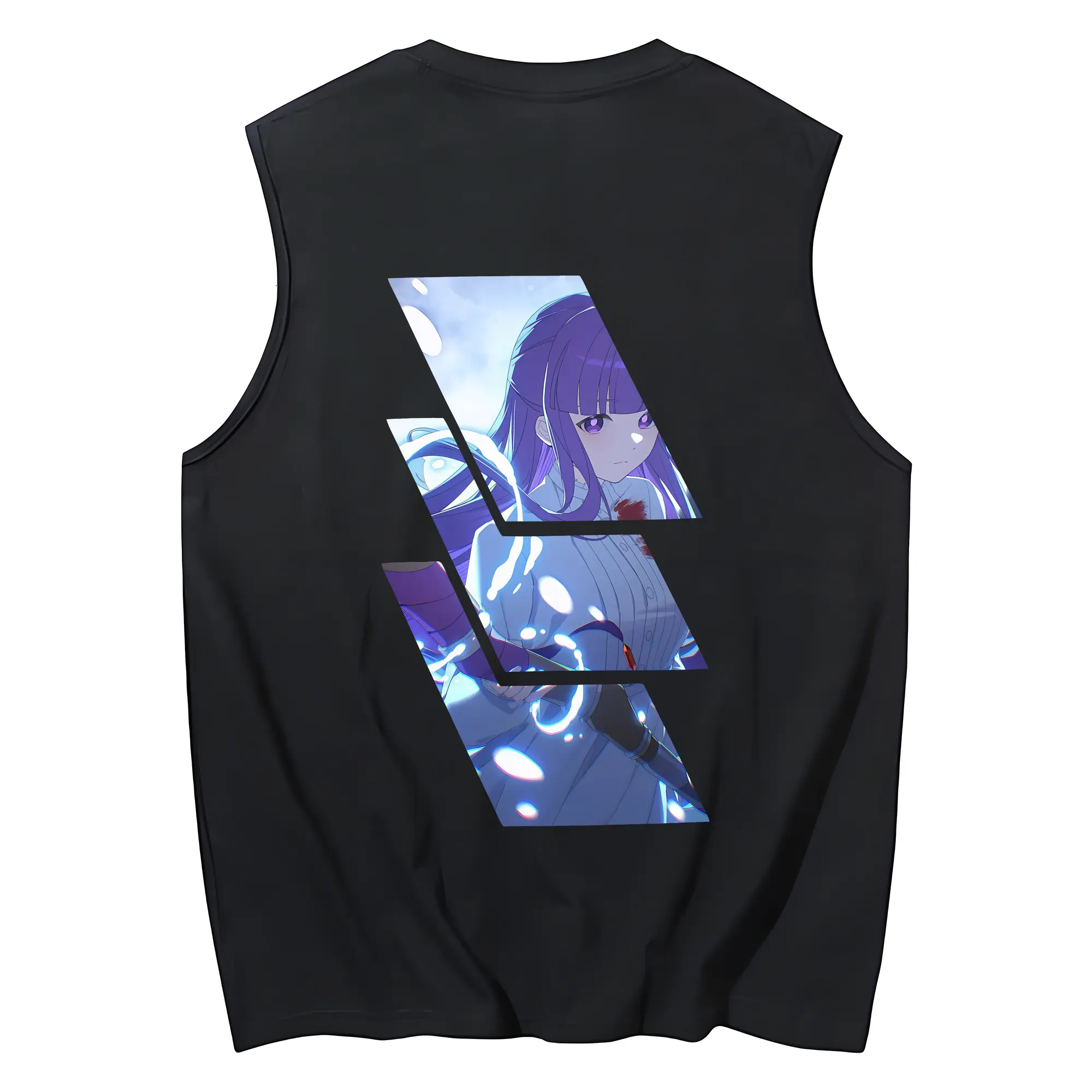 葬送のフリーレン(Frieren) グッズ,フェルン(Fern) - コットン100% タンクトップ ・ 背面プリント ・ タイトシルエット ・ 快適 通気性 ・ スポーツ カジュアル 散歩用