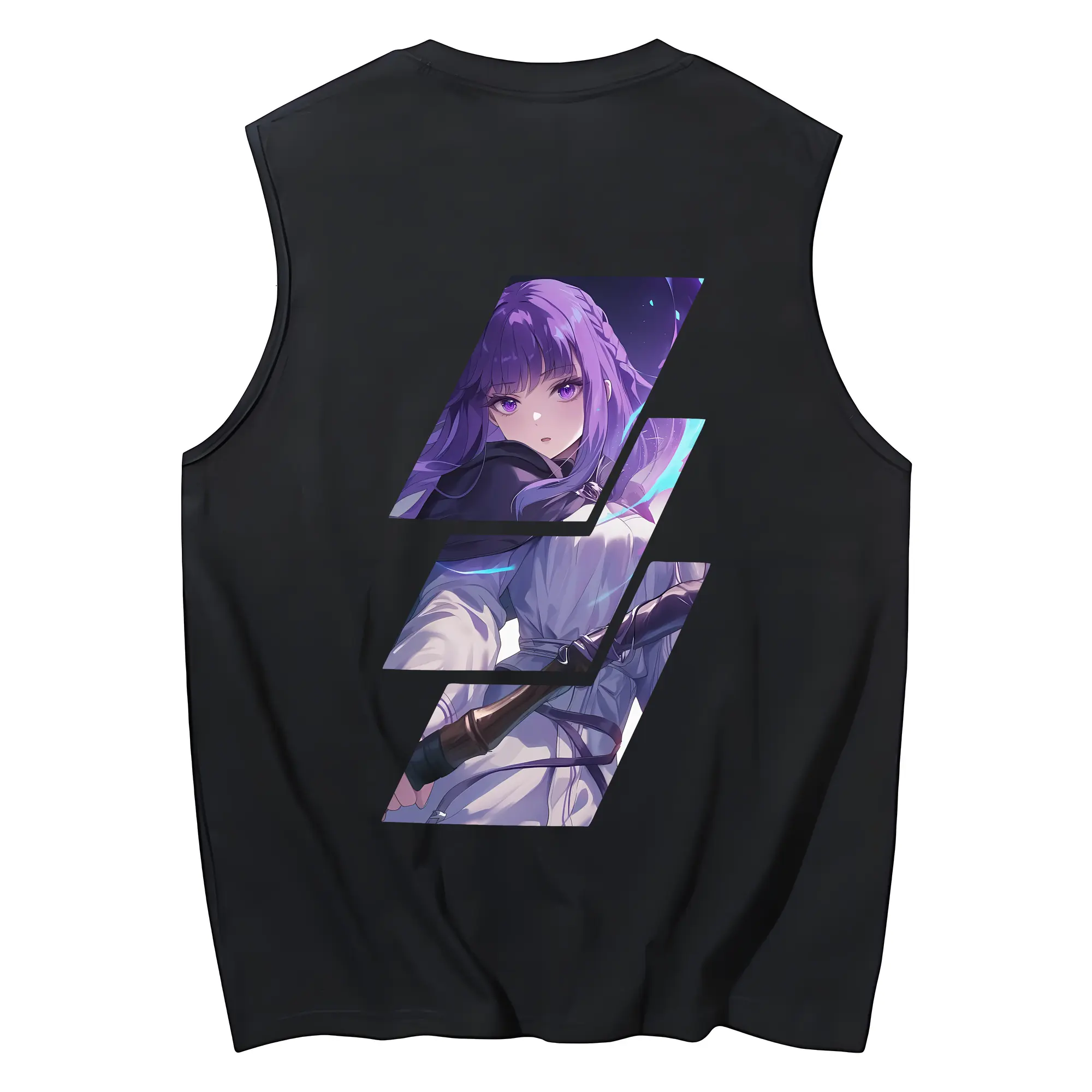 葬送のフリーレン(Frieren) グッズ,フェルン(Fern) - コットン100% タンクトップ ・ 背面プリント ・ タイトシルエット ・ 快適 通気性 ・ スポーツ カジュアル 散歩用