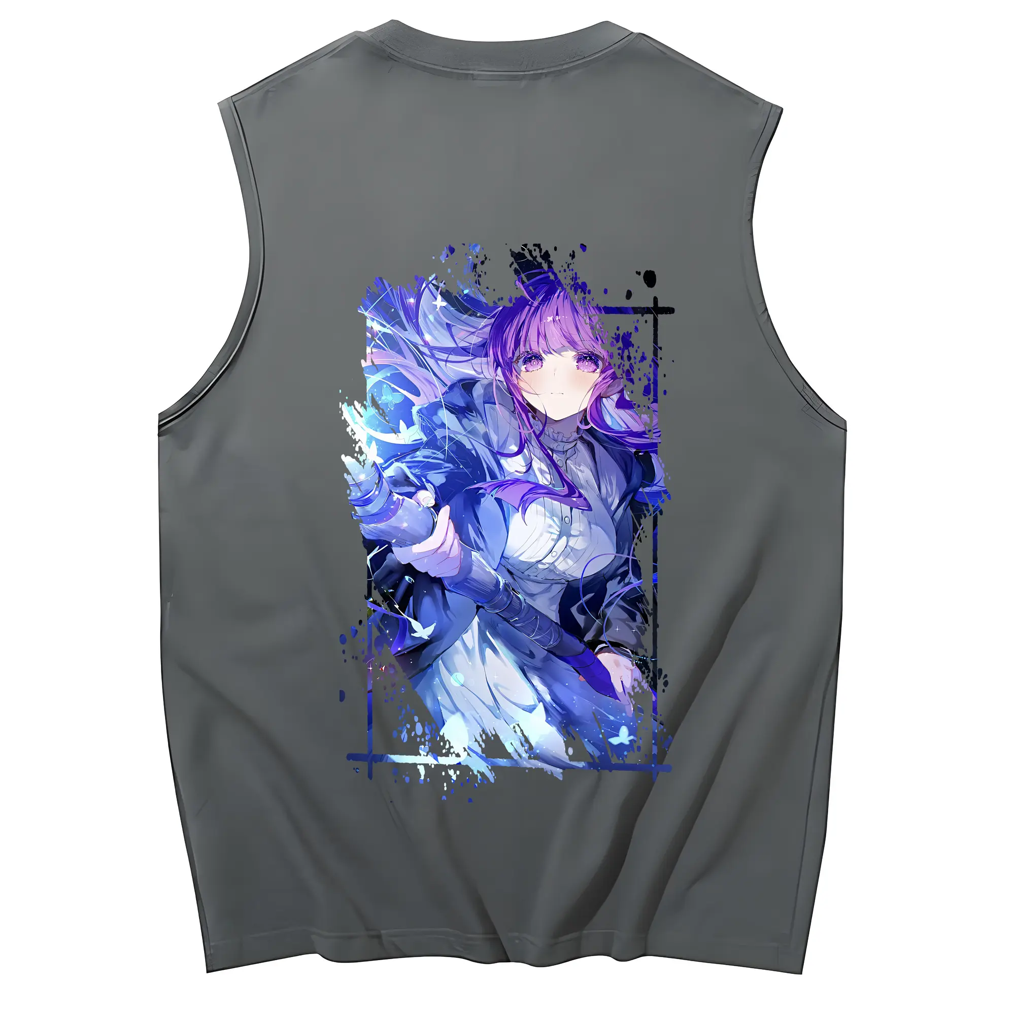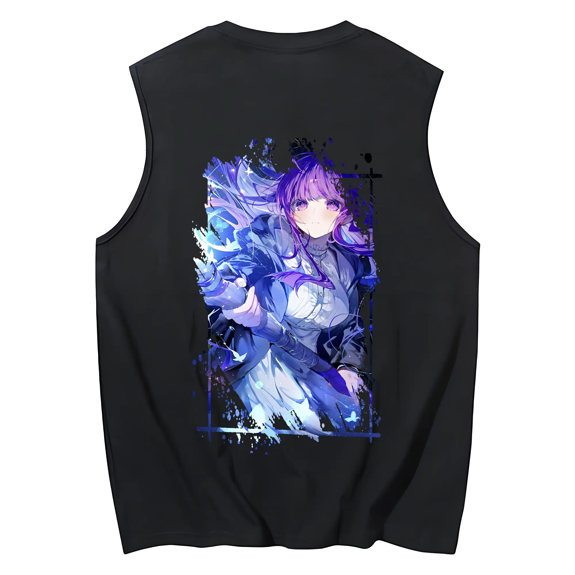葬送のフリーレン(Frieren) グッズ,フェルン(Fern) - コットン100% タンクトップ ・ 背面プリント ・ タイトシルエット ・ 快適 通気性 ・ スポーツ カジュアル 散歩用