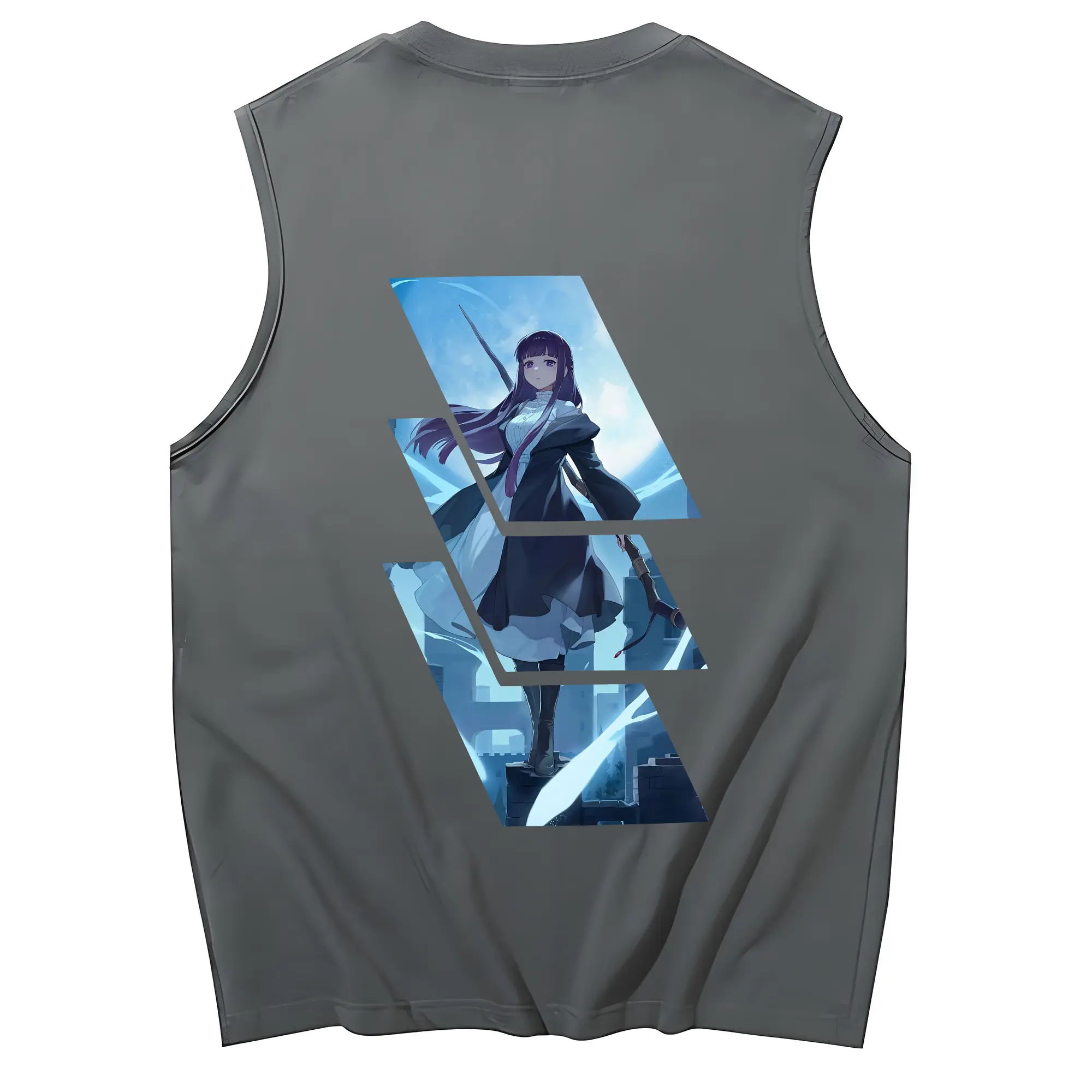 葬送のフリーレン(Frieren) グッズ,フェルン(Fern) - コットン100% タンクトップ ・ 背面プリント ・ タイトシルエット ・ 快適 通気性 ・ スポーツ カジュアル 散歩用