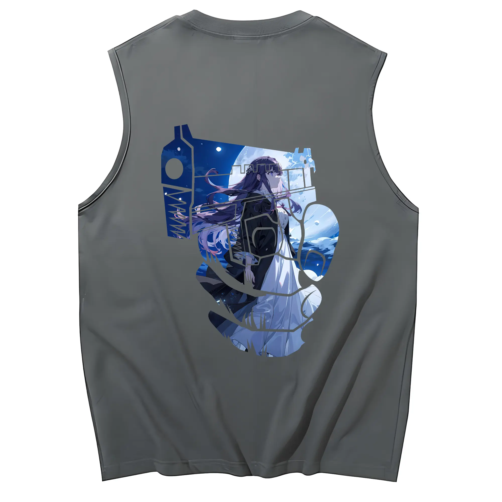 葬送のフリーレン(Frieren) グッズ,フェルン(Fern) - コットン100% タンクトップ ・ 背面プリント ・ タイトシルエット ・ 快適 通気性 ・ スポーツ カジュアル 散歩用