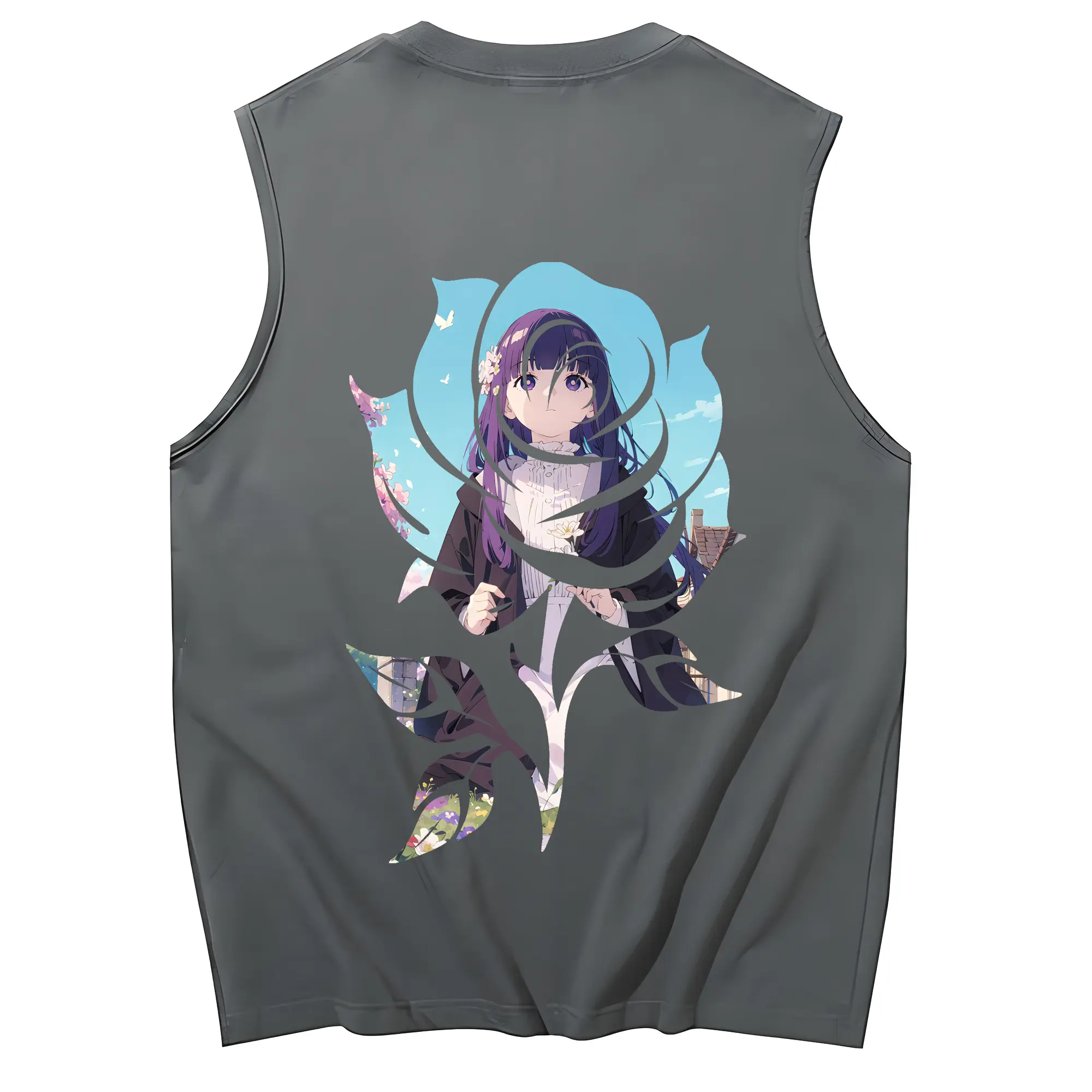 葬送のフリーレン(Frieren) グッズ,フェルン(Fern) - コットン100% タンクトップ ・ 背面プリント ・ タイトシルエット ・ 快適 通気性 ・ スポーツ カジュアル 散歩用