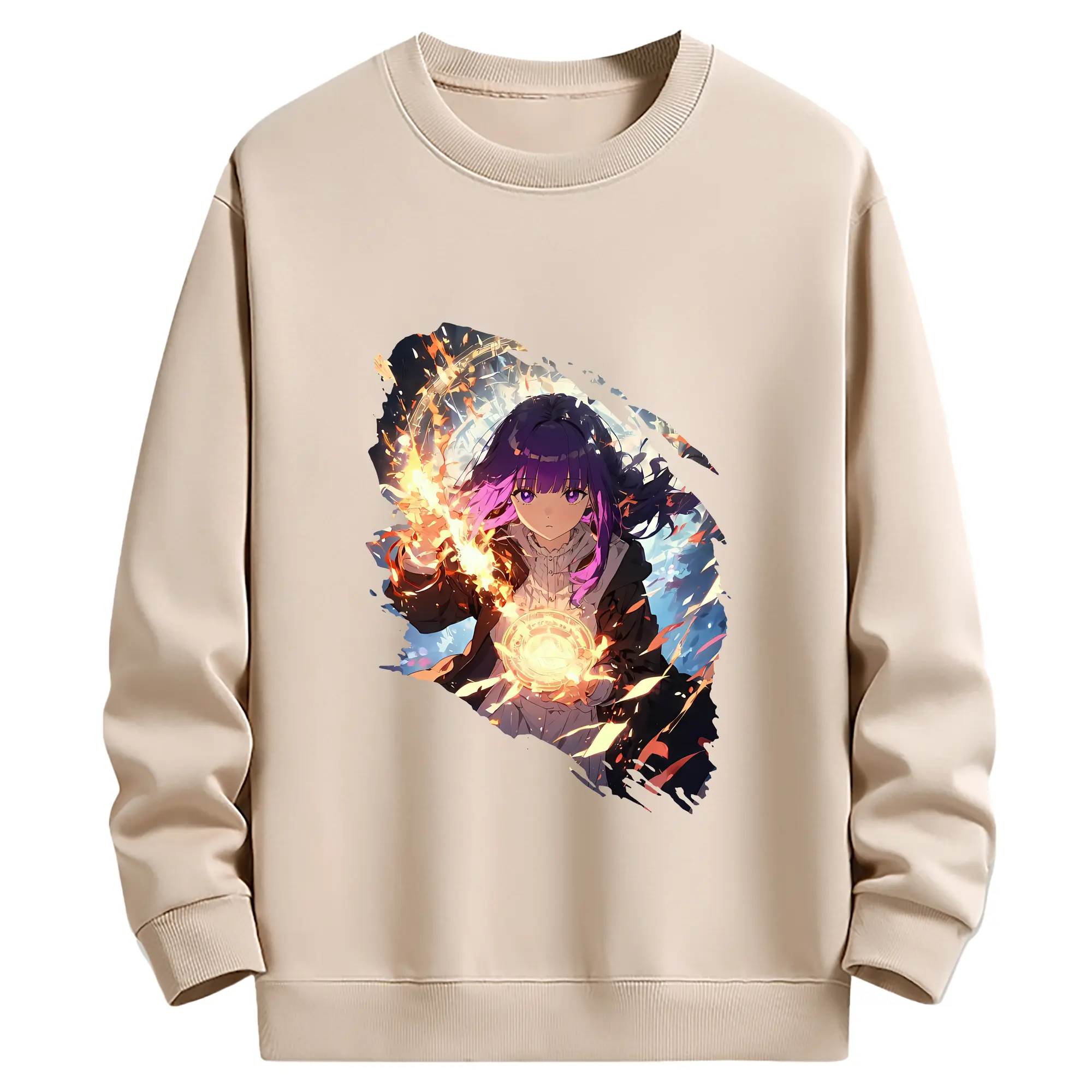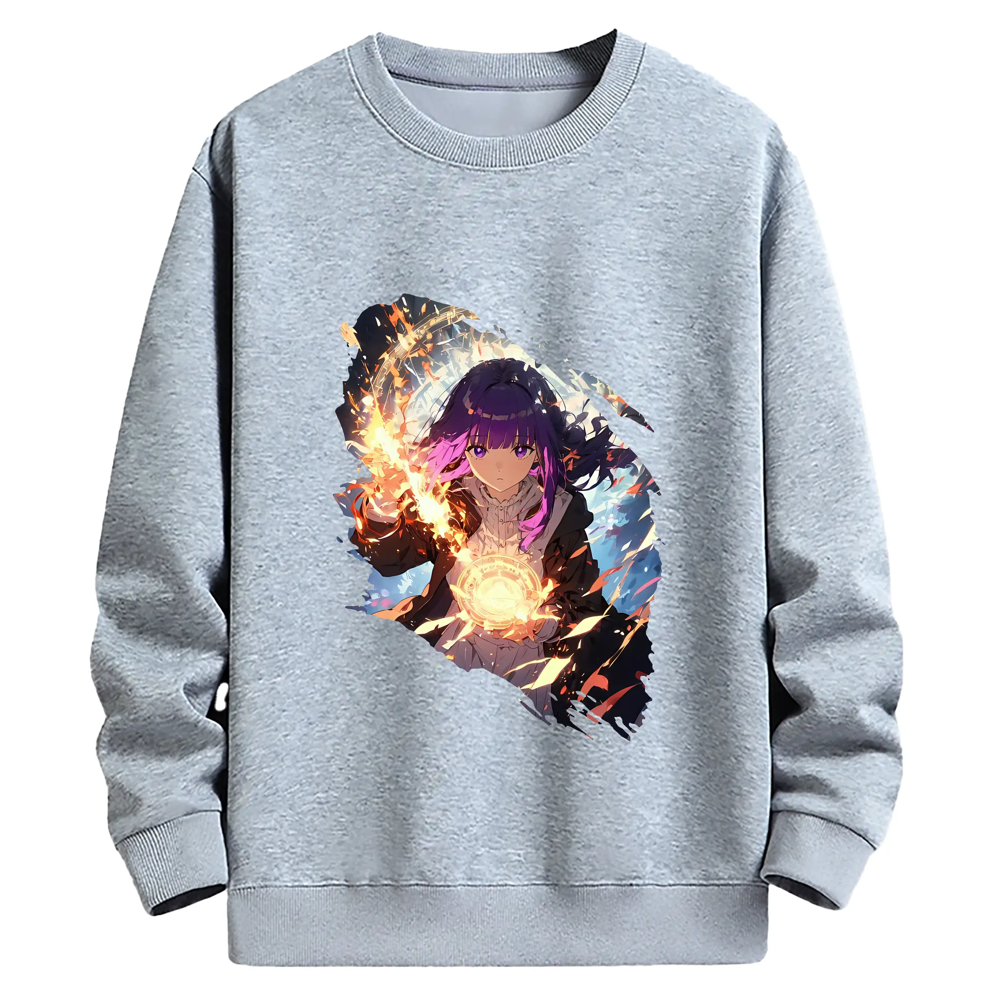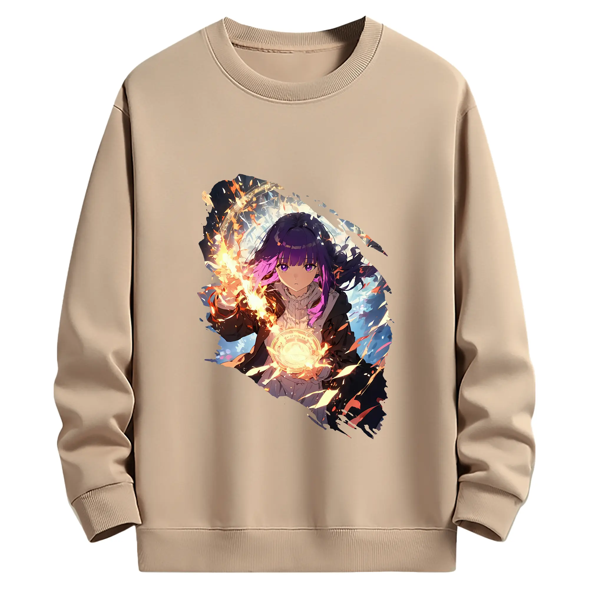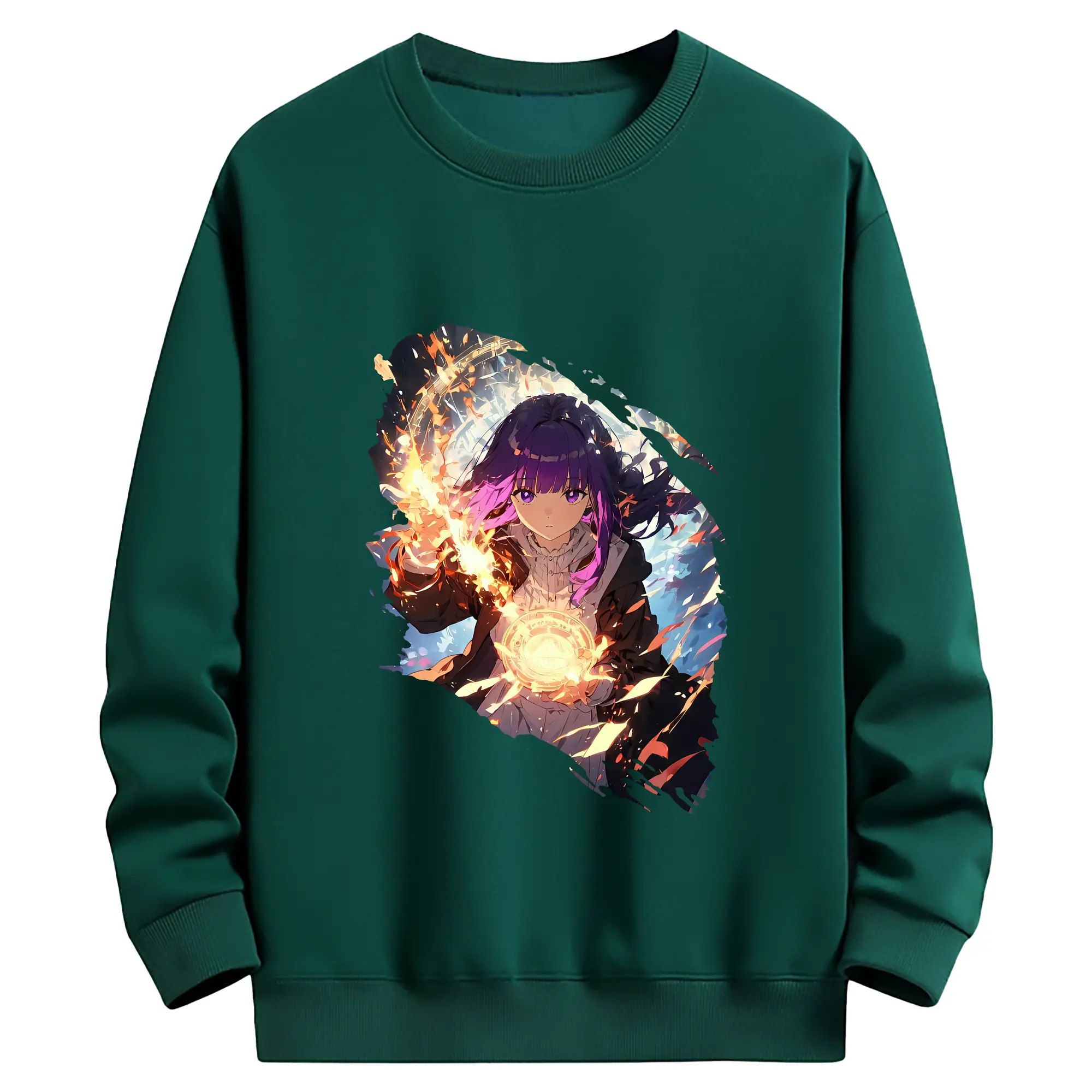 葬送のフリーレン(Frieren) グッズ,フェルン(Fern) - 薄手 クルーネック スウェット 裏毛260g · ポリエステル 春秋向け カジュアル 男女兼用 · トレーナー デイリー スポーツ 散歩に最適
