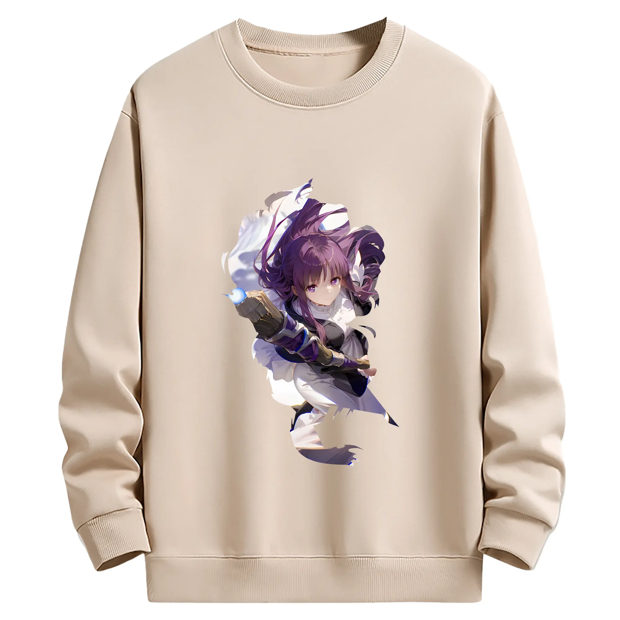 葬送のフリーレン(Frieren) グッズ,フェルン(Fern) - 薄手 クルーネック スウェット 裏毛260g · ポリエステル 春秋向け カジュアル 男女兼用 · トレーナー デイリー スポーツ 散歩に最適
