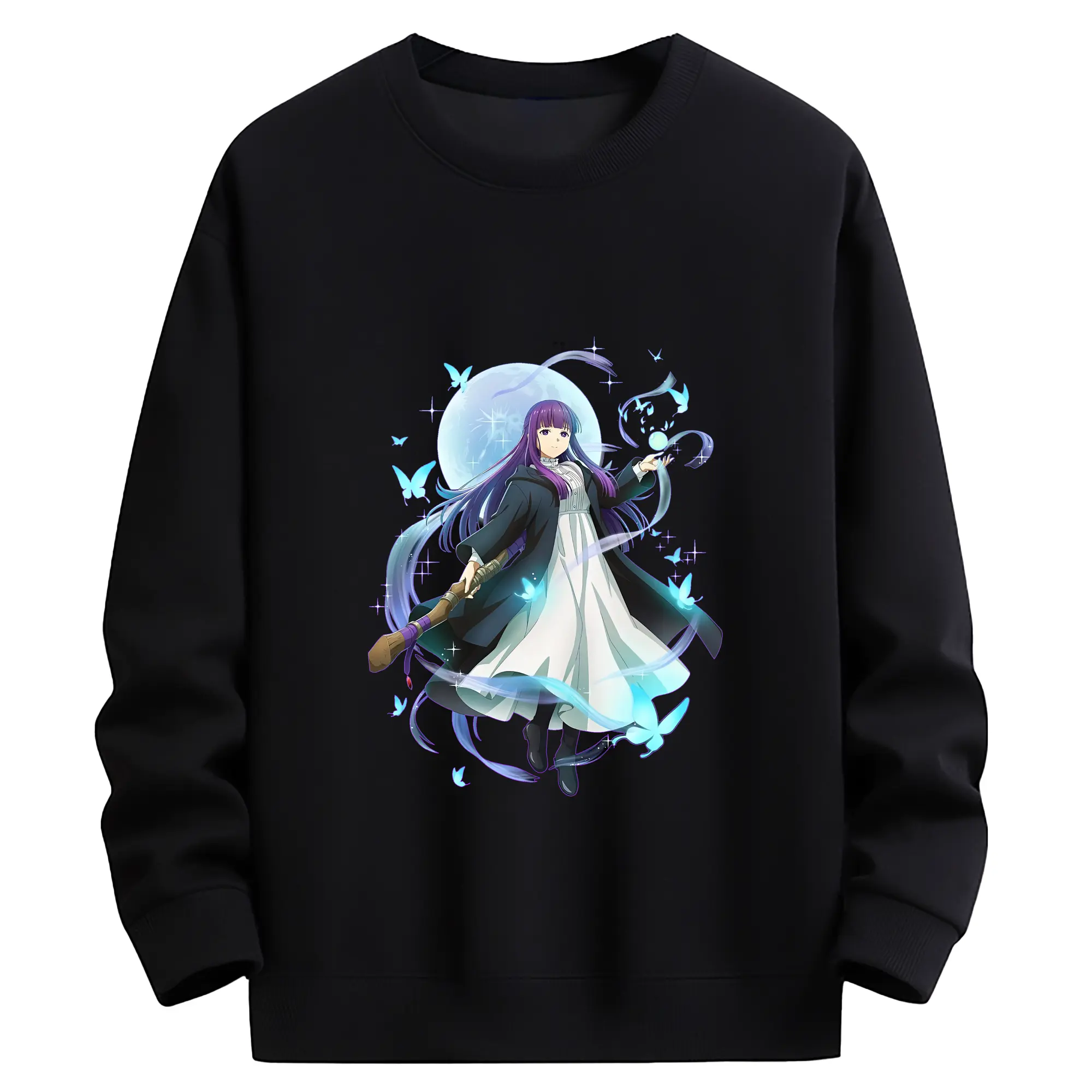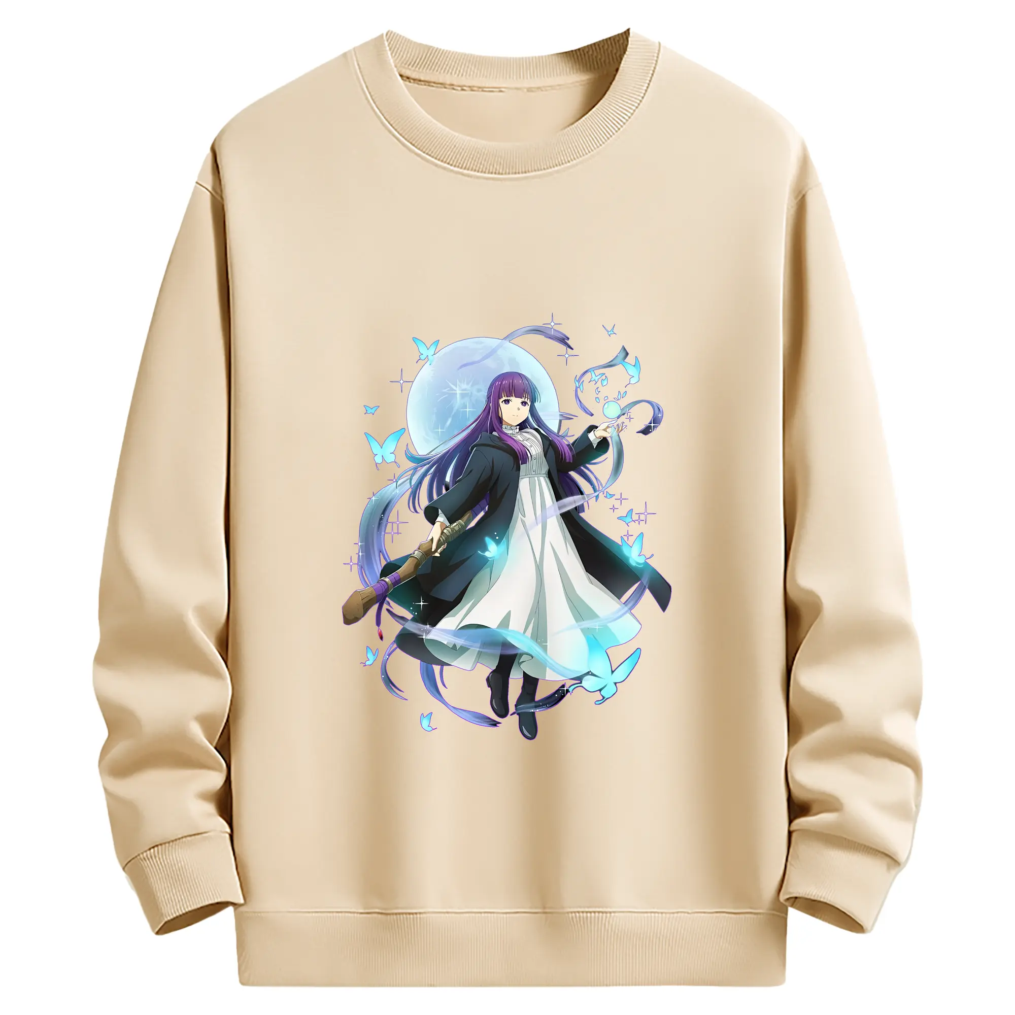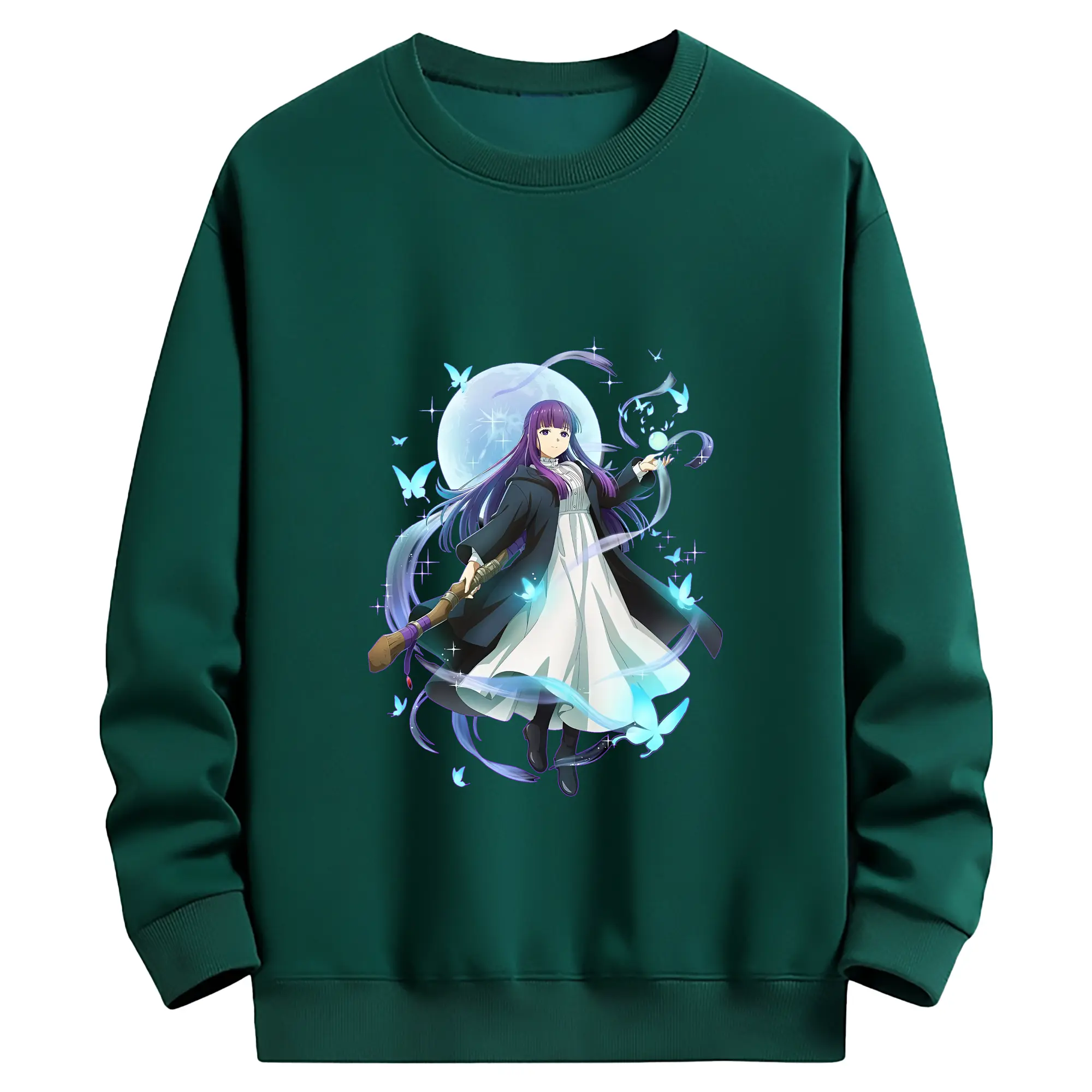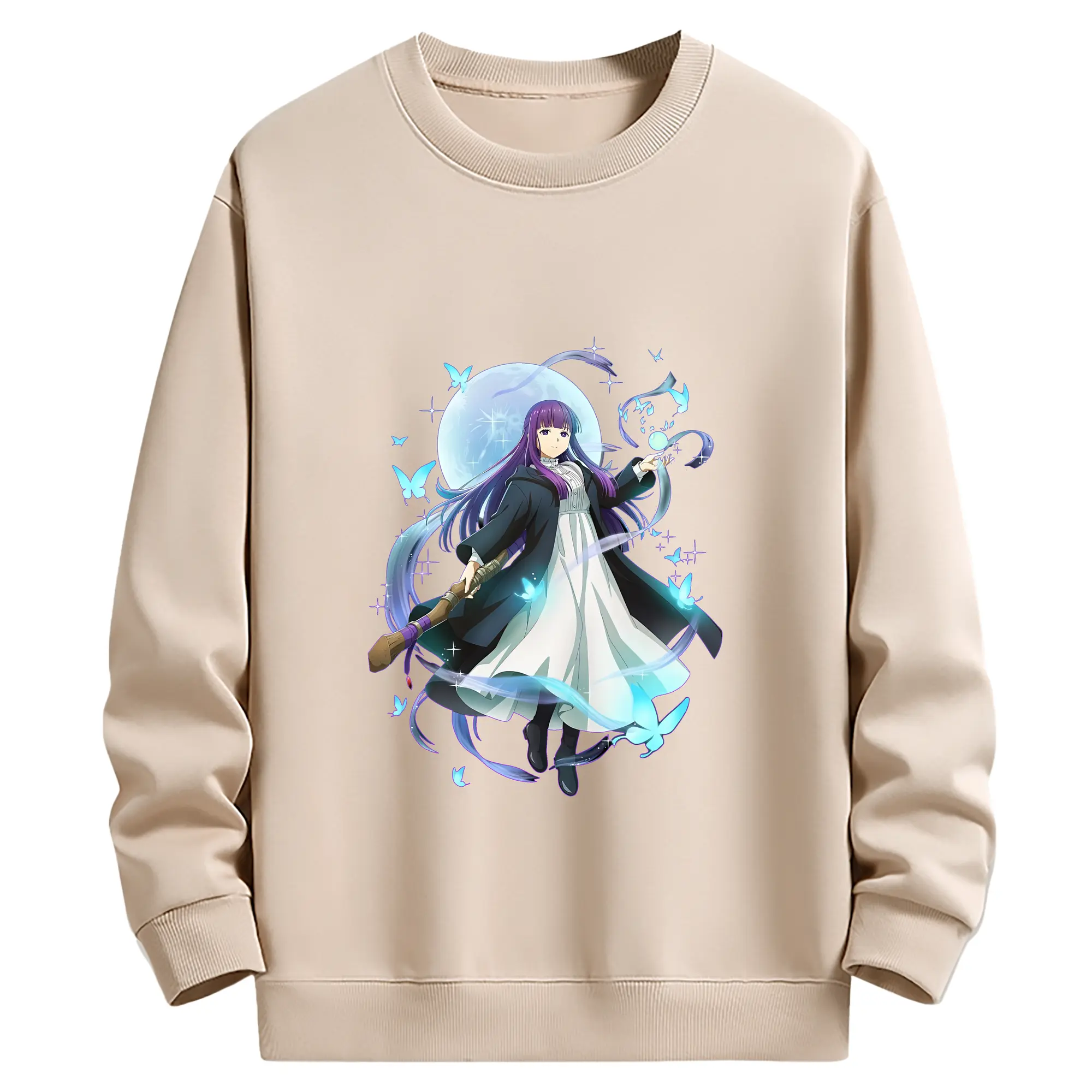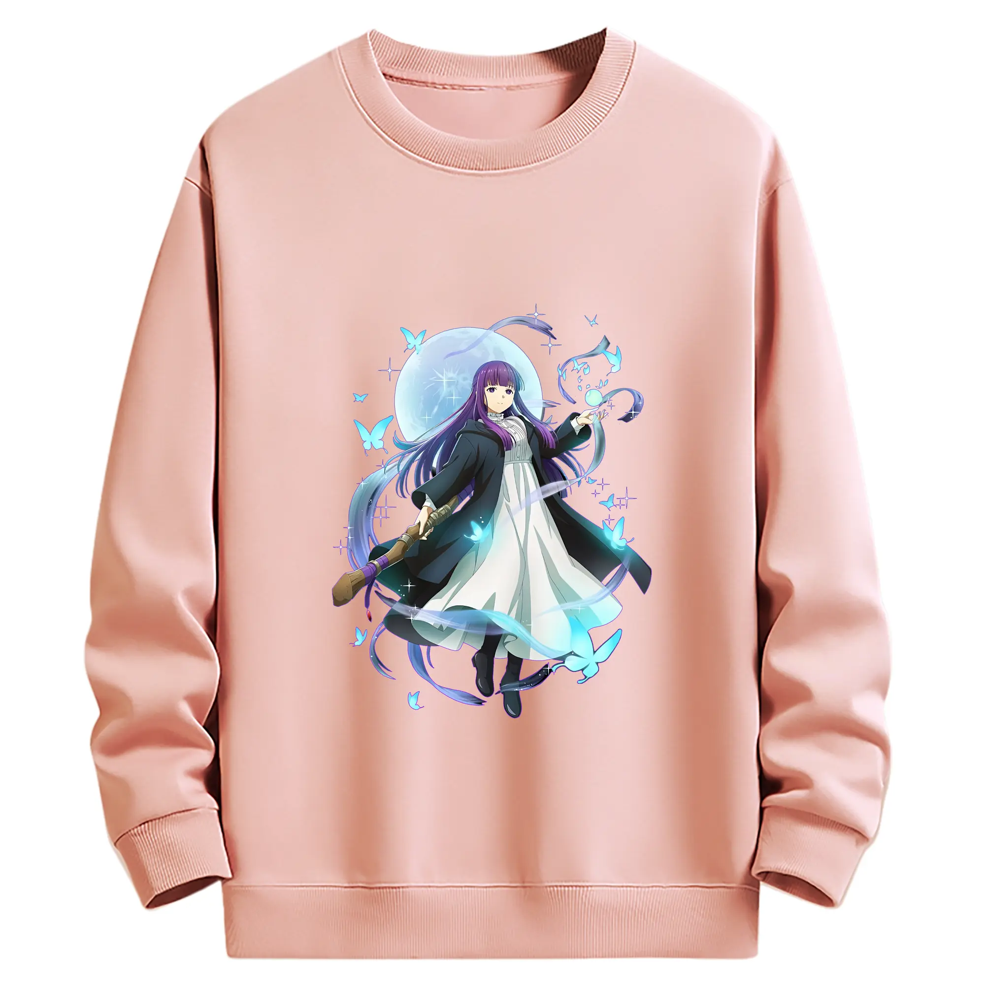 葬送のフリーレン(Frieren) グッズ,フェルン(Fern) - 薄手 クルーネック スウェット 裏毛260g · ポリエステル 春秋向け カジュアル 男女兼用 · トレーナー デイリー スポーツ 散歩に最適