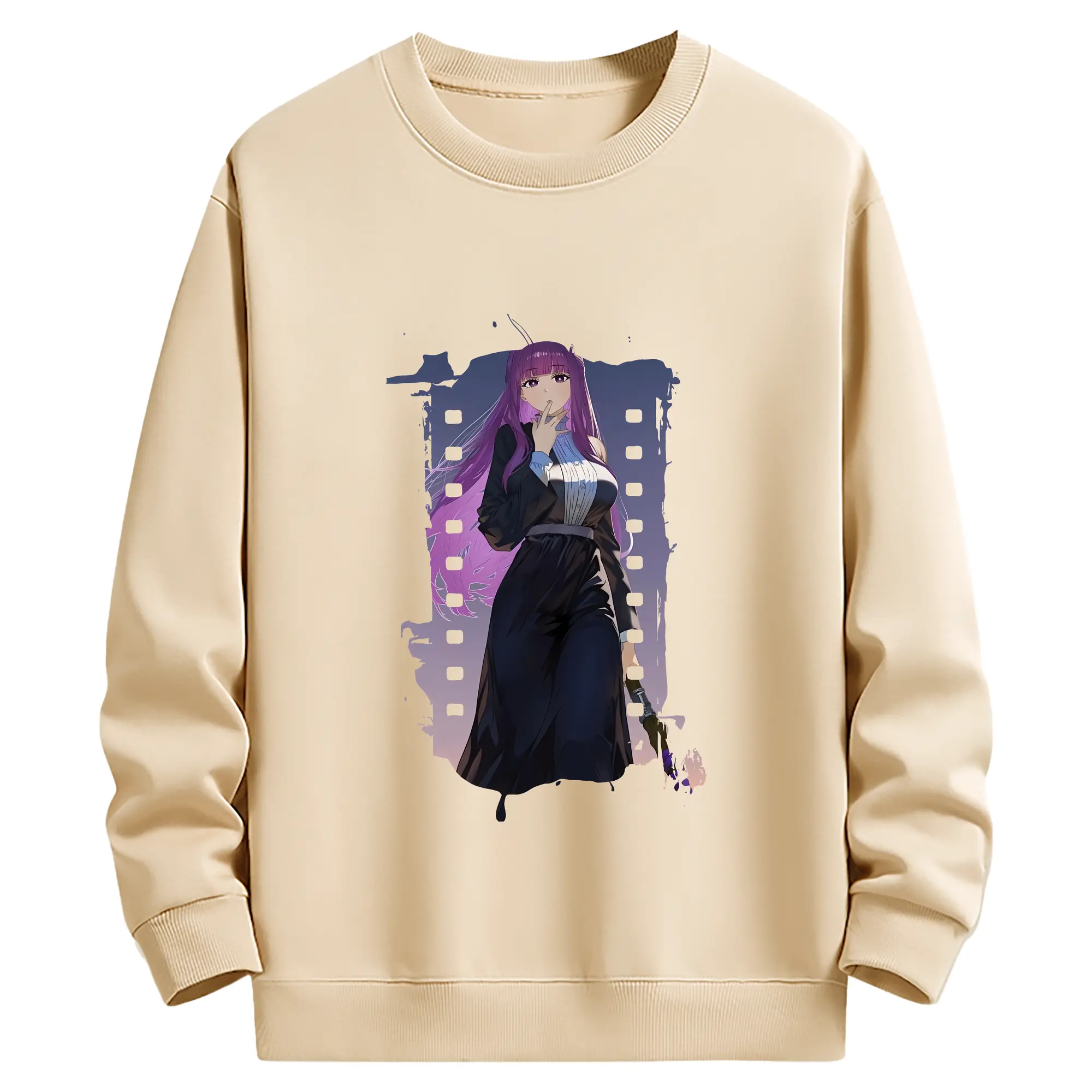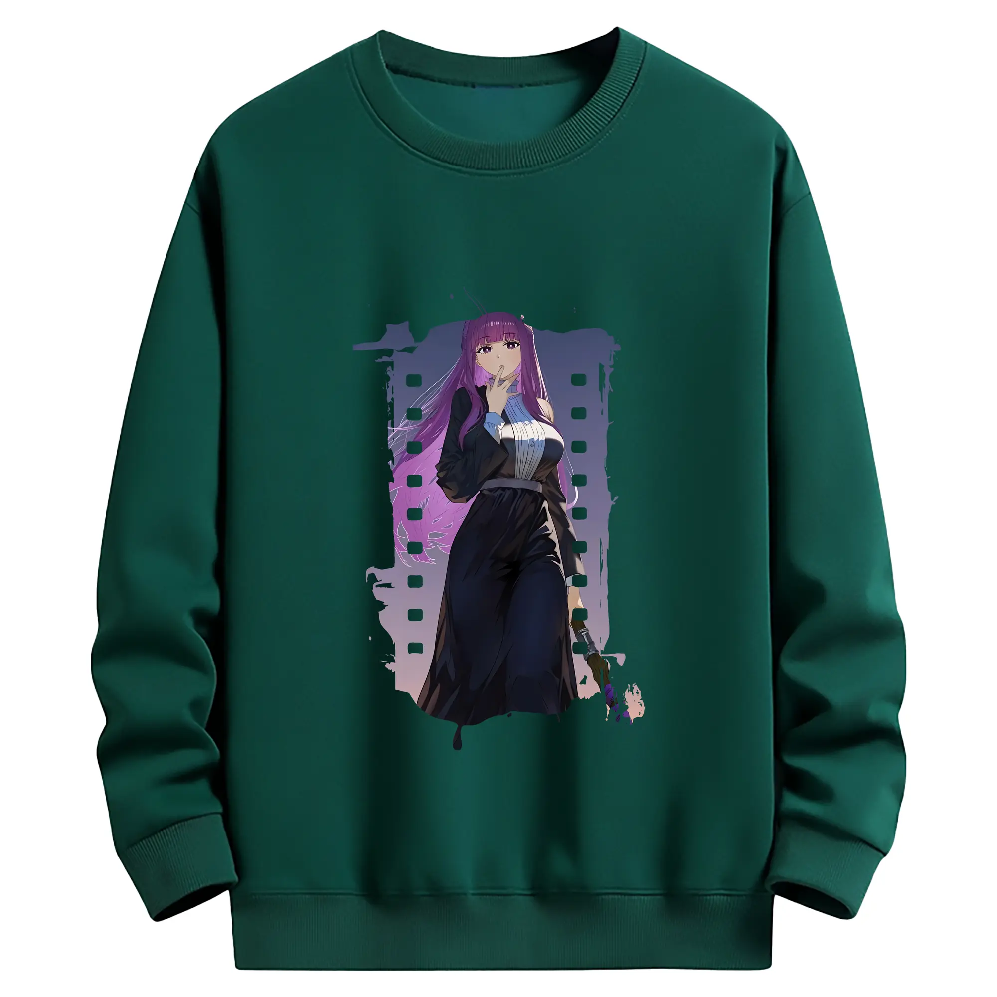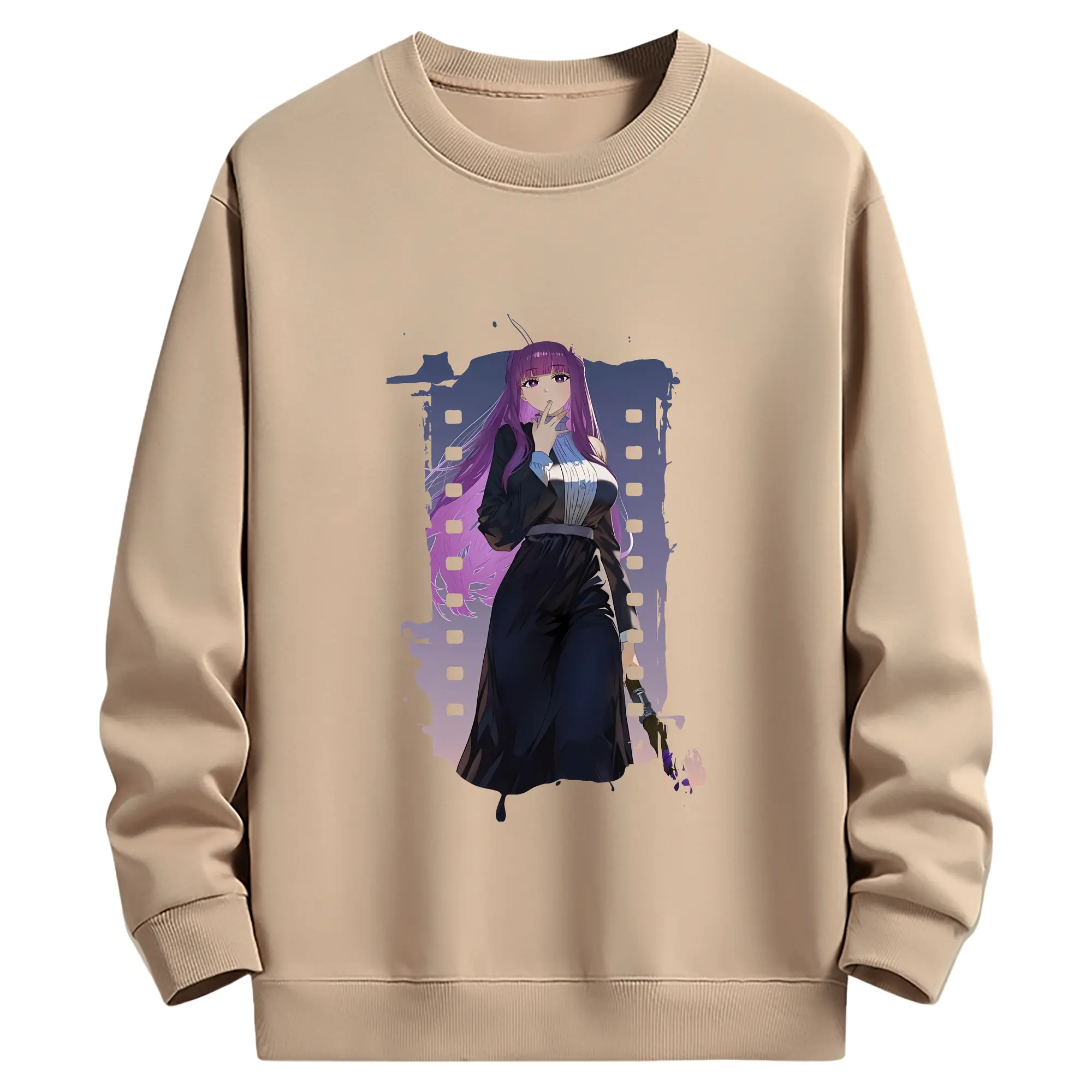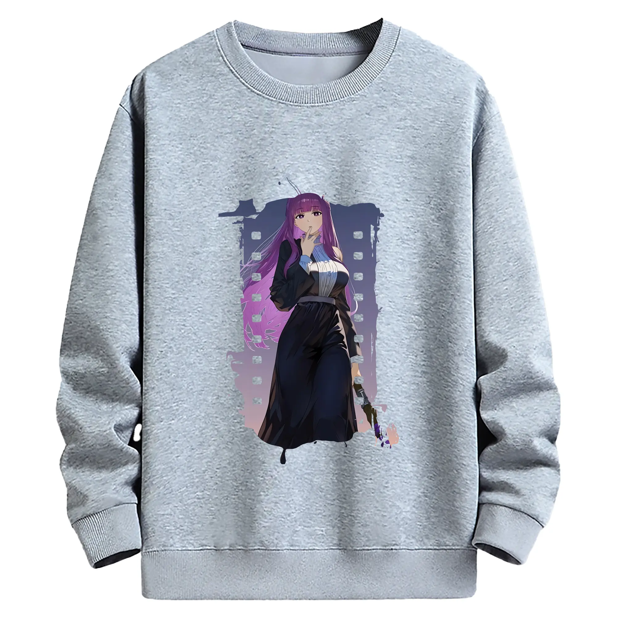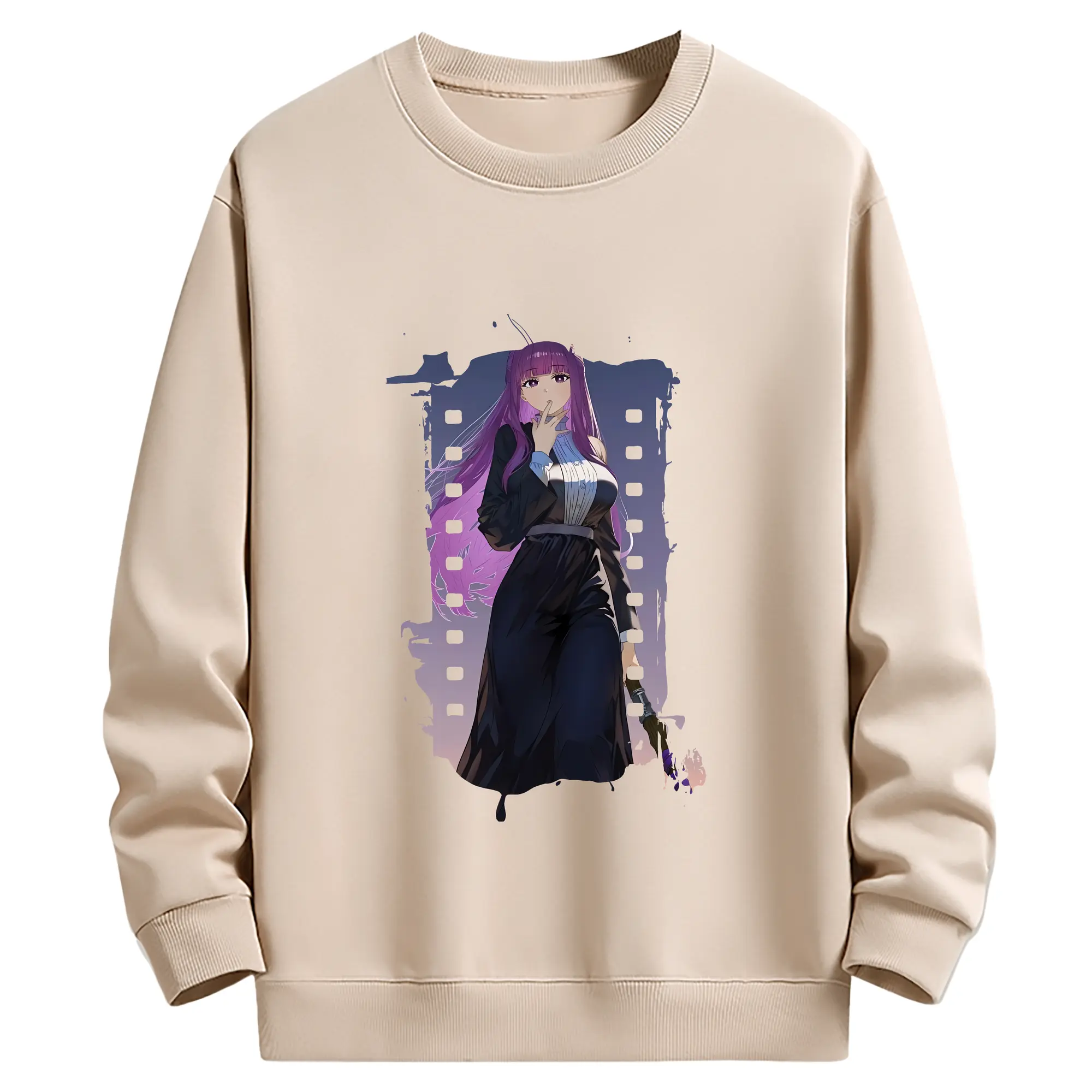 葬送のフリーレン(Frieren) グッズ,フェルン(Fern) - 薄手 クルーネック スウェット 裏毛260g · ポリエステル 春秋向け カジュアル 男女兼用 · トレーナー デイリー スポーツ 散歩に最適