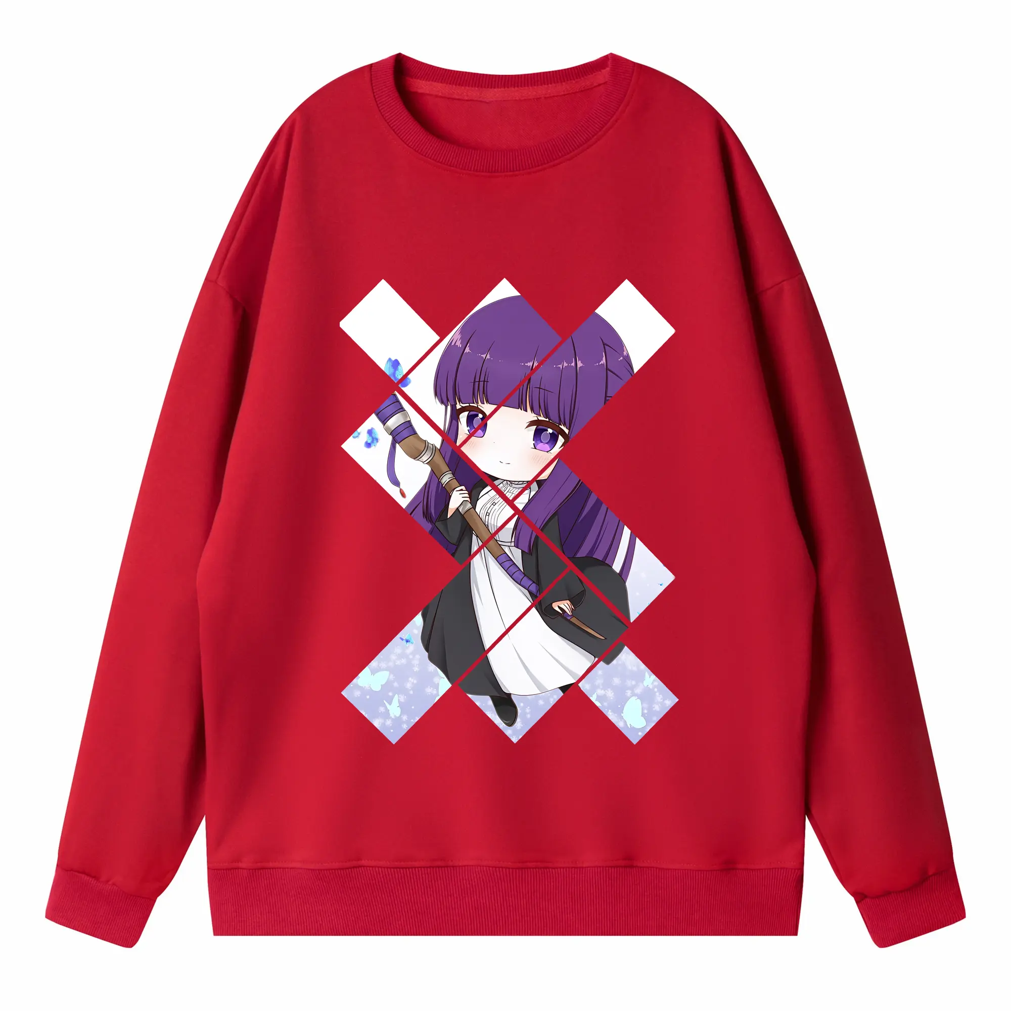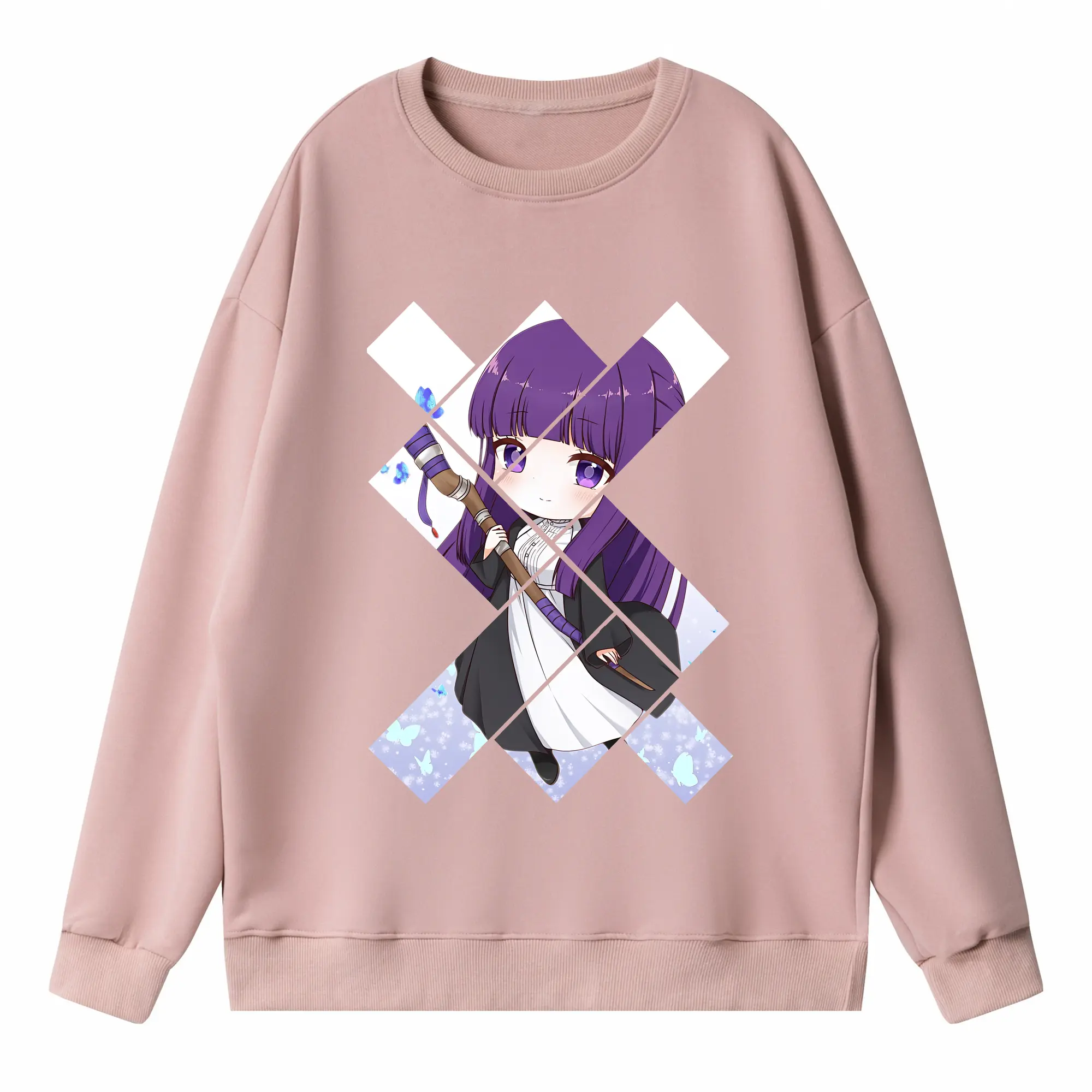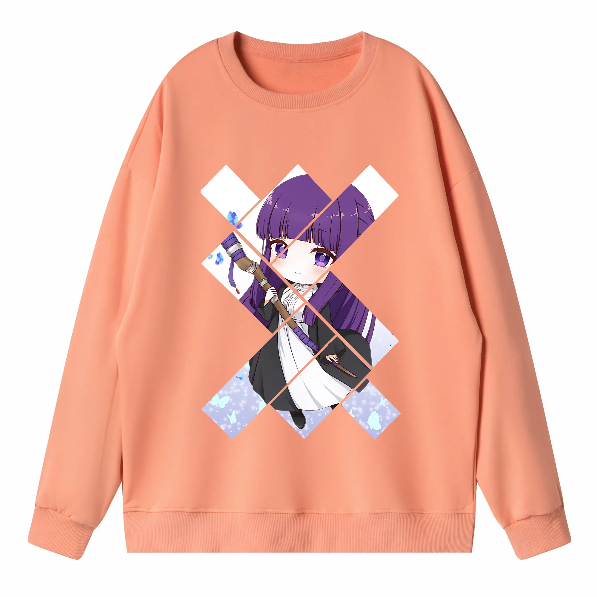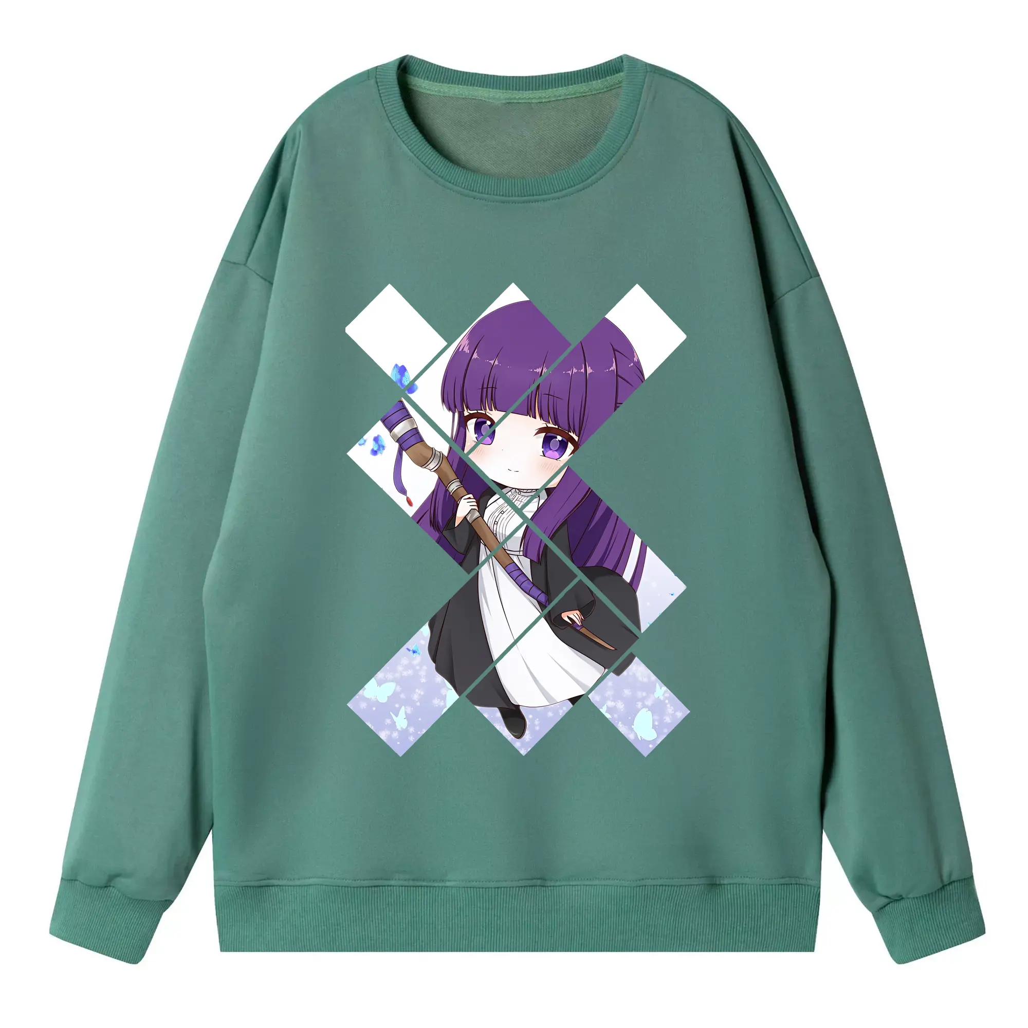 葬送のフリーレン(Frieren) グッズ,フェルン(Fern) - 薄手 クルーネック スウェット 裏毛260g · ポリエステル 春秋向け カジュアル 男女兼用 · トレーナー デイリー スポーツ 散歩に最適