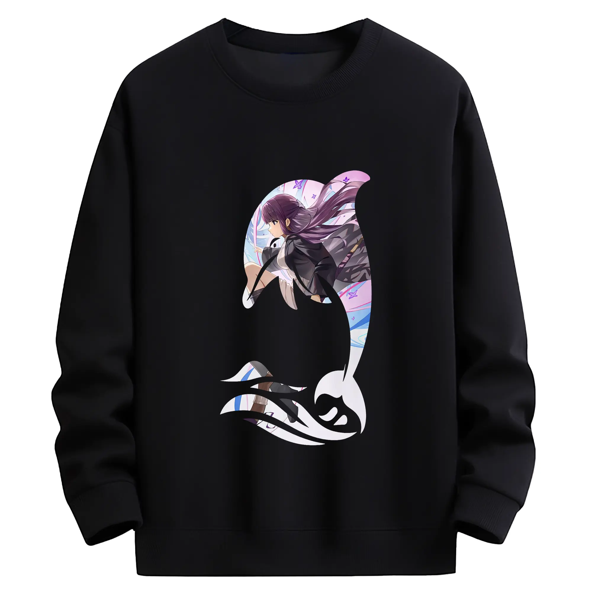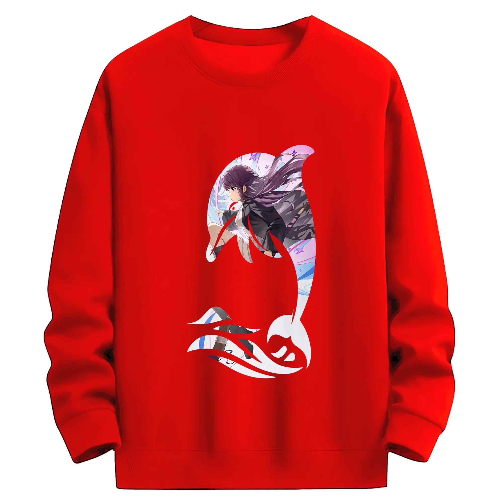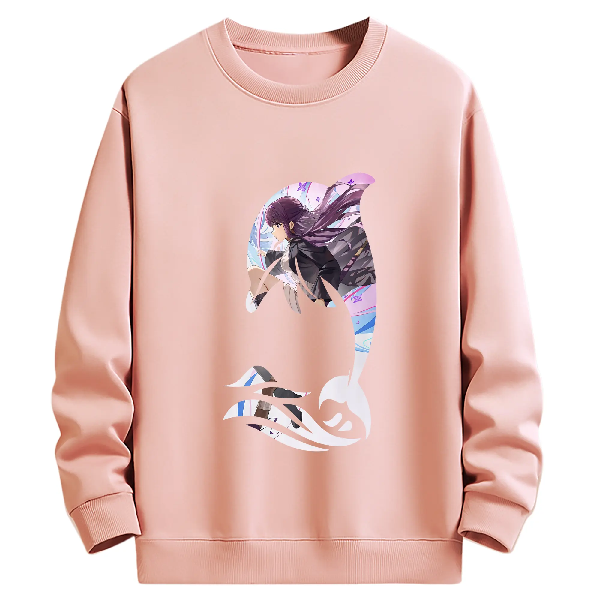 葬送のフリーレン(Frieren) グッズ,フェルン(Fern) - 薄手 クルーネック スウェット 裏毛260g · ポリエステル 春秋向け カジュアル 男女兼用 · トレーナー デイリー スポーツ 散歩に最適