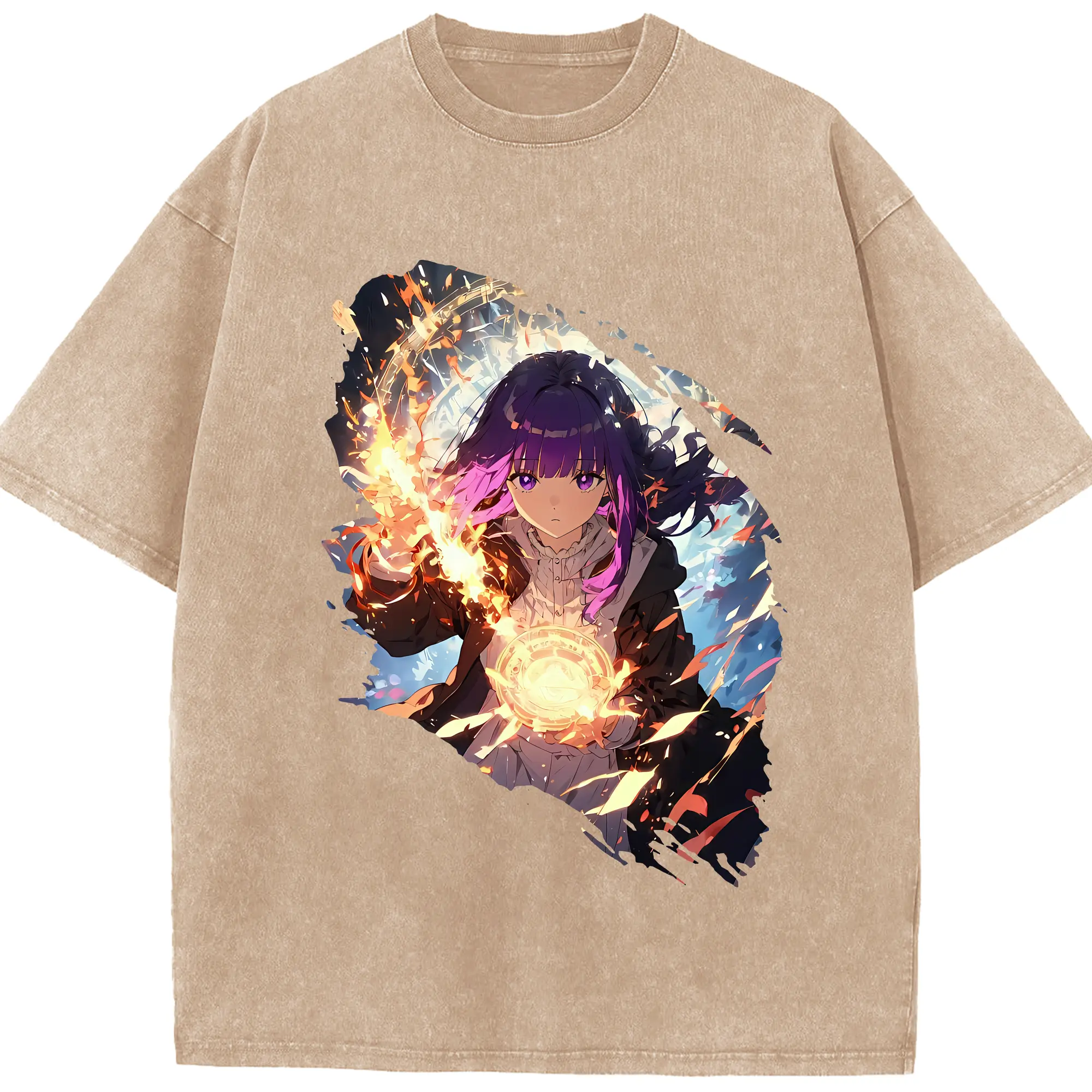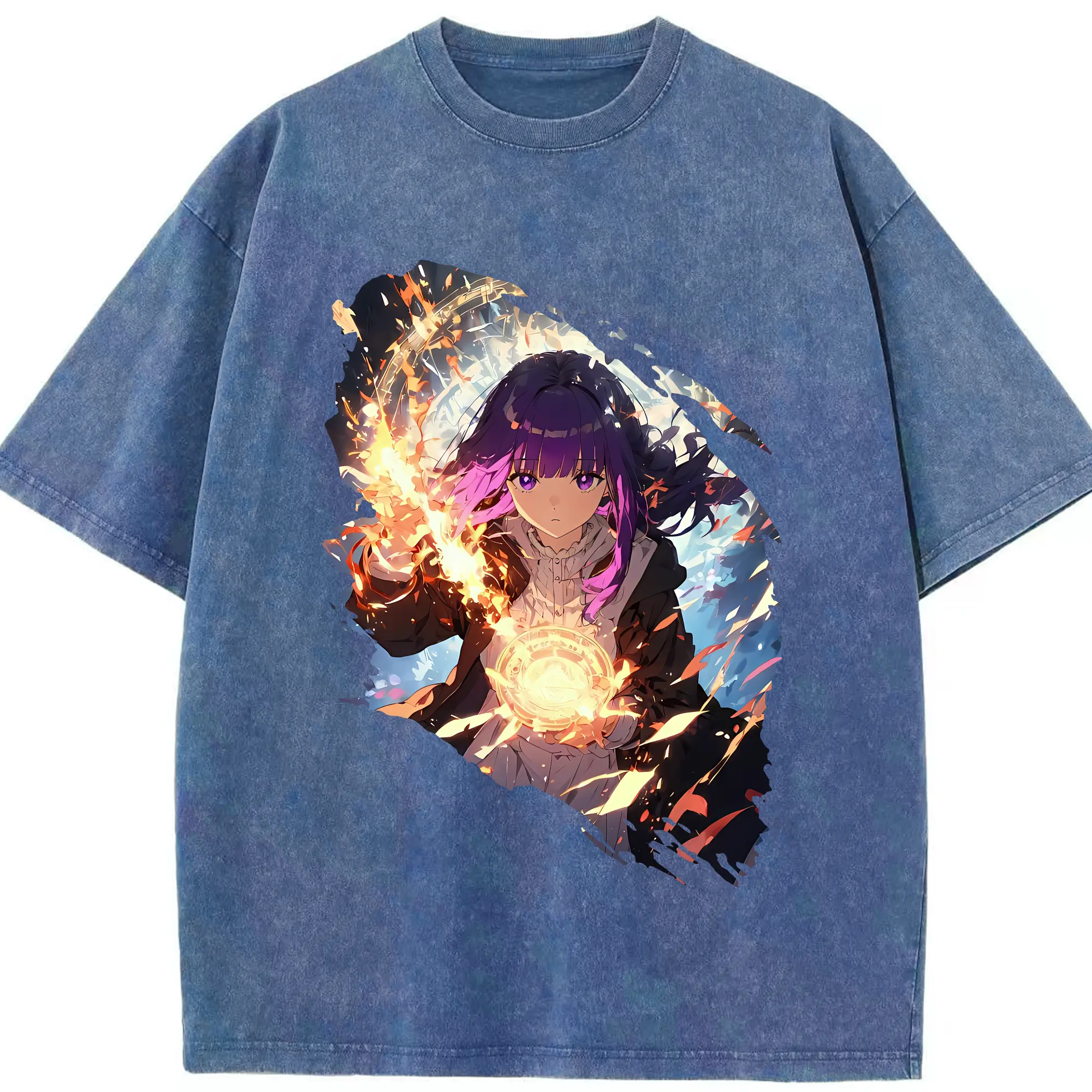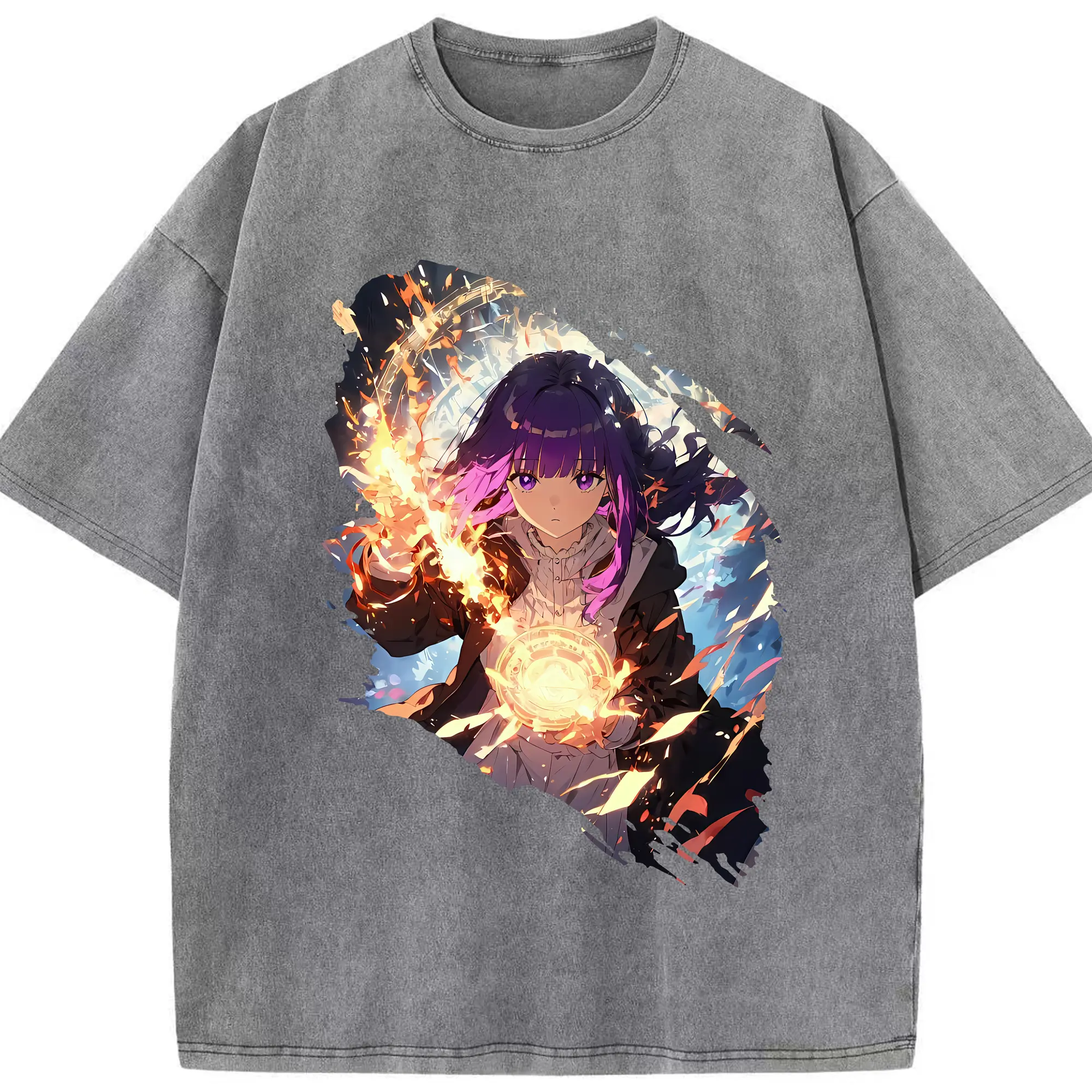 葬送のフリーレン(Frieren) グッズ,フリーレン(Frieren) - 綿100% ヴィンテージ風 半袖Tシャツ ・ フロントプリント ・ 柔らか肌触り ・ 通気性 快適 ・ スポーツ カジュアル 外出用