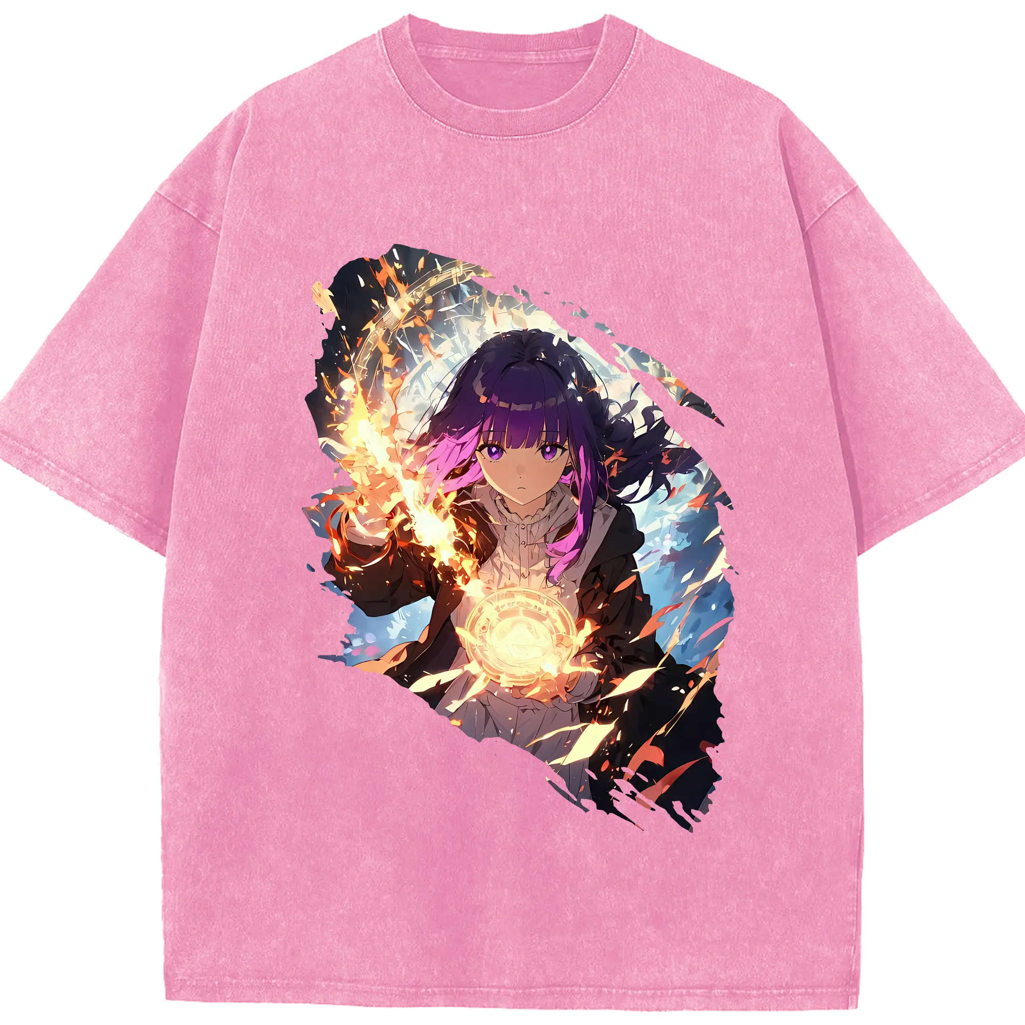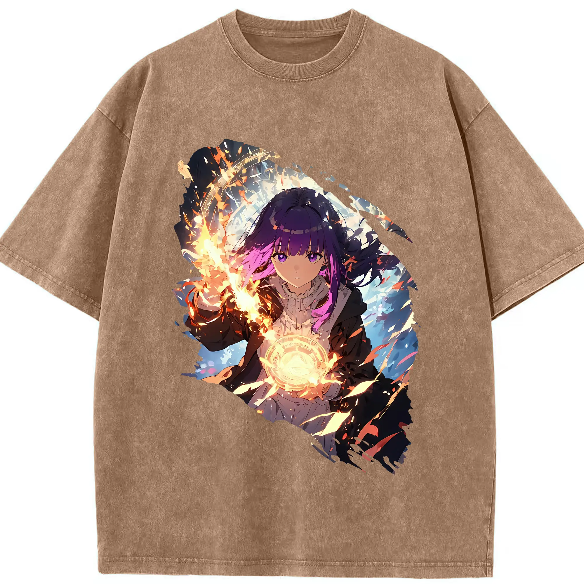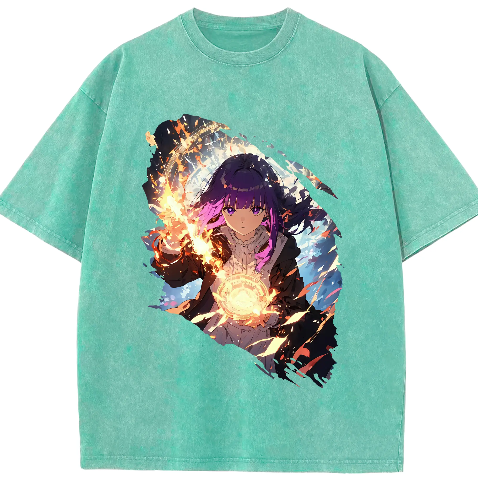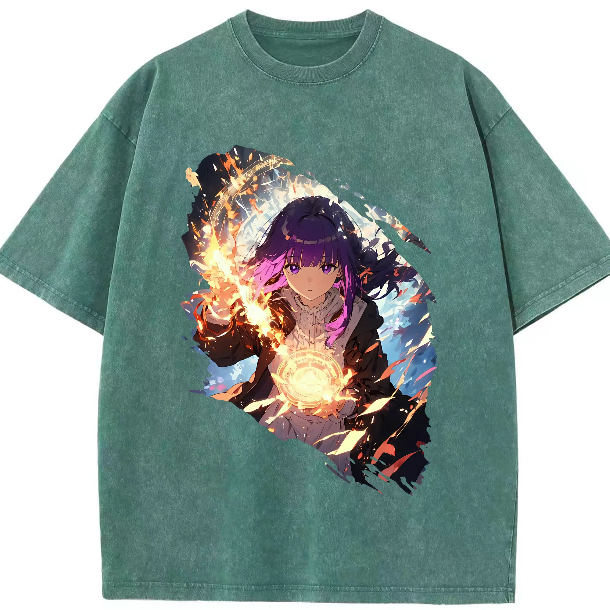 葬送のフリーレン(Frieren) グッズ,フリーレン(Frieren) - 綿100% ヴィンテージ風 半袖Tシャツ ・ フロントプリント ・ 柔らか肌触り ・ 通気性 快適 ・ スポーツ カジュアル 外出用