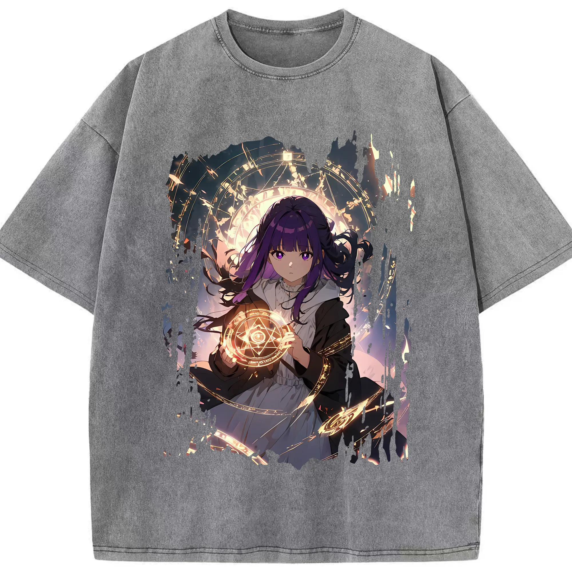 葬送のフリーレン(Frieren) グッズ,ゼーリエ(Serie) - 綿100% ヴィンテージ風 半袖Tシャツ ・ フロントプリント ・ 柔らか肌触り ・ 通気性 快適 ・ スポーツ カジュアル 外出用