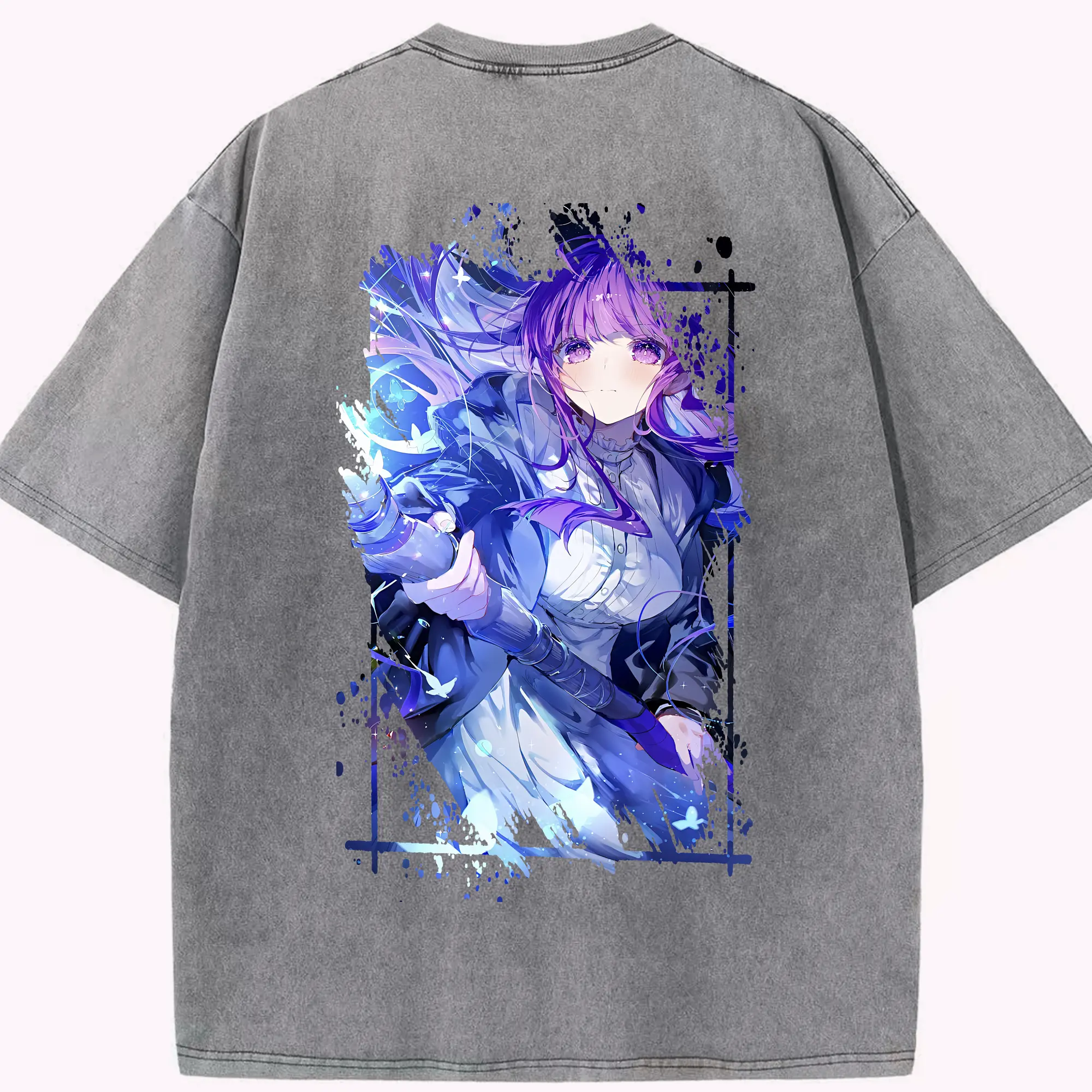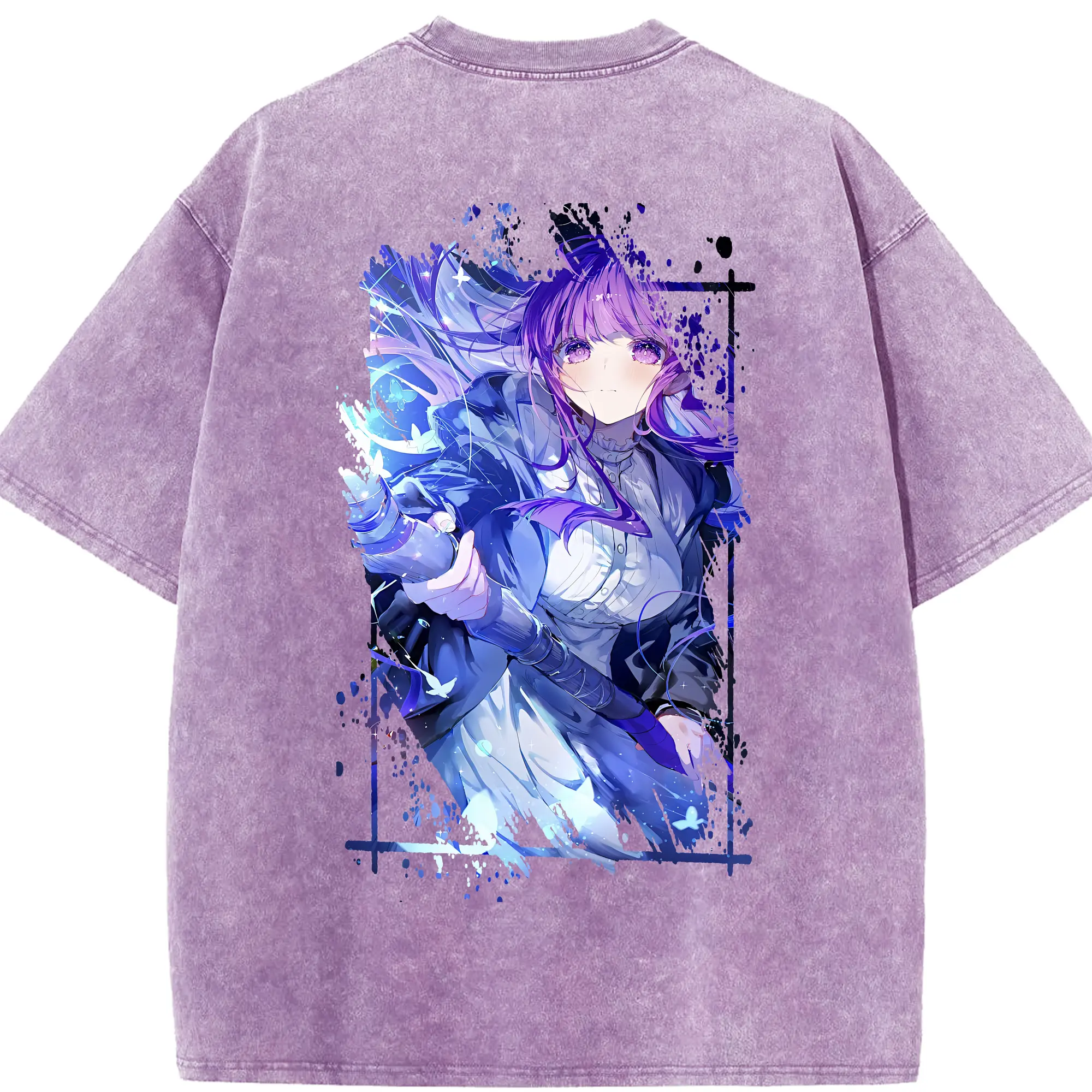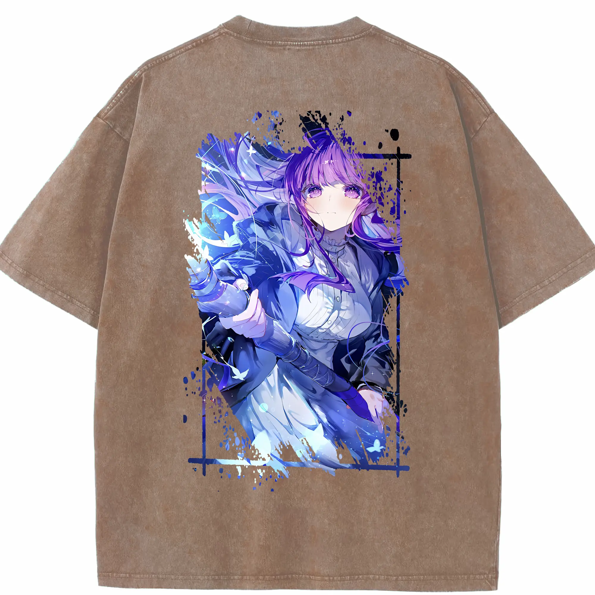 葬送のフリーレン(Frieren) グッズ,フリーレン(Frieren) - 綿100% ヴィンテージ風 半袖Tシャツ ・ 背面プリント ・ 柔らか肌触り ・ 通気性 快適 ・ スポーツ カジュアル 外出用