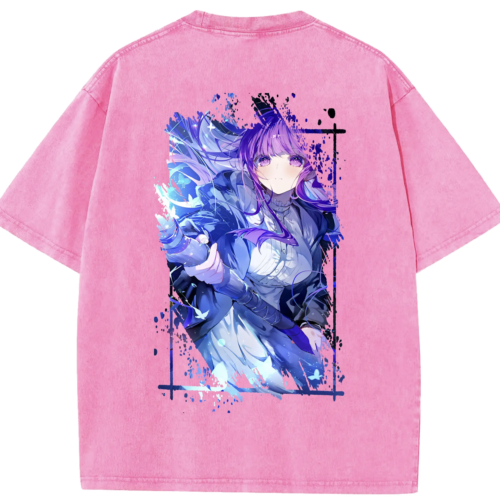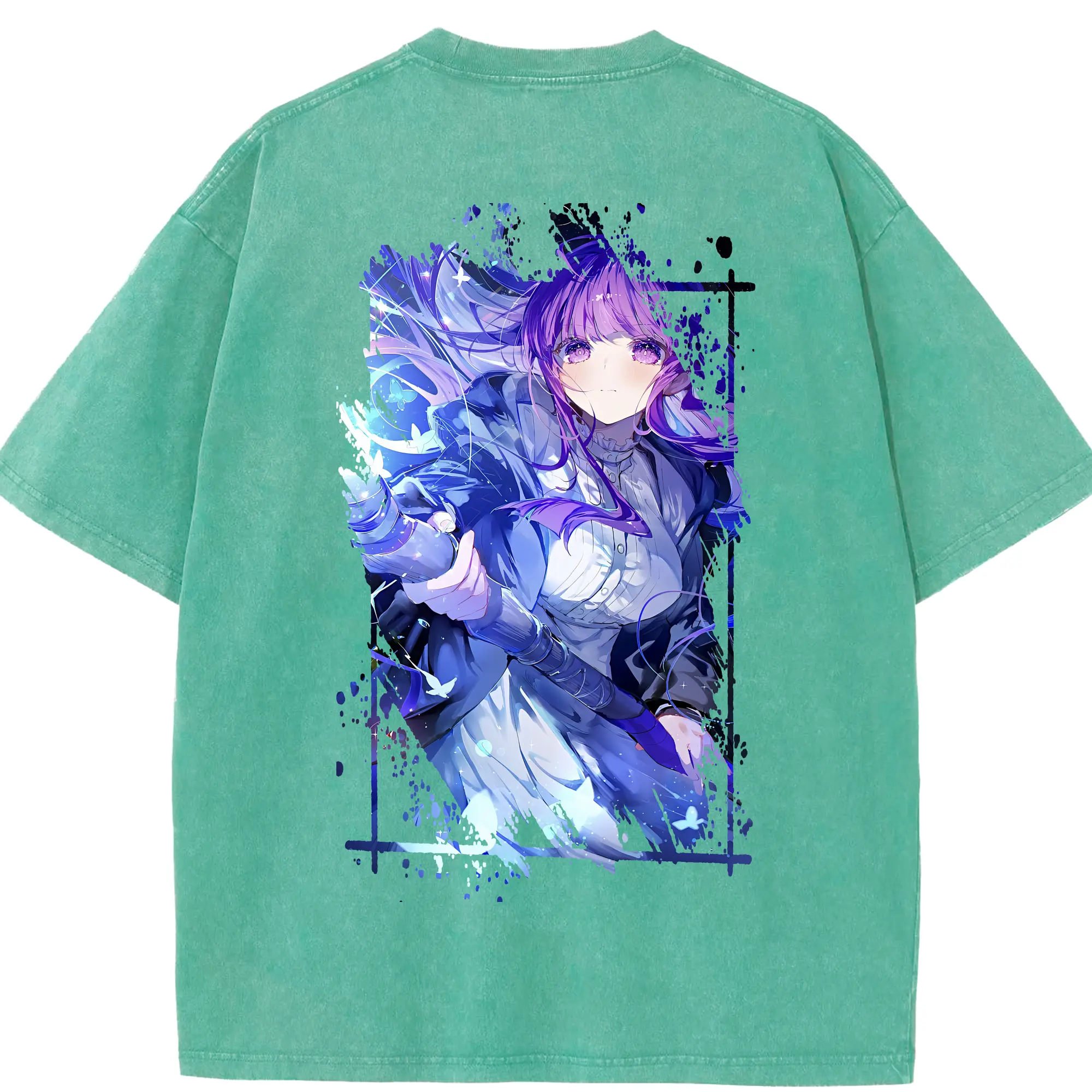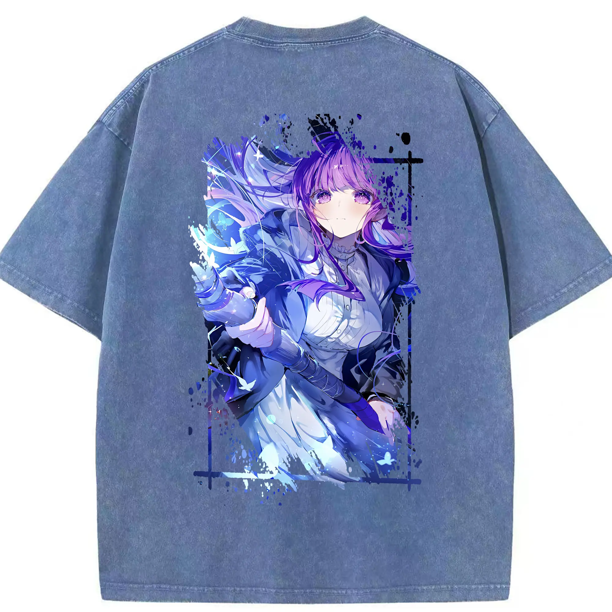 葬送のフリーレン(Frieren) グッズ,フリーレン(Frieren) - 綿100% ヴィンテージ風 半袖Tシャツ ・ 背面プリント ・ 柔らか肌触り ・ 通気性 快適 ・ スポーツ カジュアル 外出用