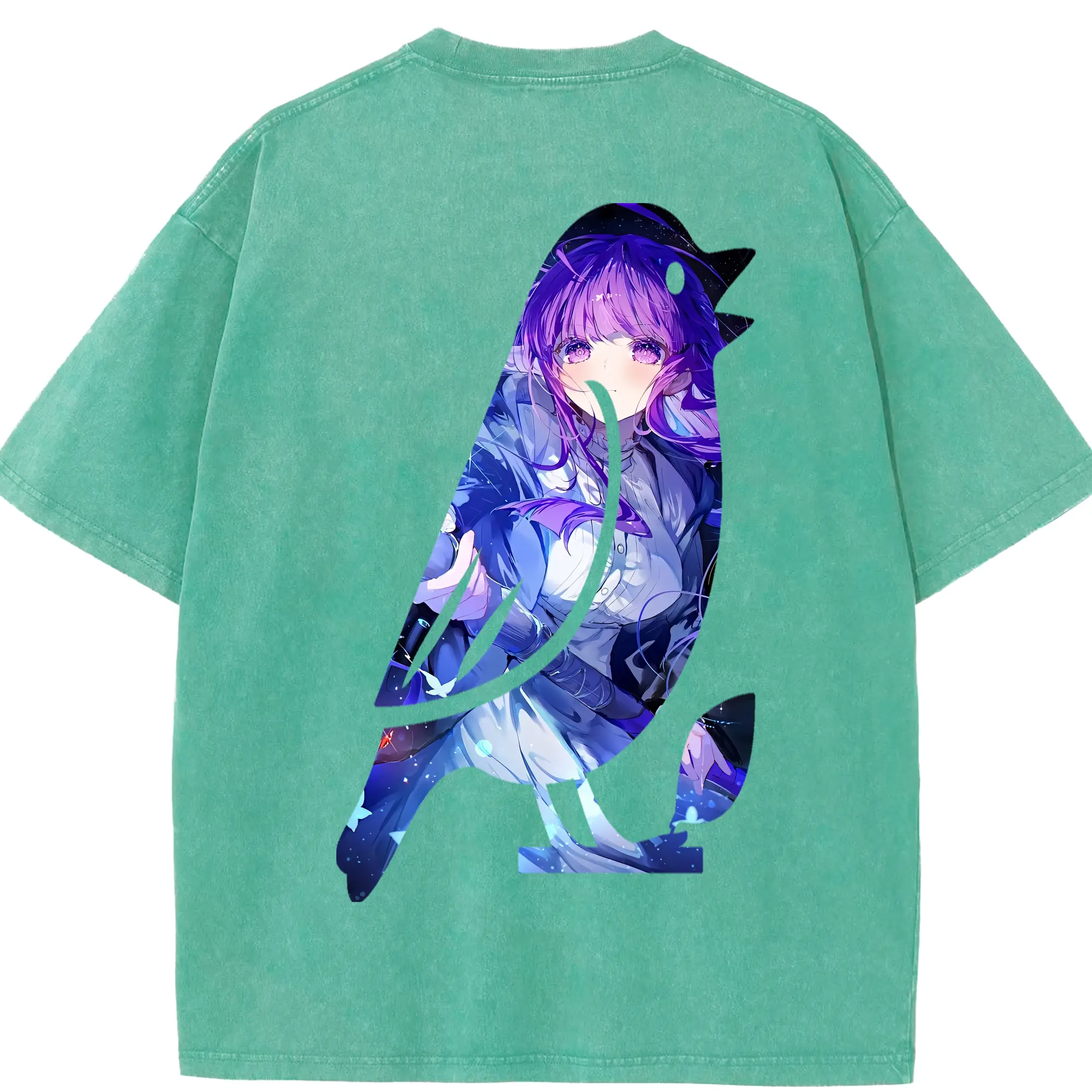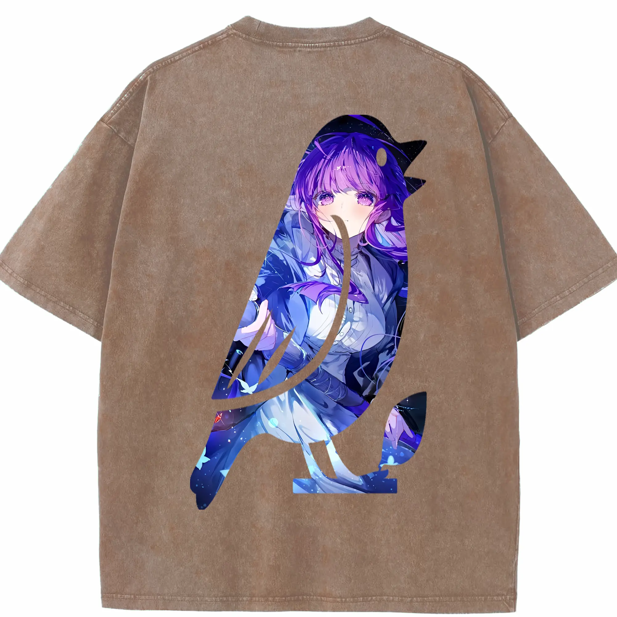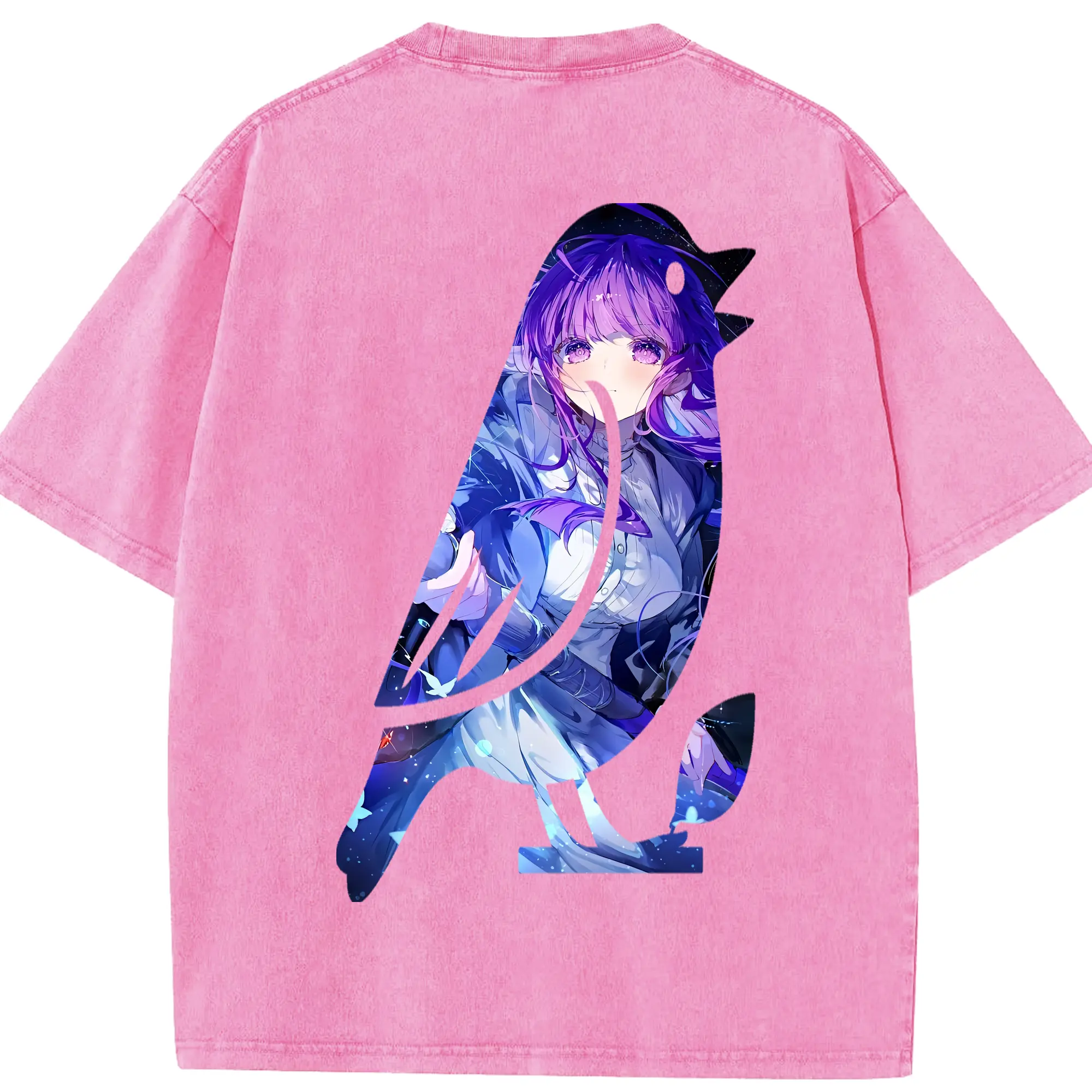 原 神 グッズ フータオ - 綿100% ヴィンテージ風 半袖Tシャツ ・ 背面プリント ・ 柔らか肌触り ・ 通気性 快適 ・ スポーツ カジュアル 外出用