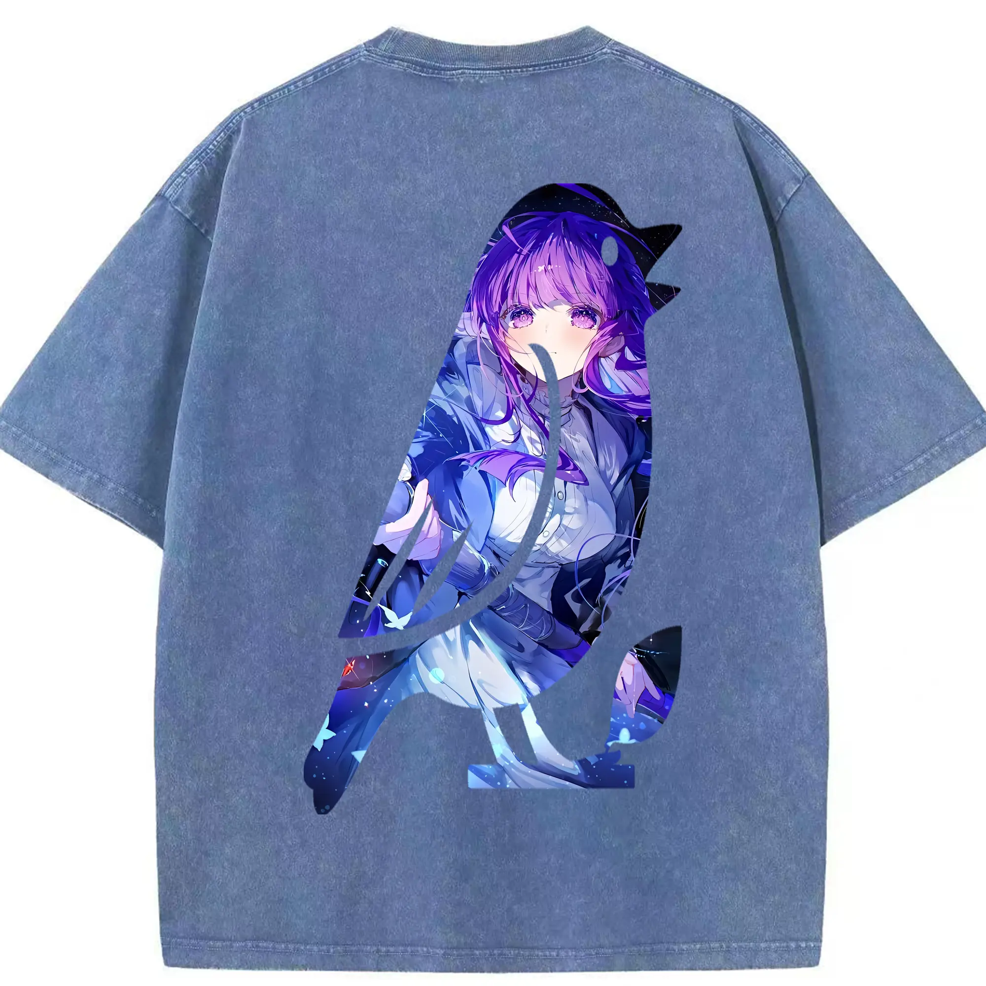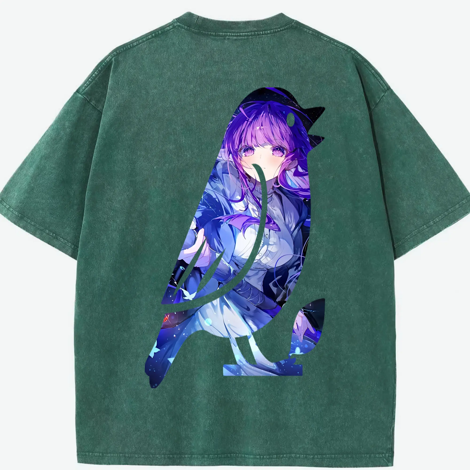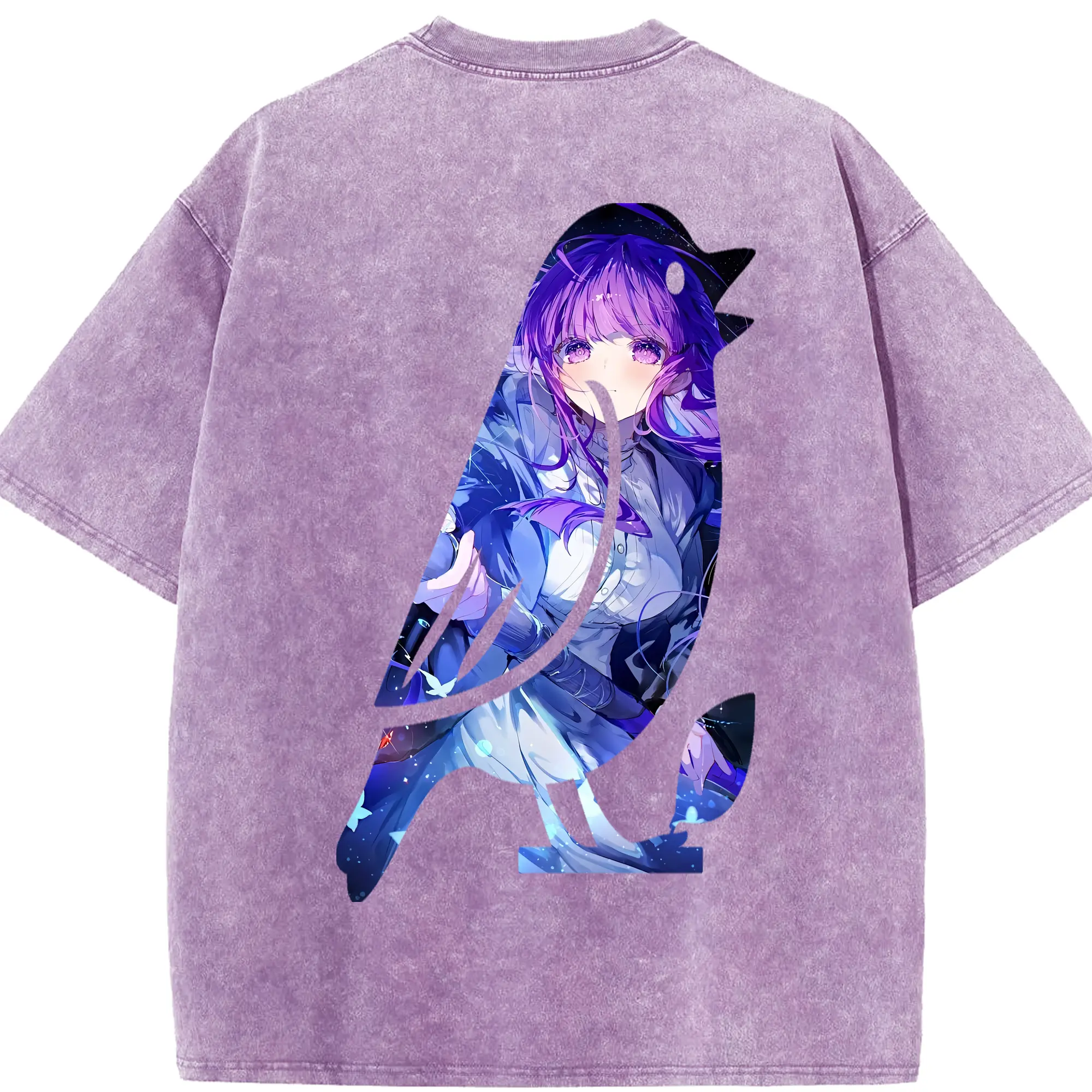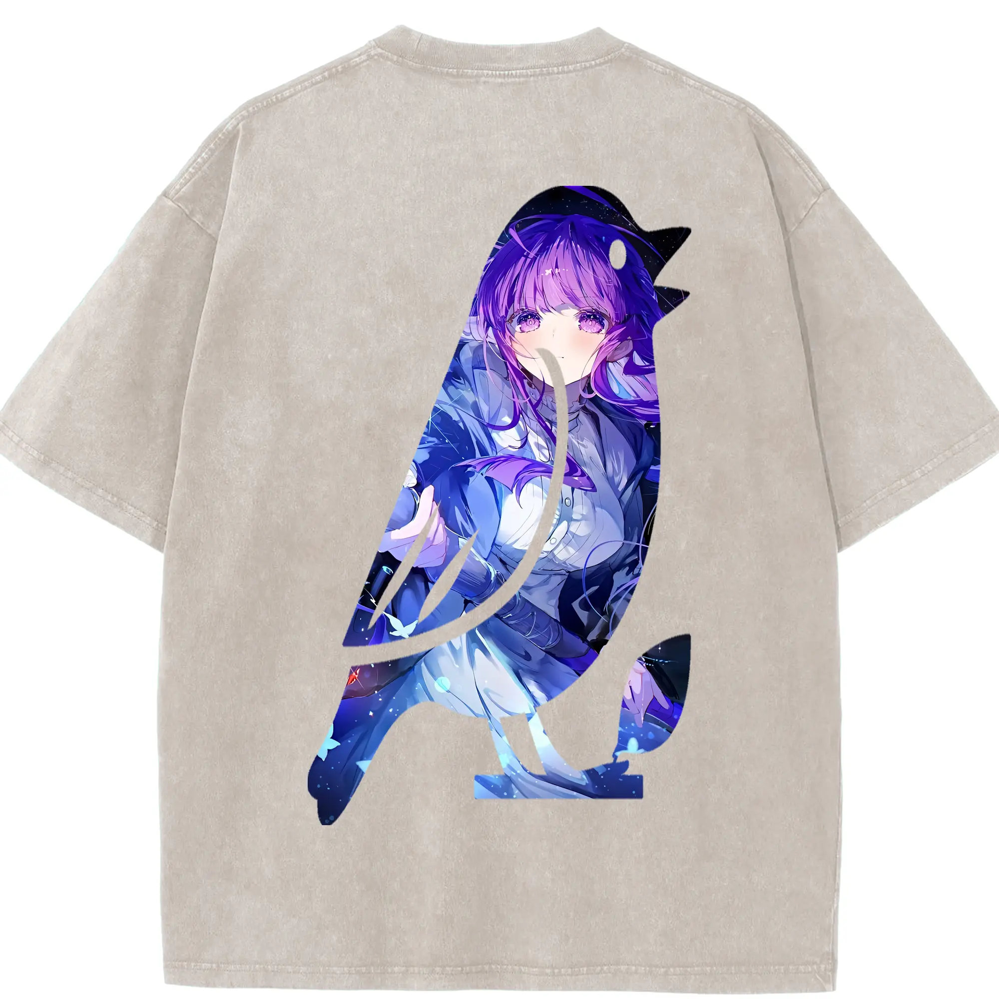 原 神 グッズ フータオ - 綿100% ヴィンテージ風 半袖Tシャツ ・ 背面プリント ・ 柔らか肌触り ・ 通気性 快適 ・ スポーツ カジュアル 外出用