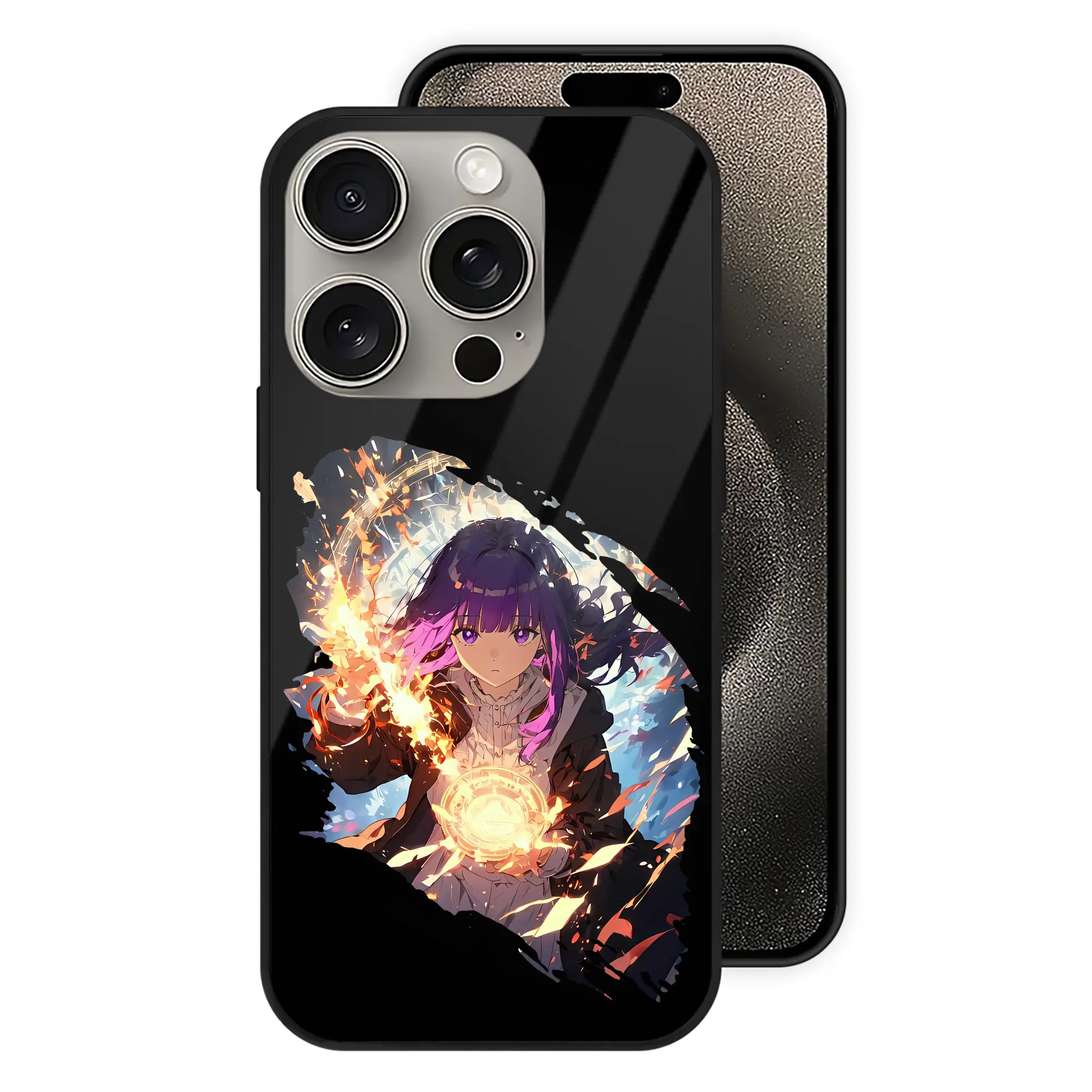 葬送のフリーレン(Frieren) グッズ,フェルン(Fern) - IPhone15Pro対応 ・ スマホケース ・ 背面ガラス ・ TPU+強化ガラス ・ 耐衝撃 ・ 黄変防止 ・ ワイヤレス充電対応 ・ 3D立体ボタン