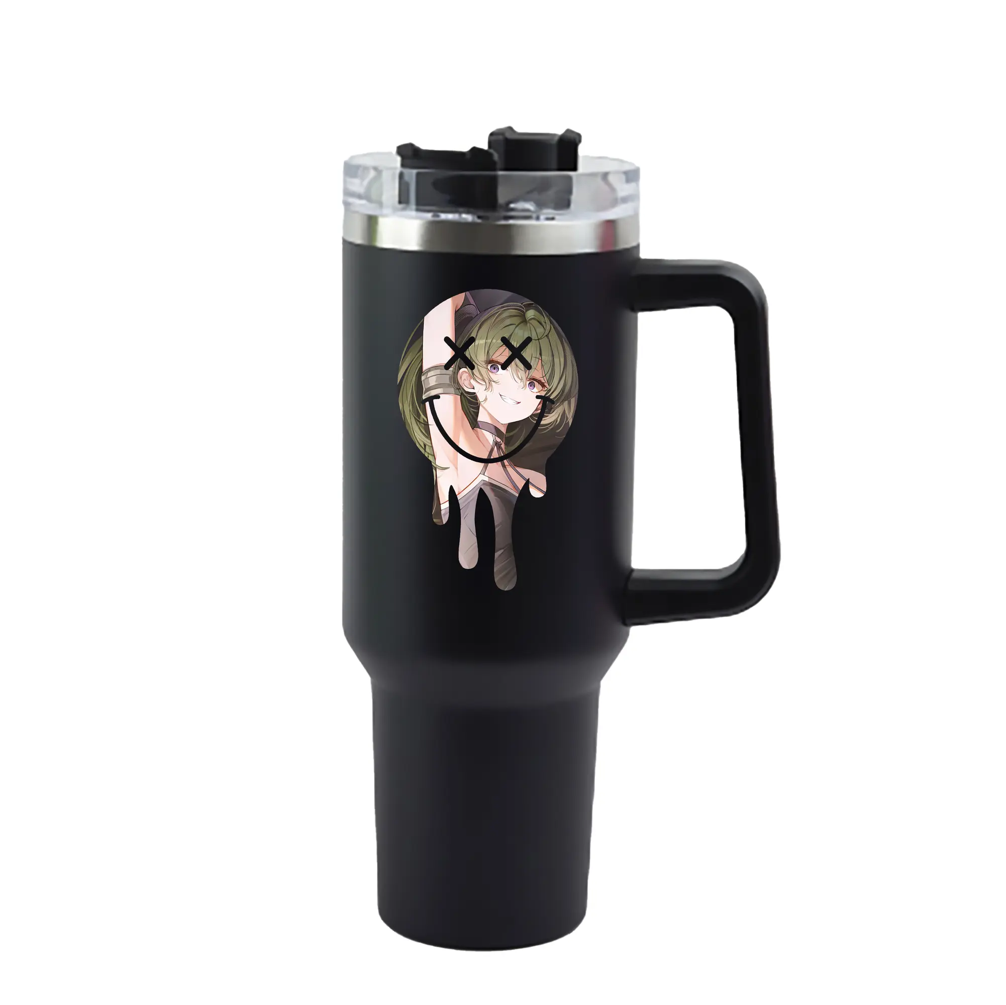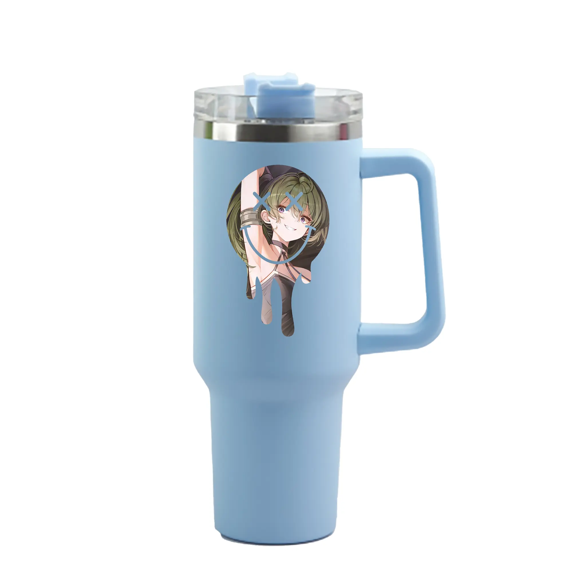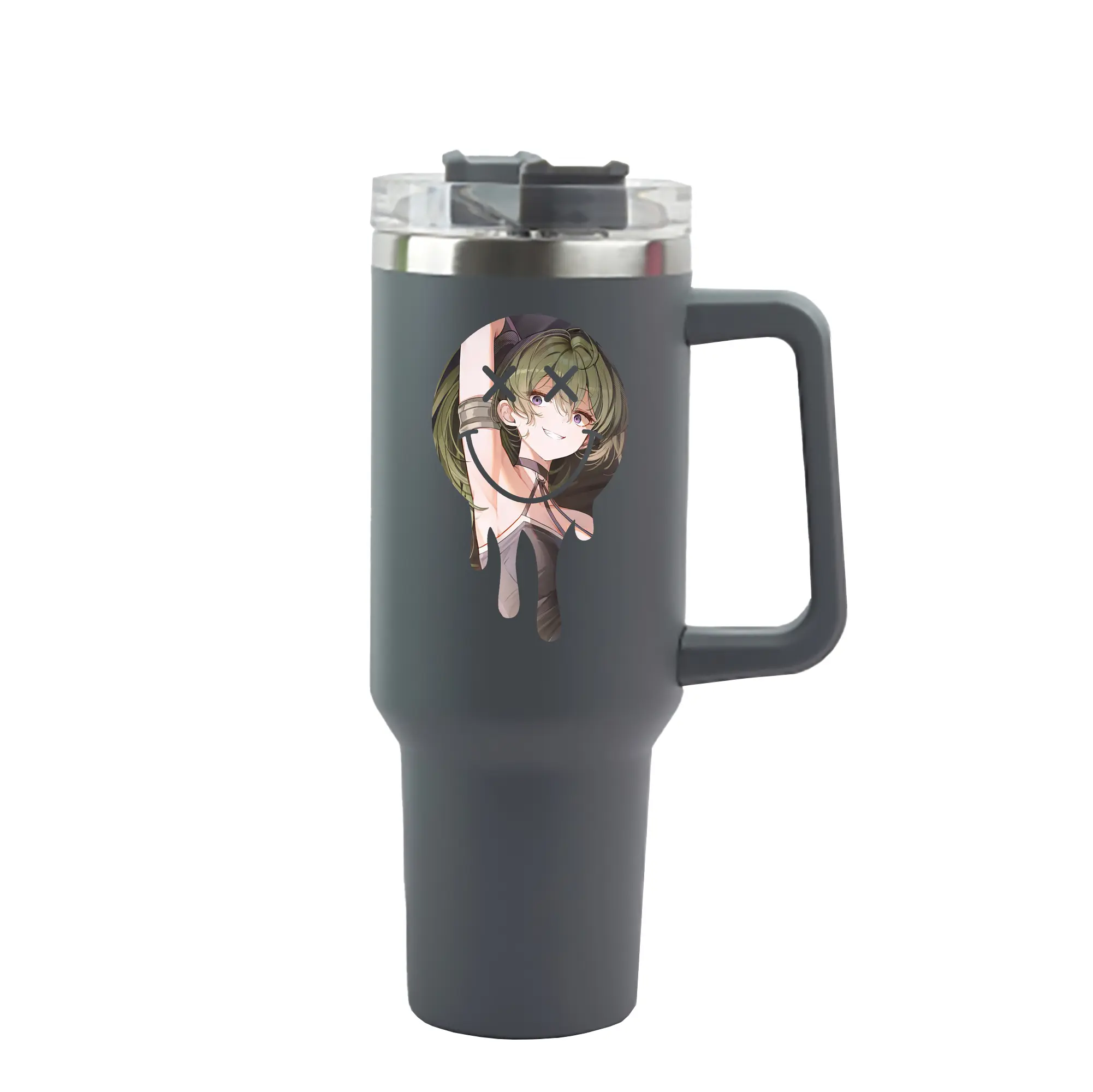 葬送のフリーレン(Frieren) グッズ,ユーベル(Übel) - 1200mL 車用タンブラー ・ クリスタルステッカー ・ 304ステンレス 内側 ・ 201ステンレス 外側 ・ 保温 保冷 ・ ハンドル&ストロー付き ・ 通勤 ドライブ アウトドア用