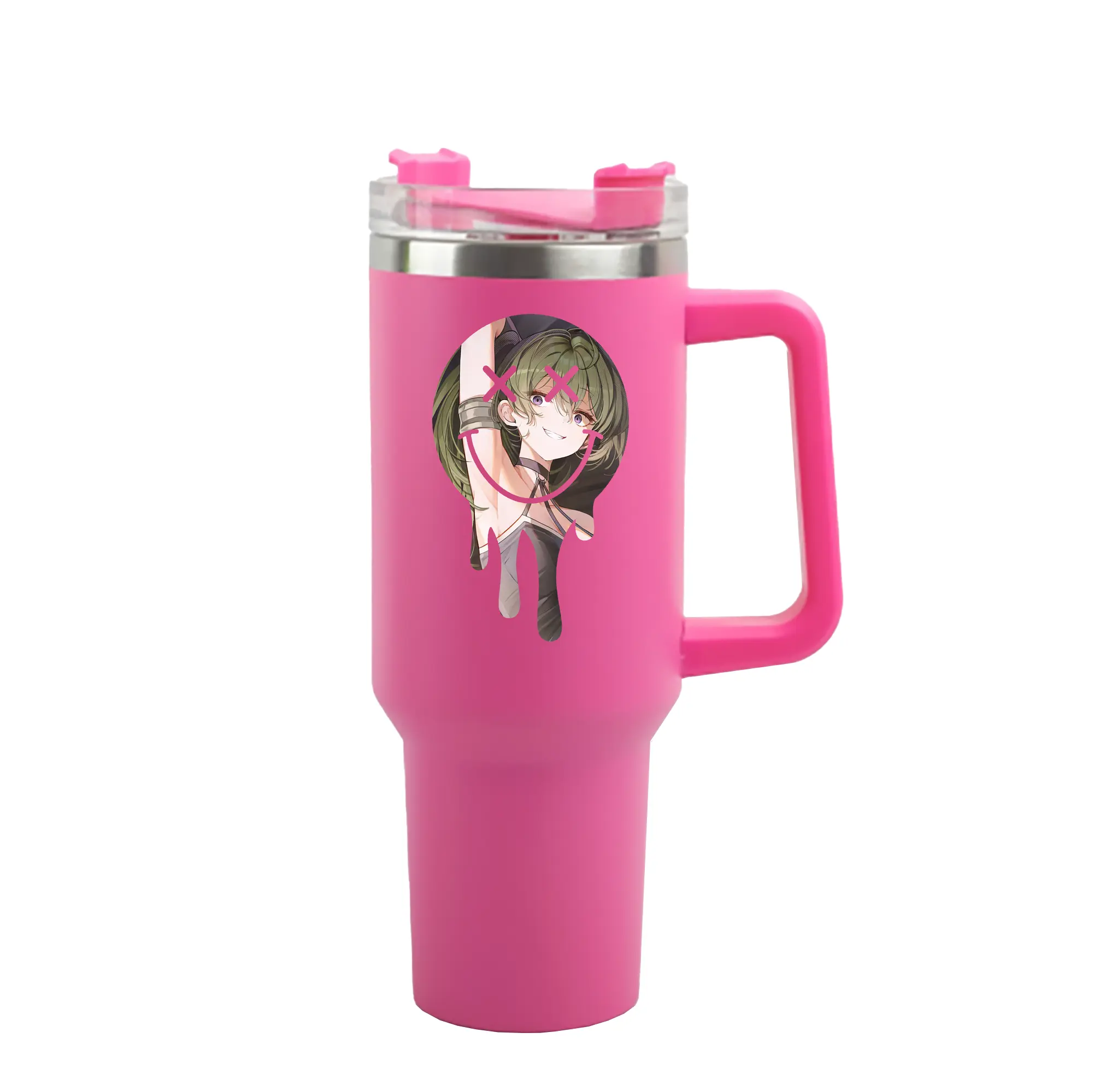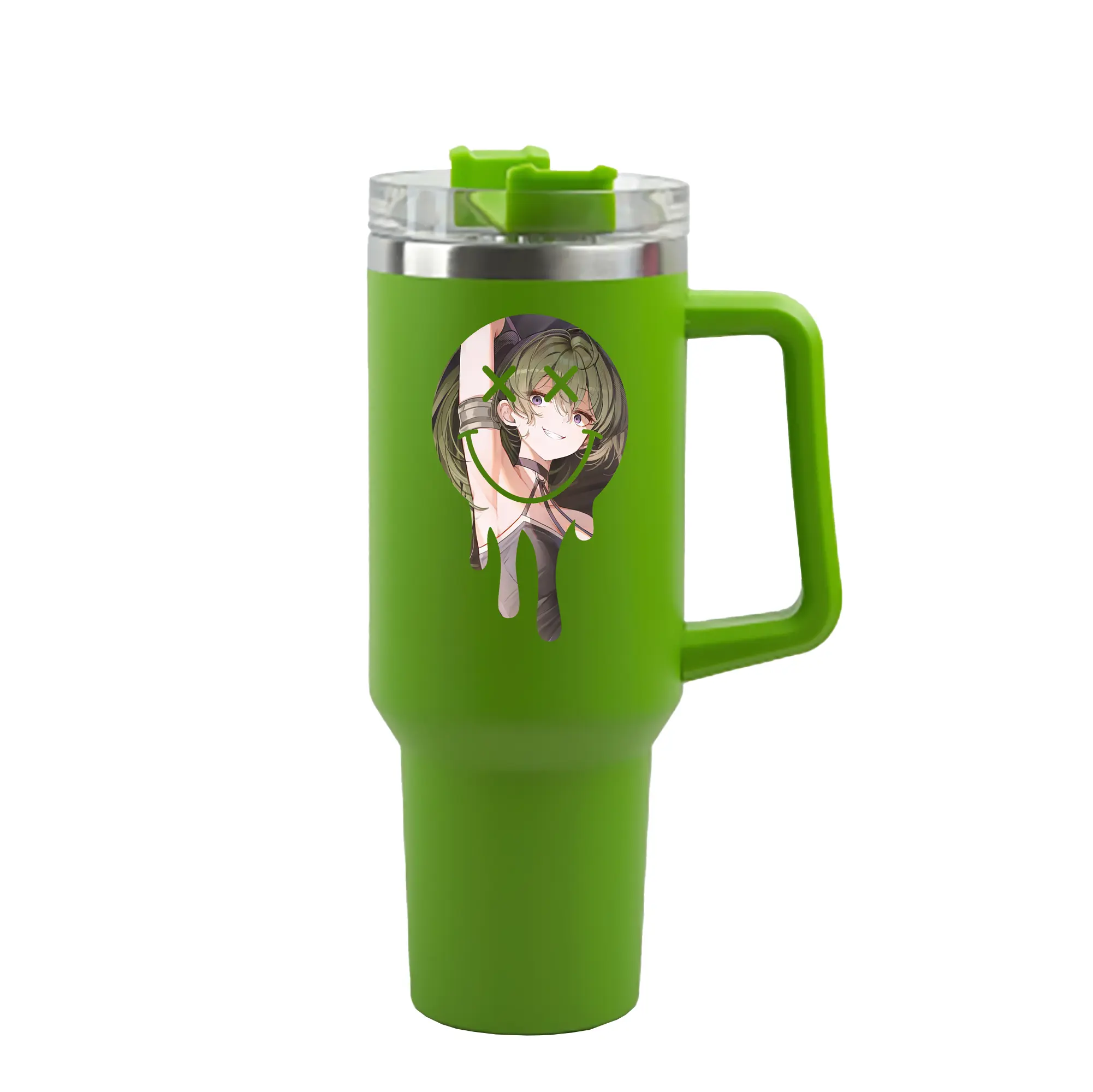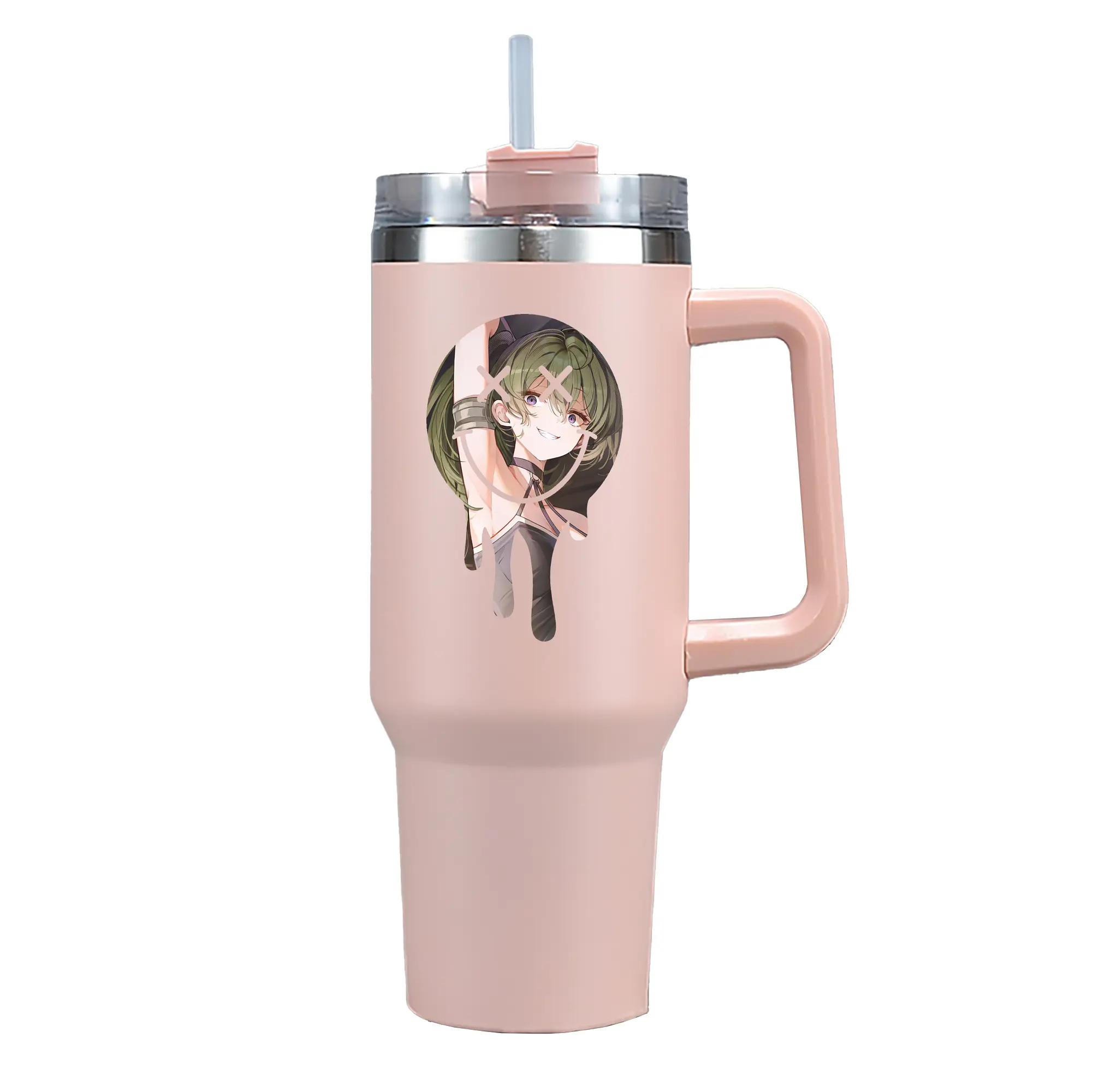 葬送のフリーレン(Frieren) グッズ,ユーベル(Übel) - 1200mL 車用タンブラー ・ クリスタルステッカー ・ 304ステンレス 内側 ・ 201ステンレス 外側 ・ 保温 保冷 ・ ハンドル&ストロー付き ・ 通勤 ドライブ アウトドア用