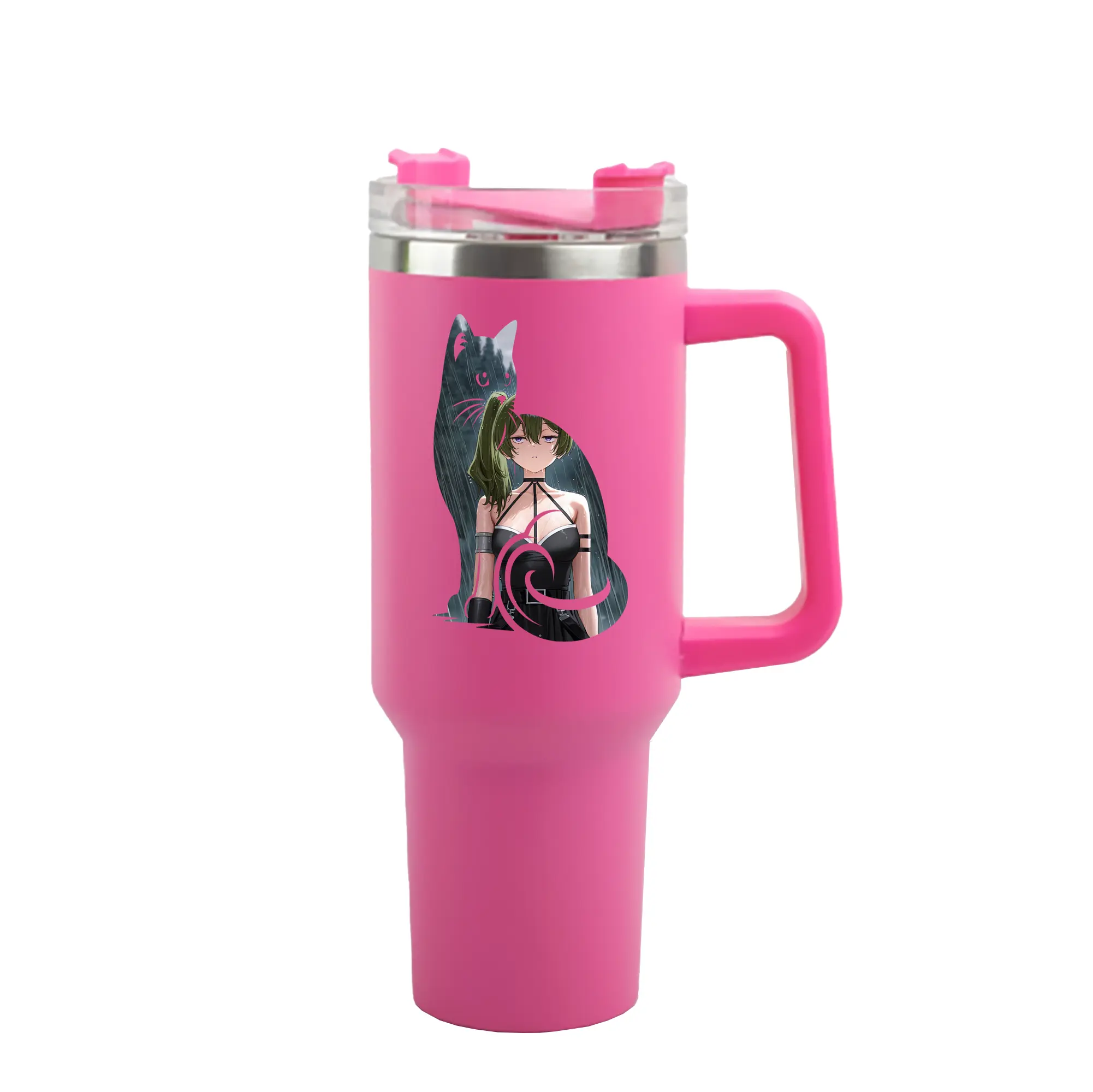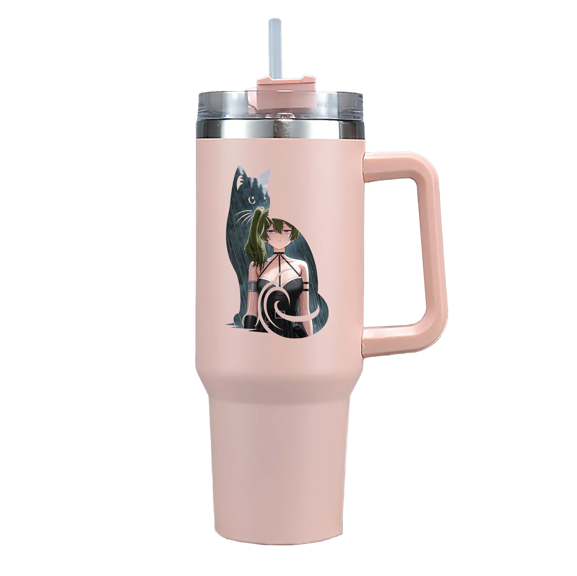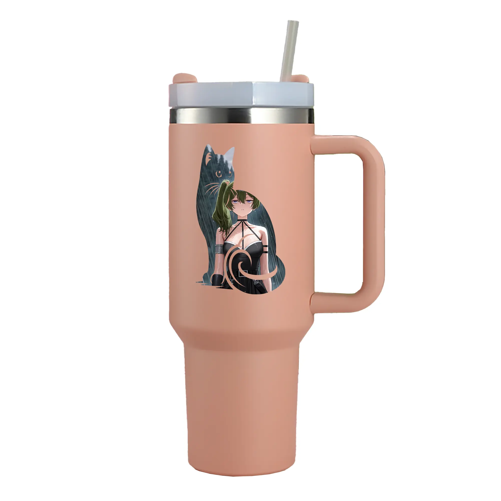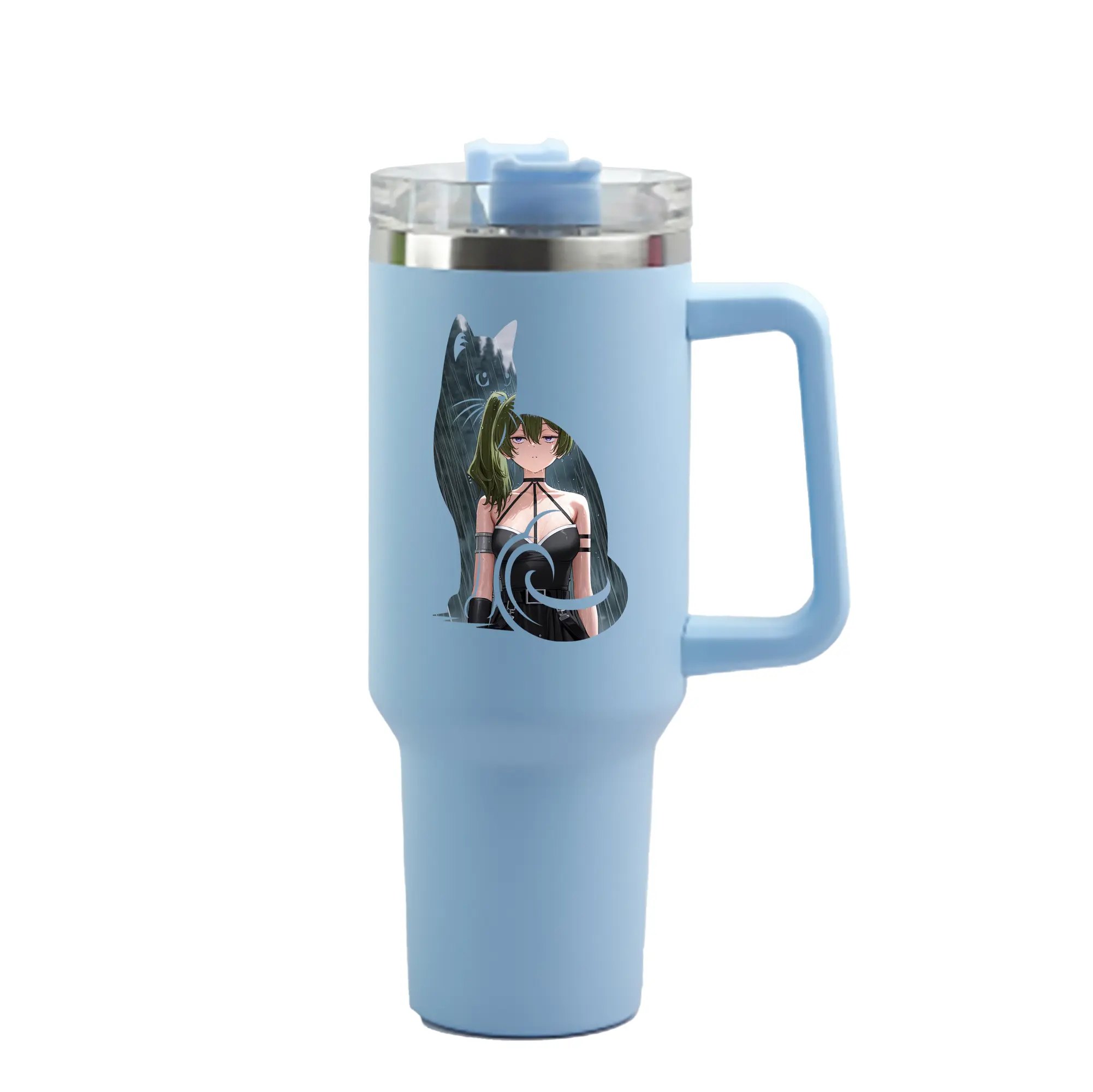 葬送のフリーレン(Frieren) グッズ,ユーベル(Übel) - 1200mL 車用タンブラー ・ クリスタルステッカー ・ 304ステンレス 内側 ・ 201ステンレス 外側 ・ 保温 保冷 ・ ハンドル&ストロー付き ・ 通勤 ドライブ アウトドア用