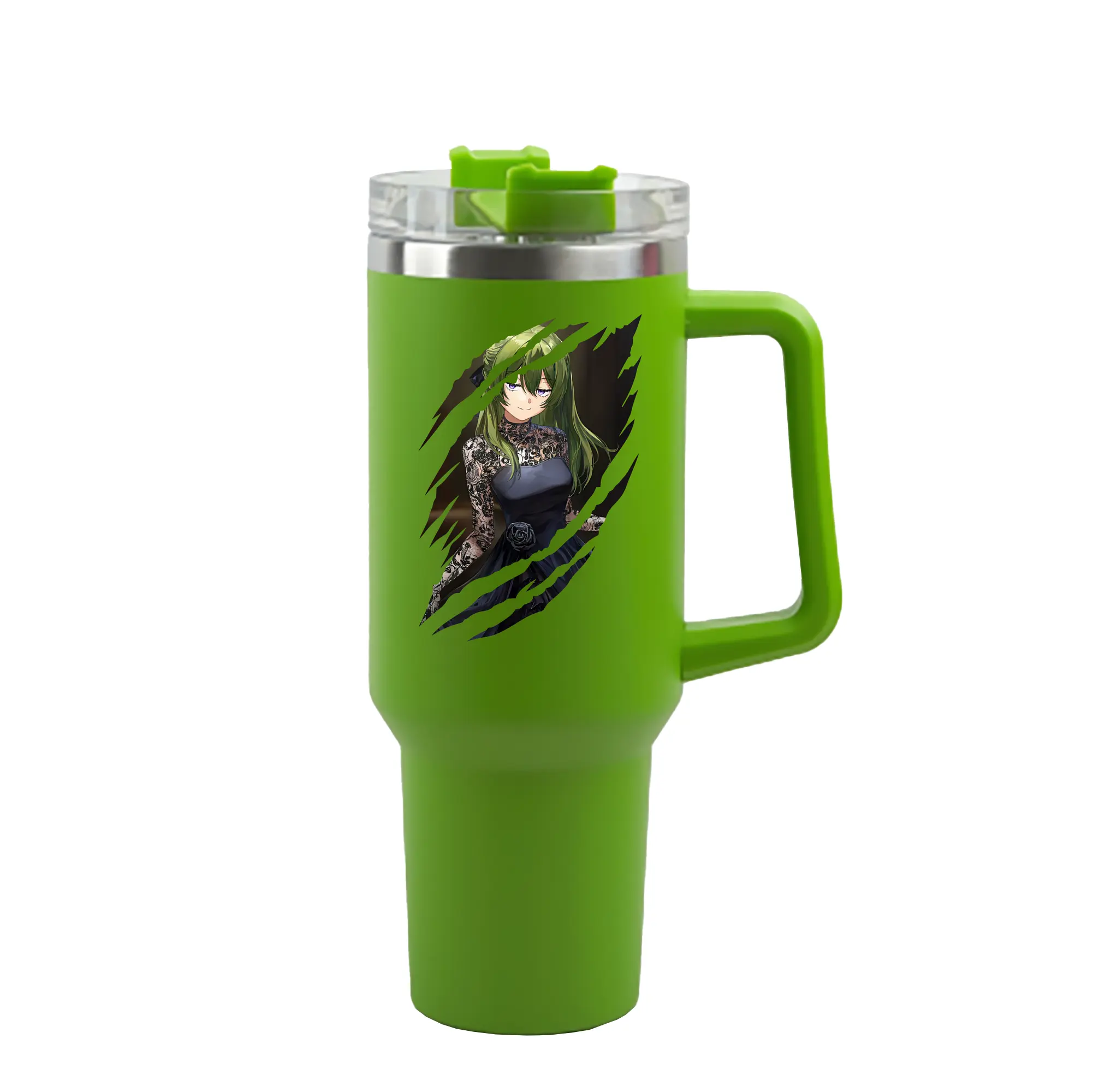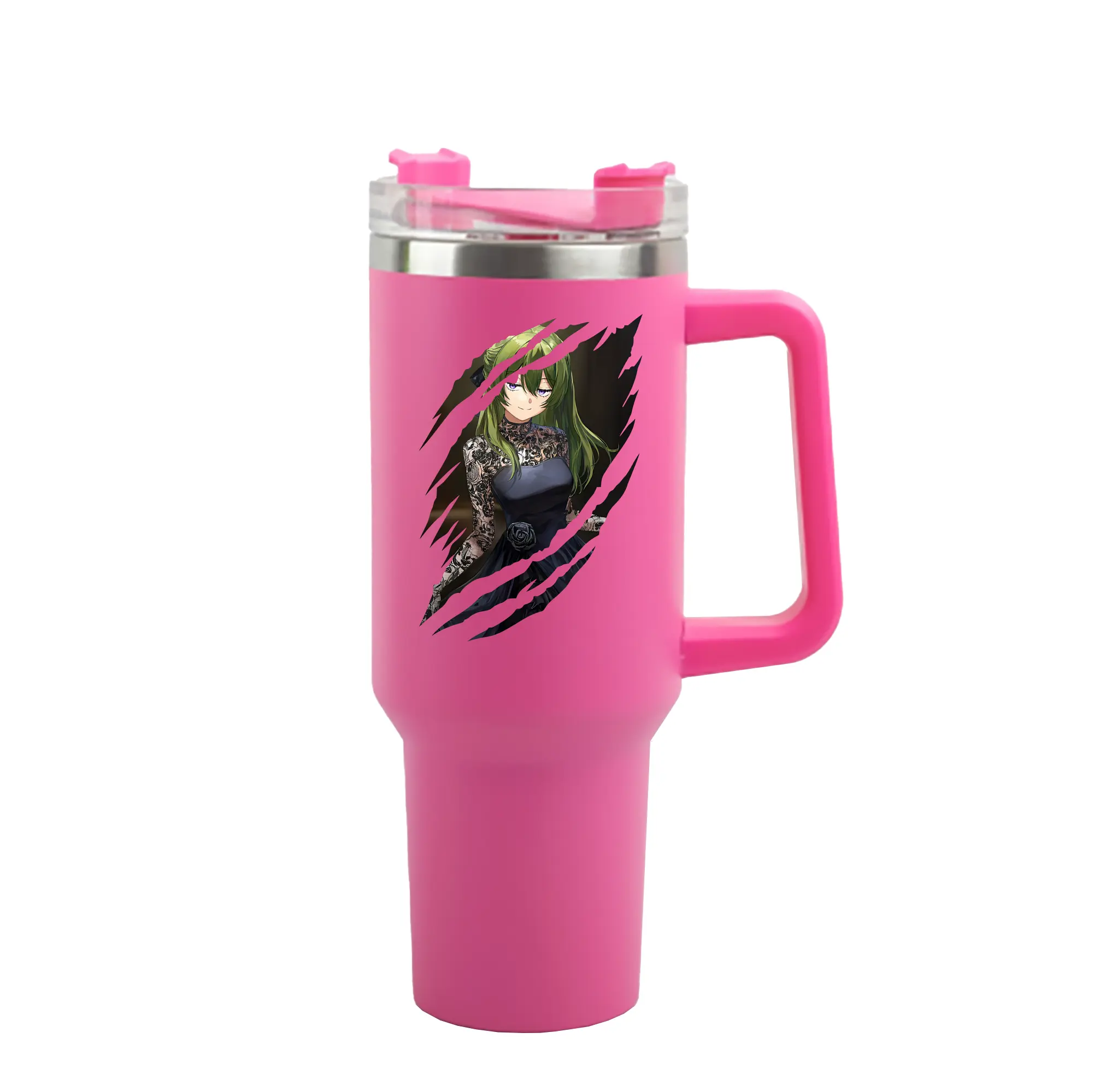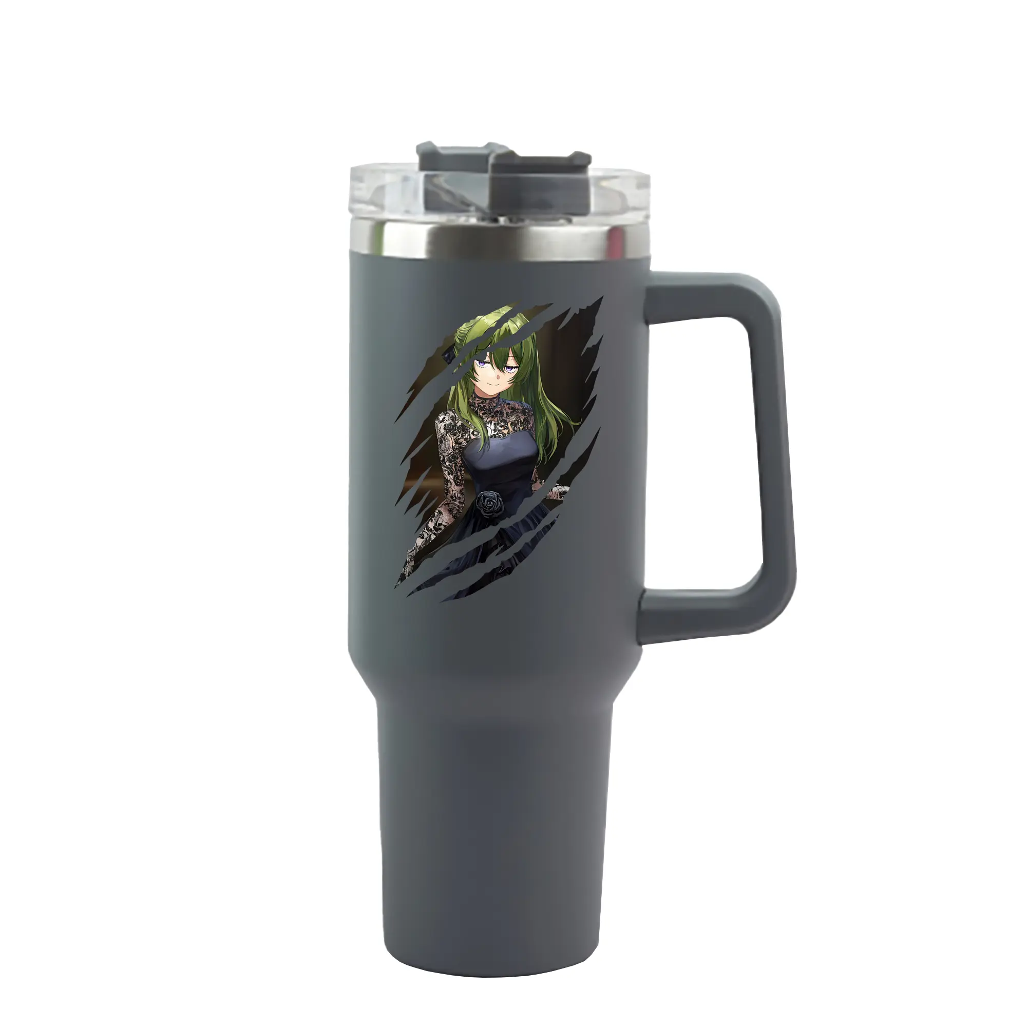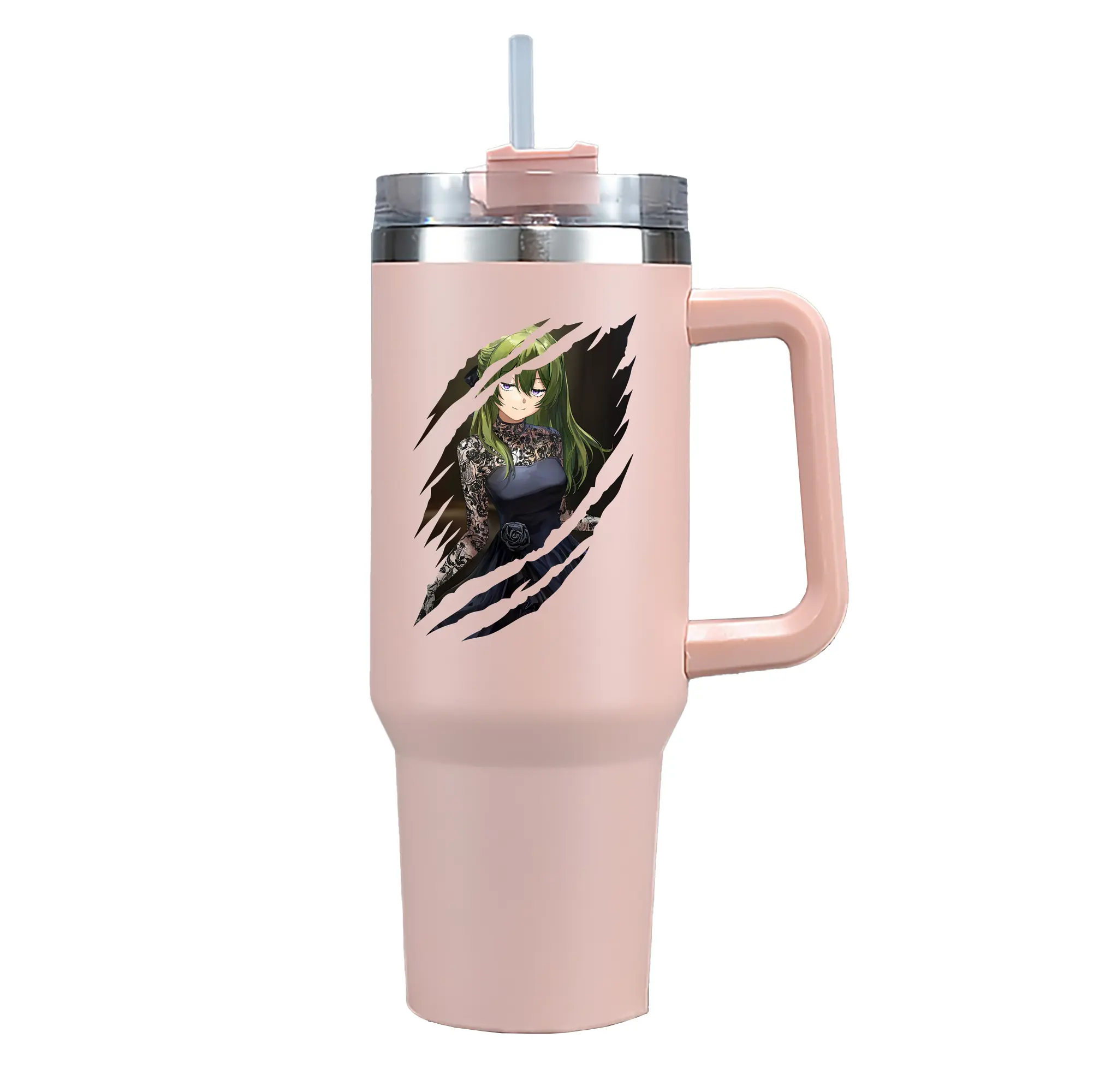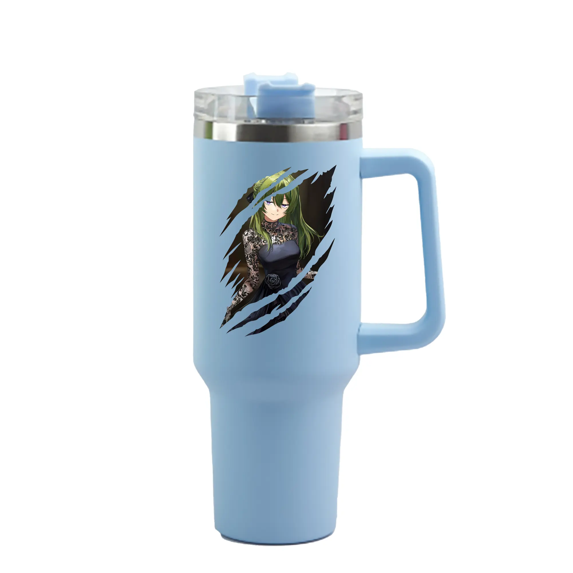 葬送のフリーレン(Frieren) グッズ,ユーベル(Übel) - 1200mL 車用タンブラー ・ クリスタルステッカー ・ 304ステンレス 内側 ・ 201ステンレス 外側 ・ 保温 保冷 ・ ハンドル&ストロー付き ・ 通勤 ドライブ アウトドア用