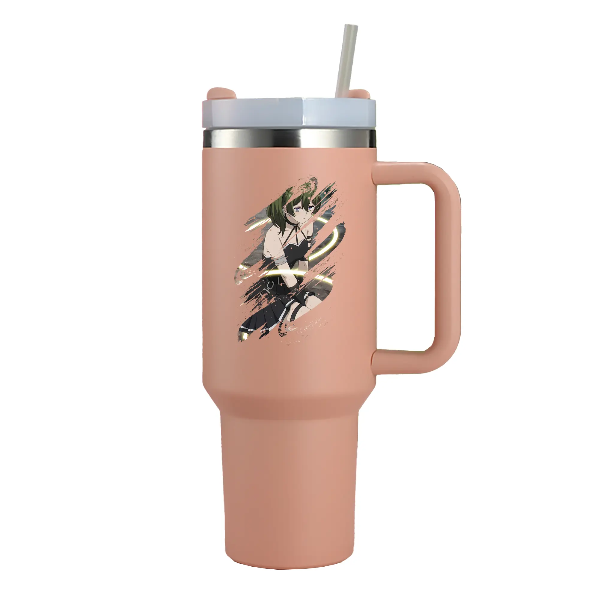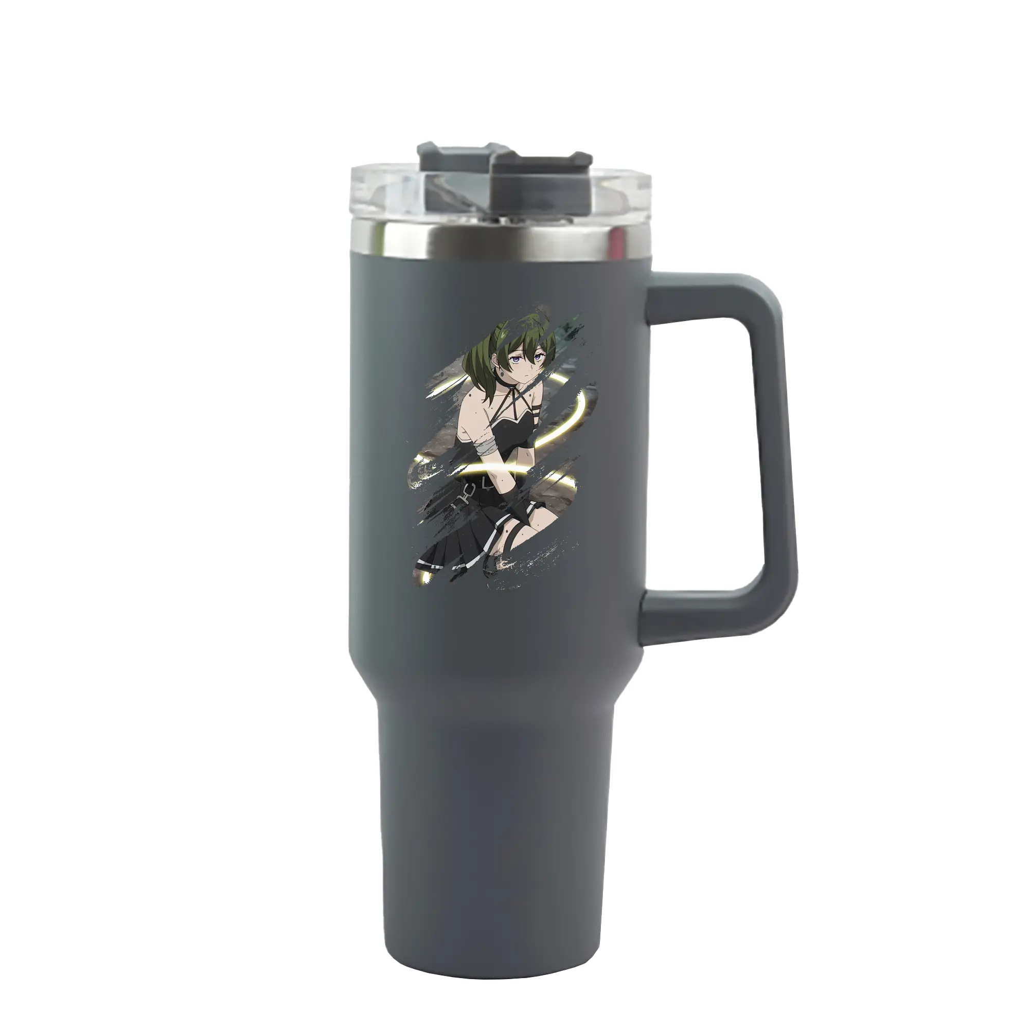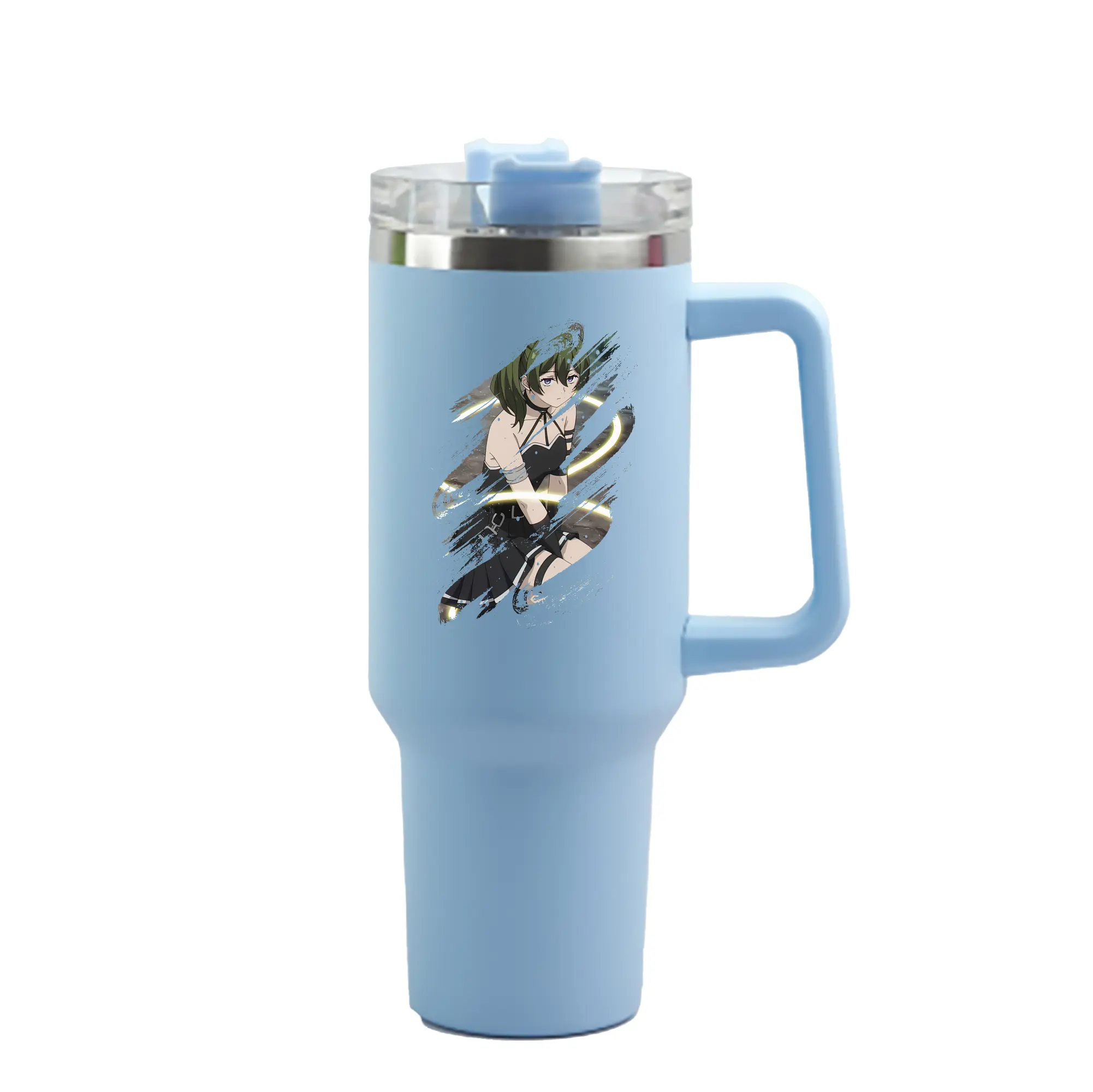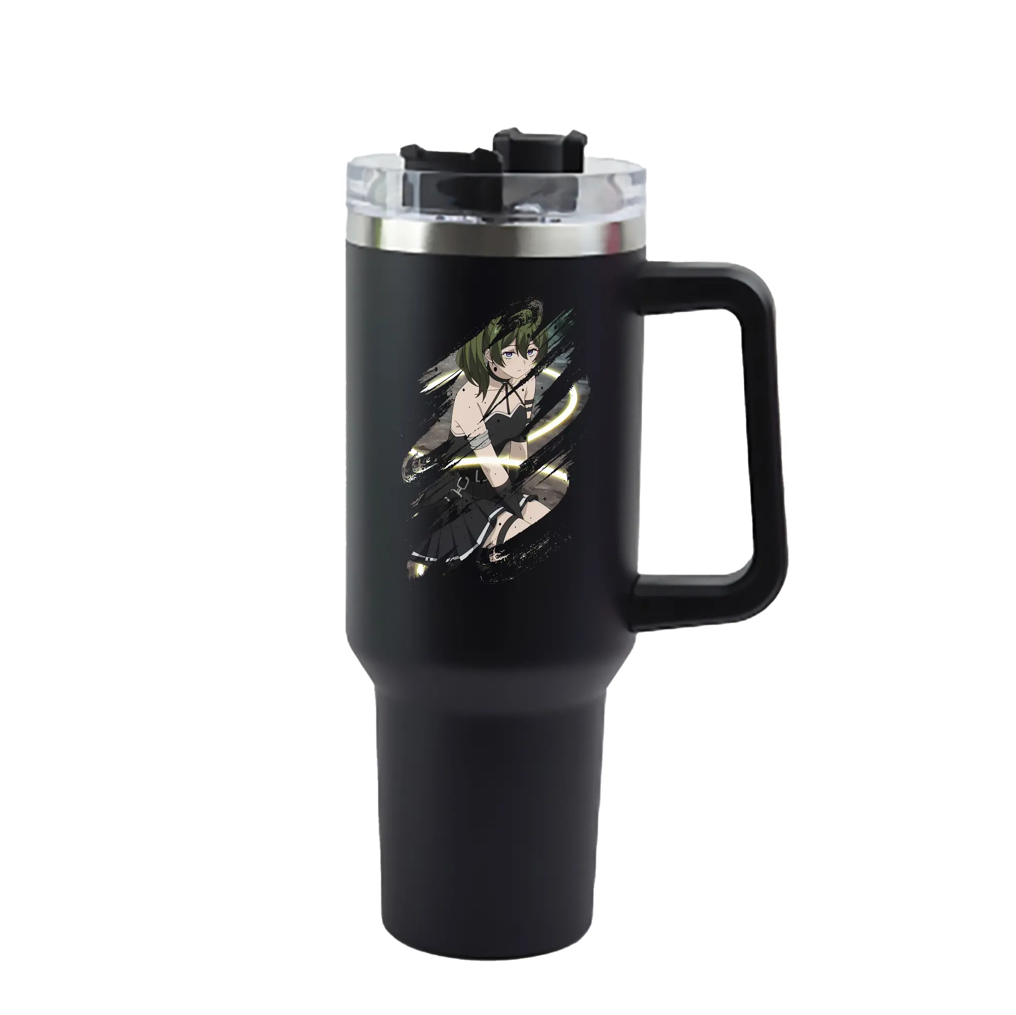 葬送のフリーレン(Frieren) グッズ,ユーベル(Übel) - 1200mL 車用タンブラー ・ クリスタルステッカー ・ 304ステンレス 内側 ・ 201ステンレス 外側 ・ 保温 保冷 ・ ハンドル&ストロー付き ・ 通勤 ドライブ アウトドア用