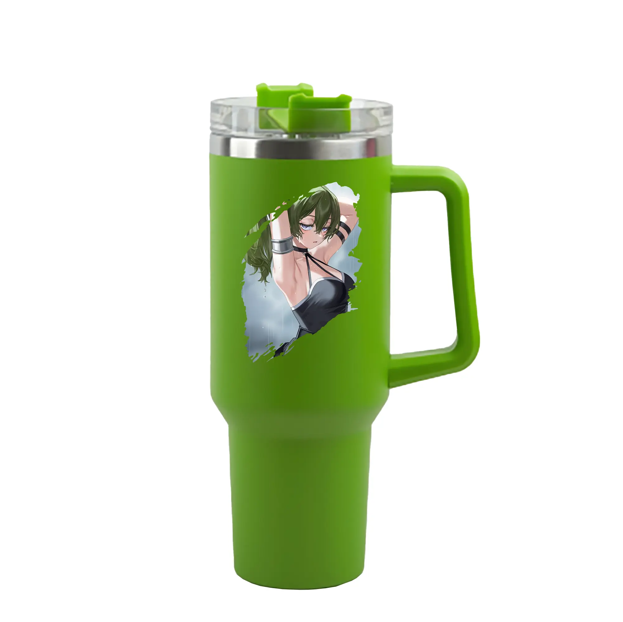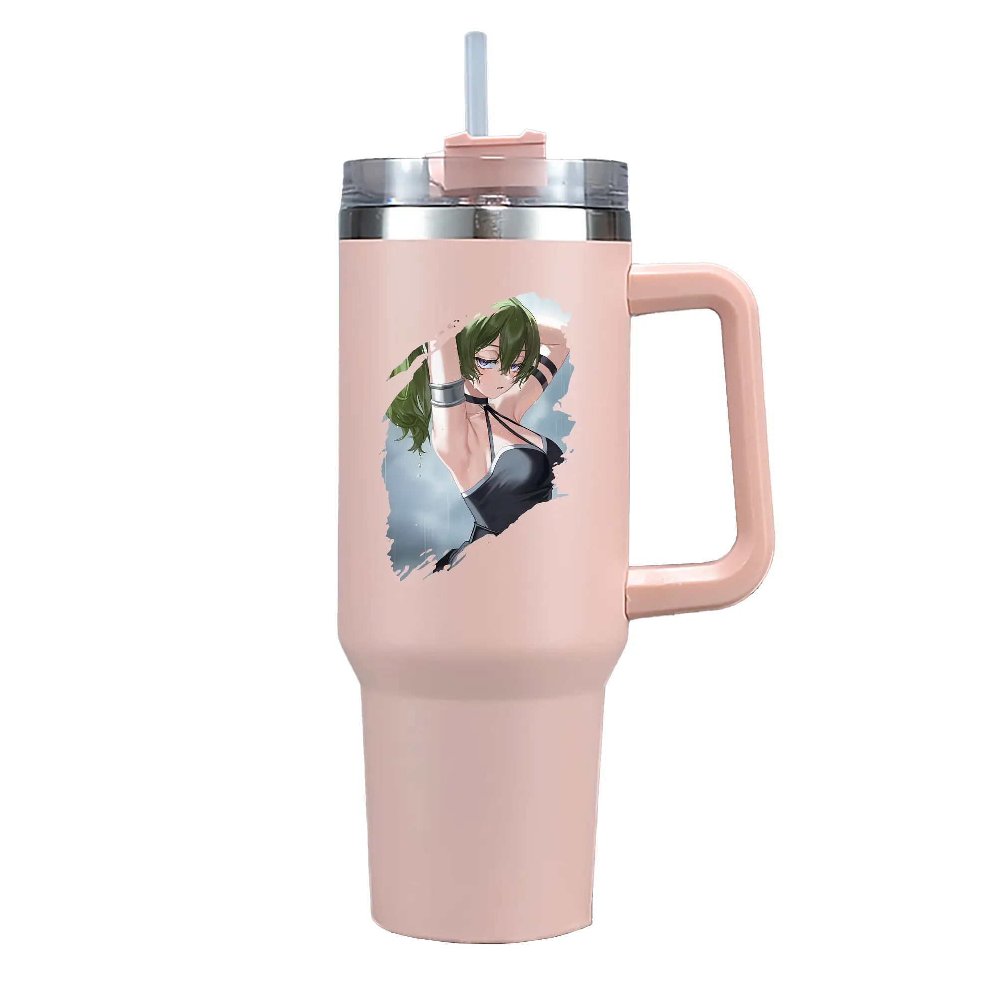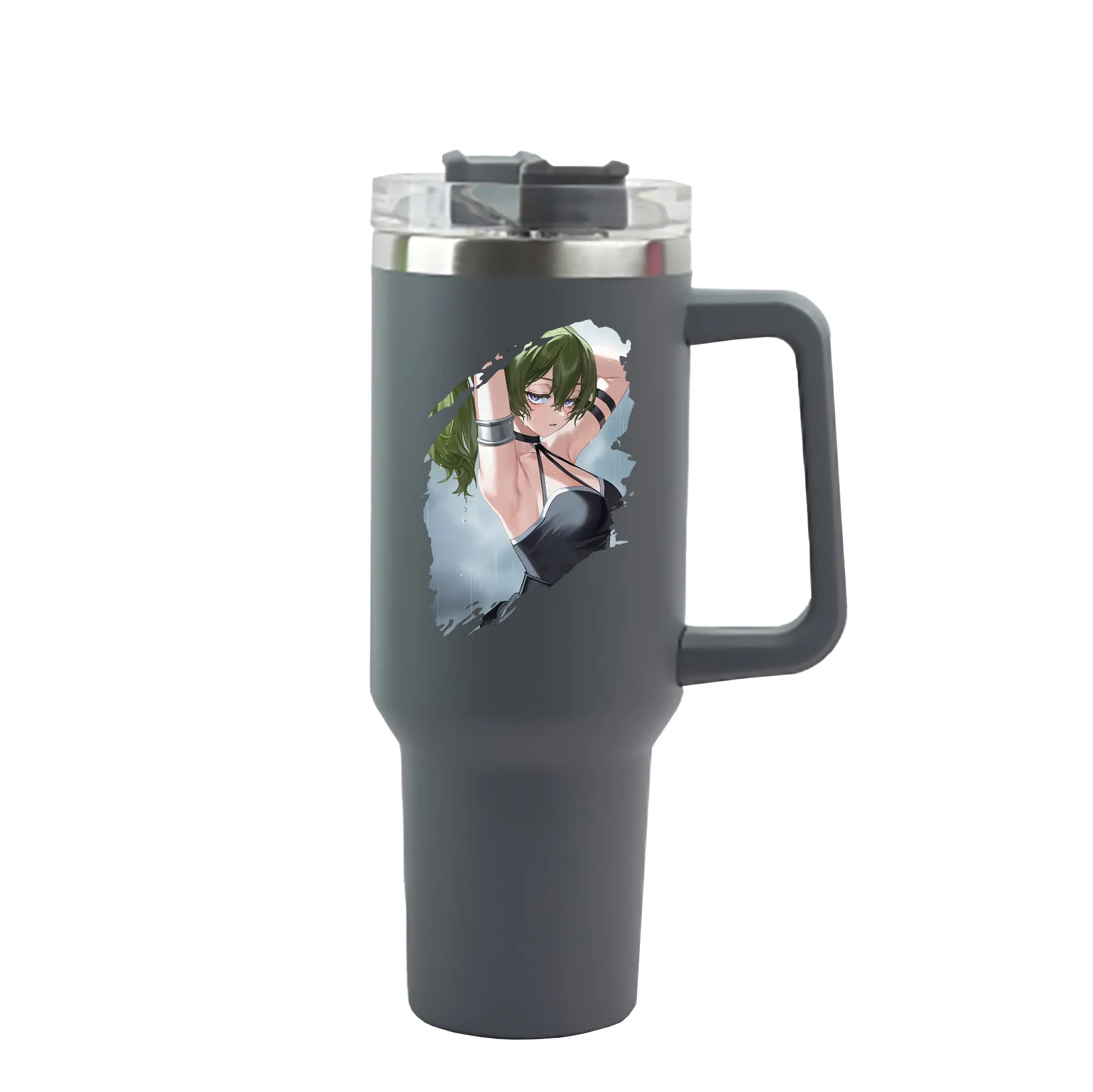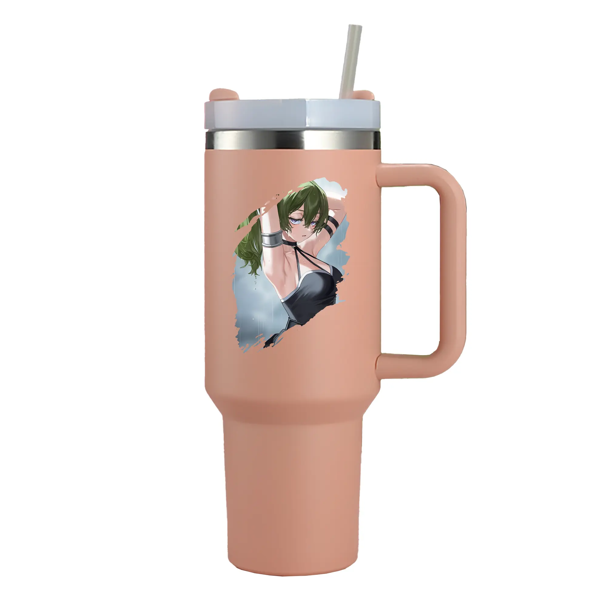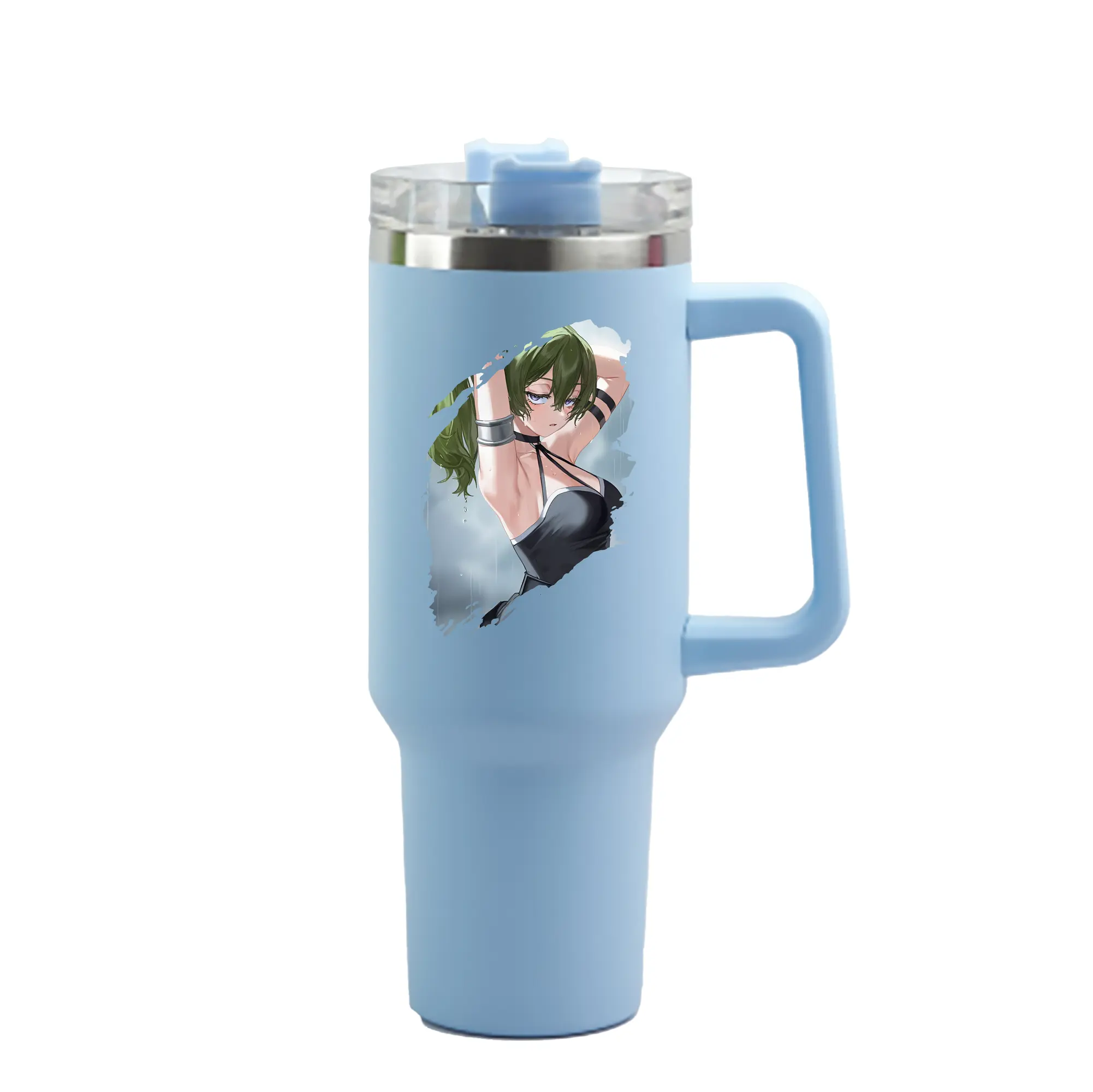葬送のフリーレン(Frieren) グッズ,ユーベル(Übel) - 1200mL 車用タンブラー ・ クリスタルステッカー ・ 304ステンレス 内側 ・ 201ステンレス 外側 ・ 保温 保冷 ・ ハンドル&ストロー付き ・ 通勤 ドライブ アウトドア用