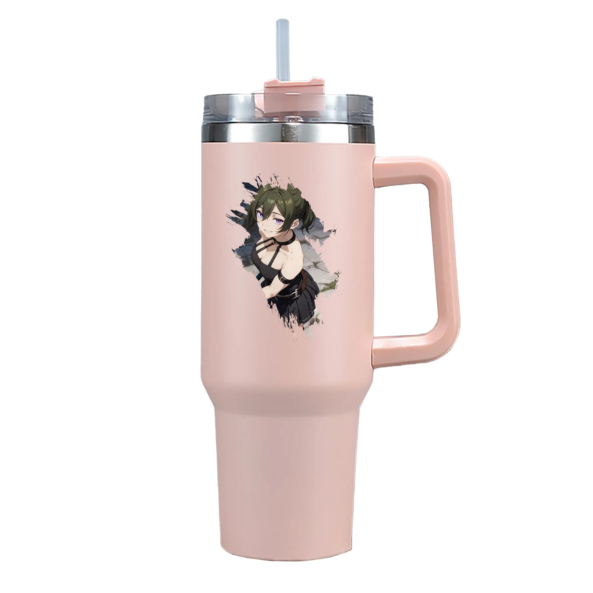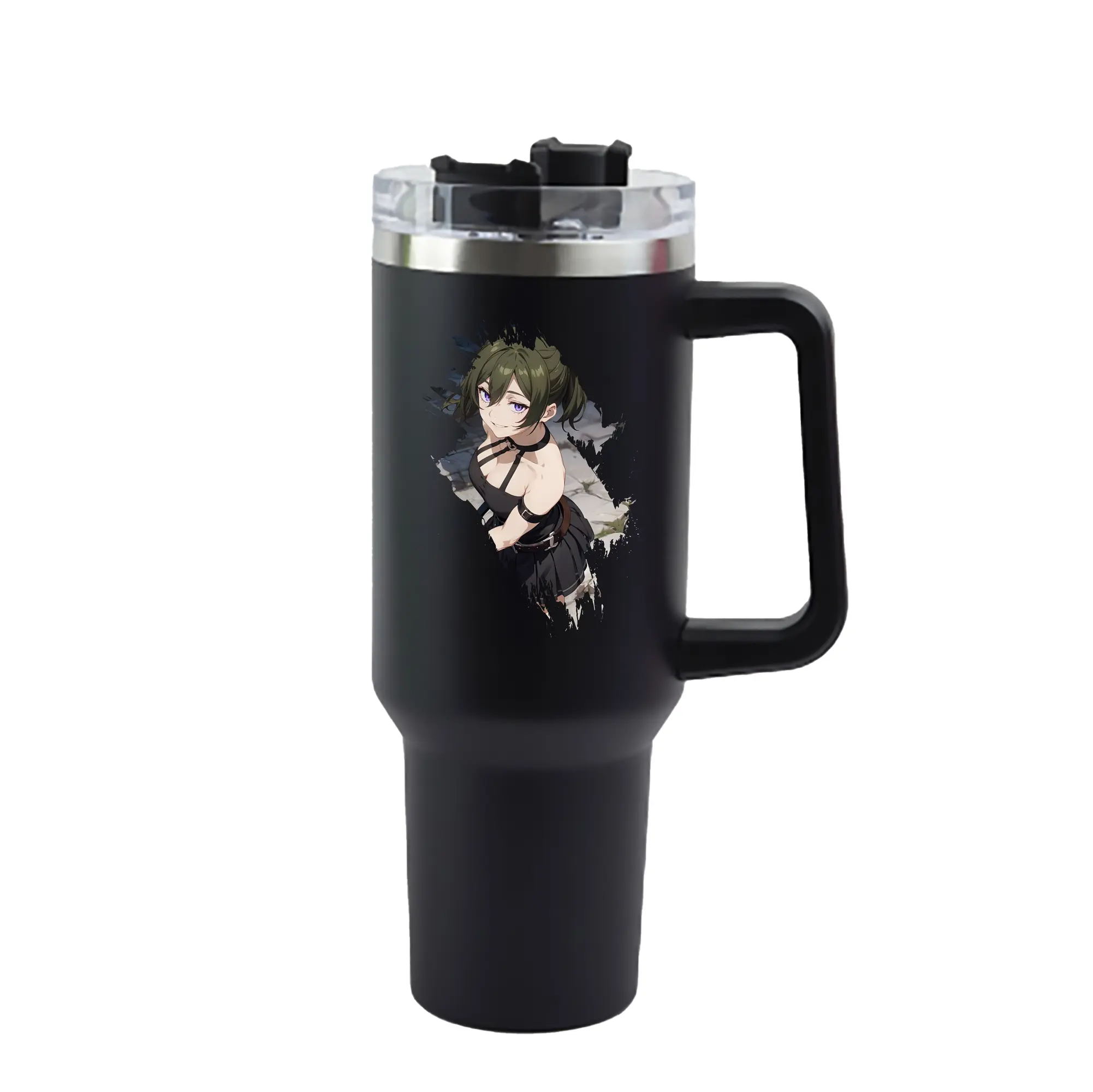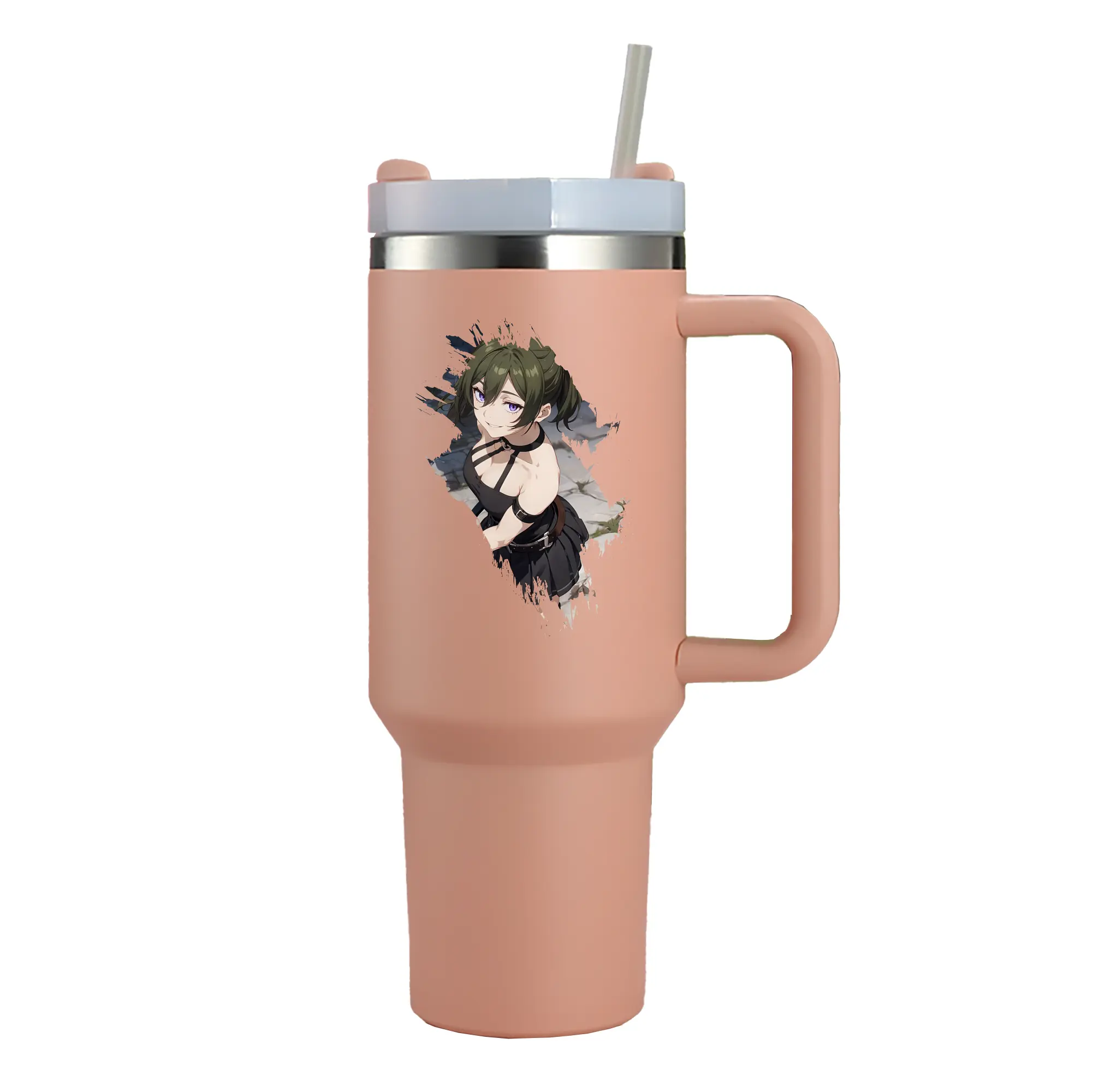葬送のフリーレン(Frieren) グッズ,ユーベル(Übel) - 1200mL 車用タンブラー ・ クリスタルステッカー ・ 304ステンレス 内側 ・ 201ステンレス 外側 ・ 保温 保冷 ・ ハンドル&ストロー付き ・ 通勤 ドライブ アウトドア用