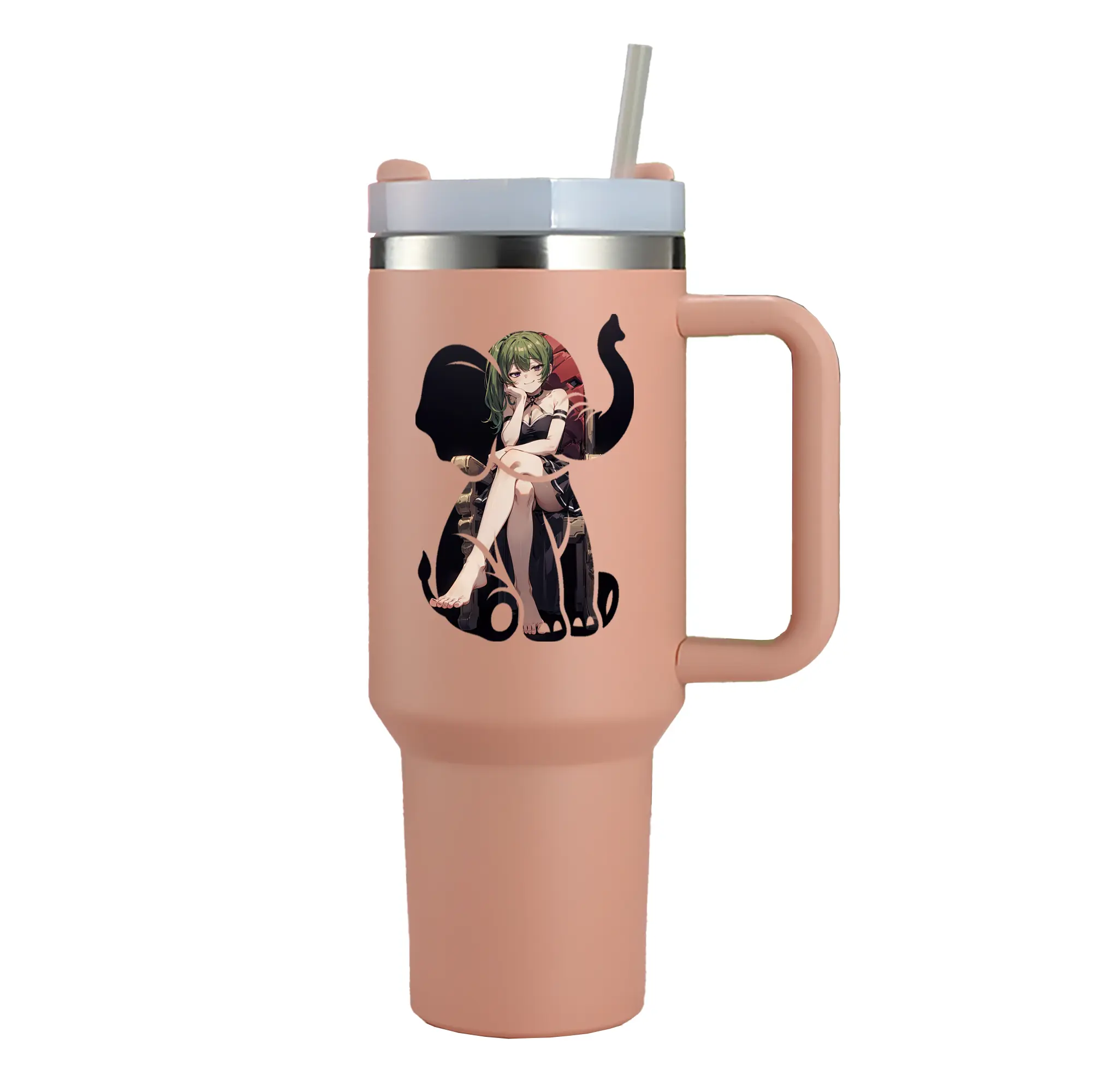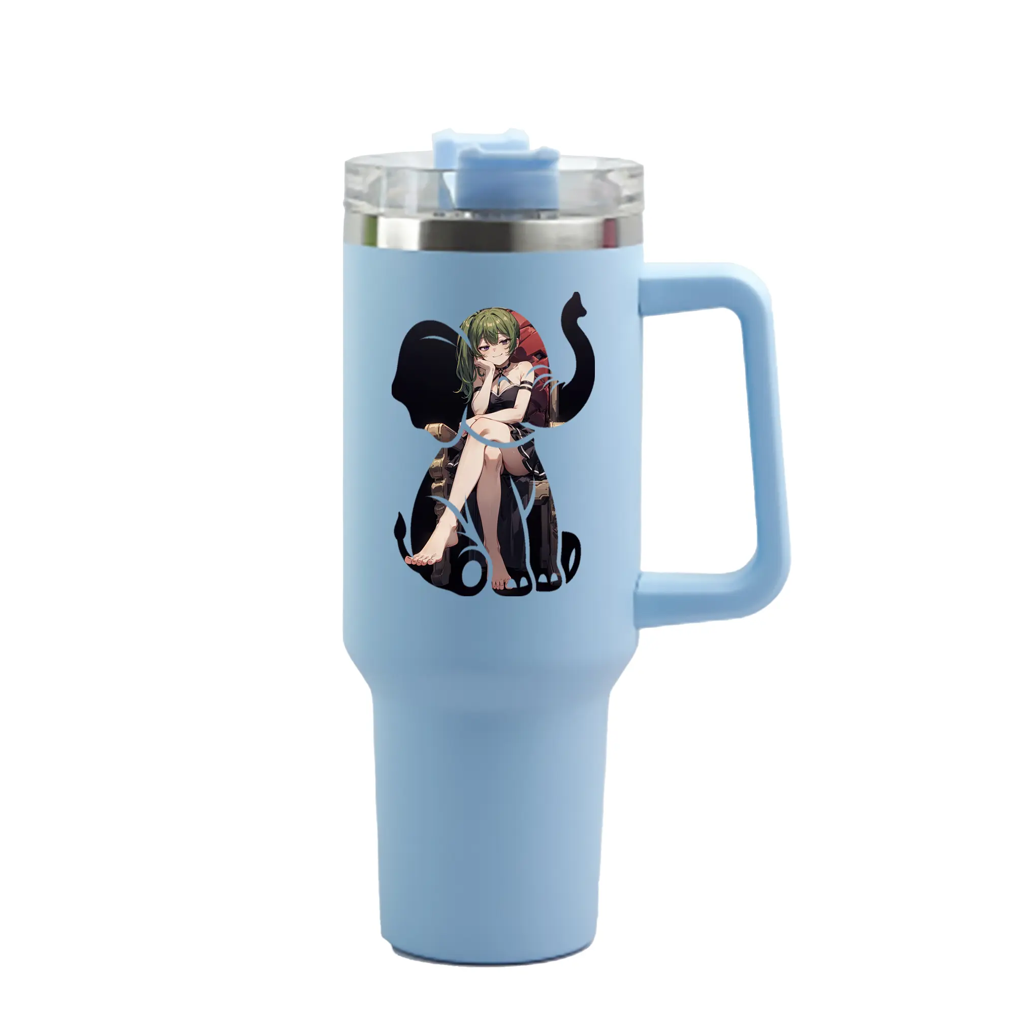 葬送のフリーレン(Frieren) グッズ,ユーベル(Übel) - 1200mL 車用タンブラー ・ クリスタルステッカー ・ 304ステンレス 内側 ・ 201ステンレス 外側 ・ 保温 保冷 ・ ハンドル&ストロー付き ・ 通勤 ドライブ アウトドア用