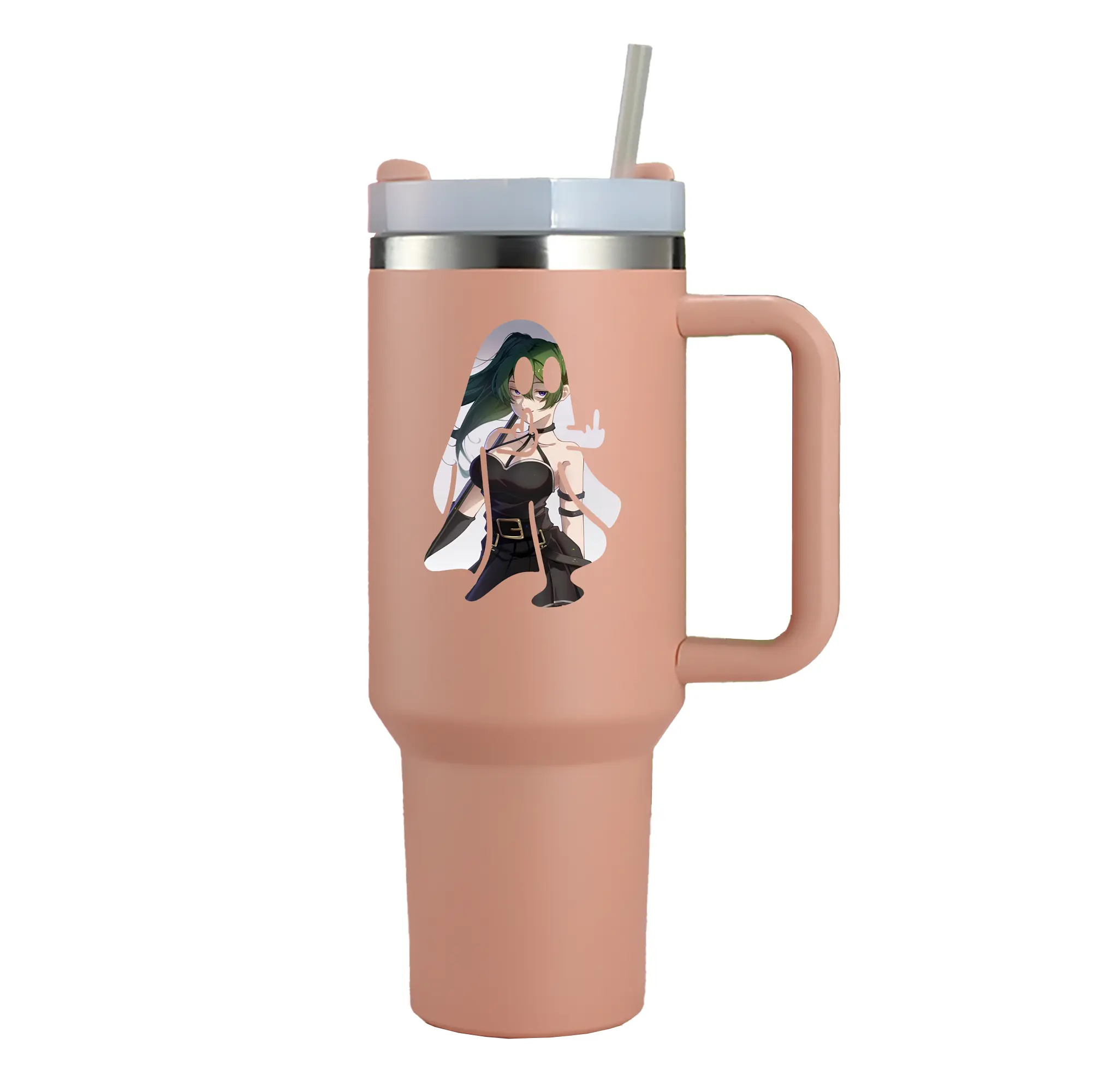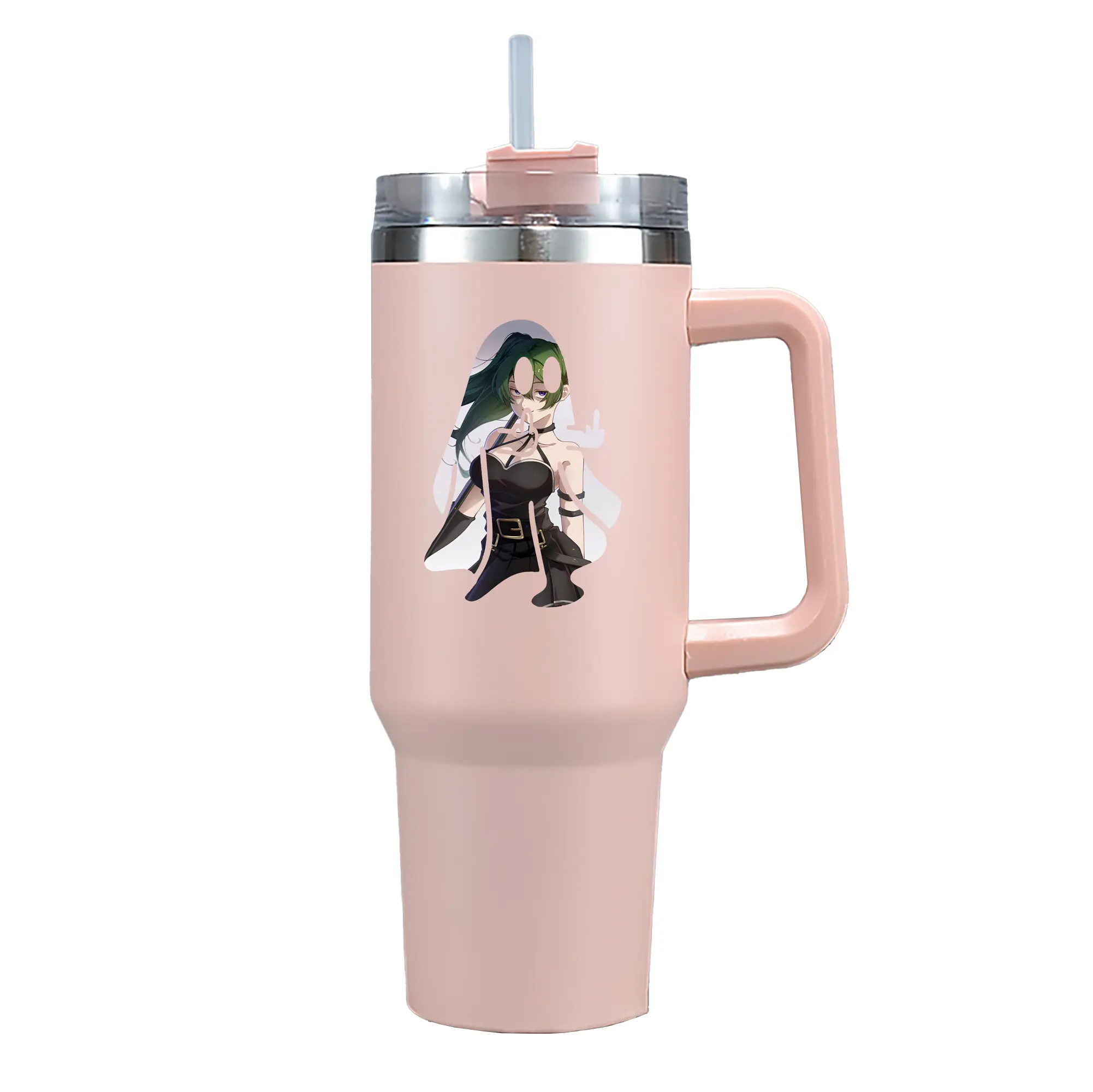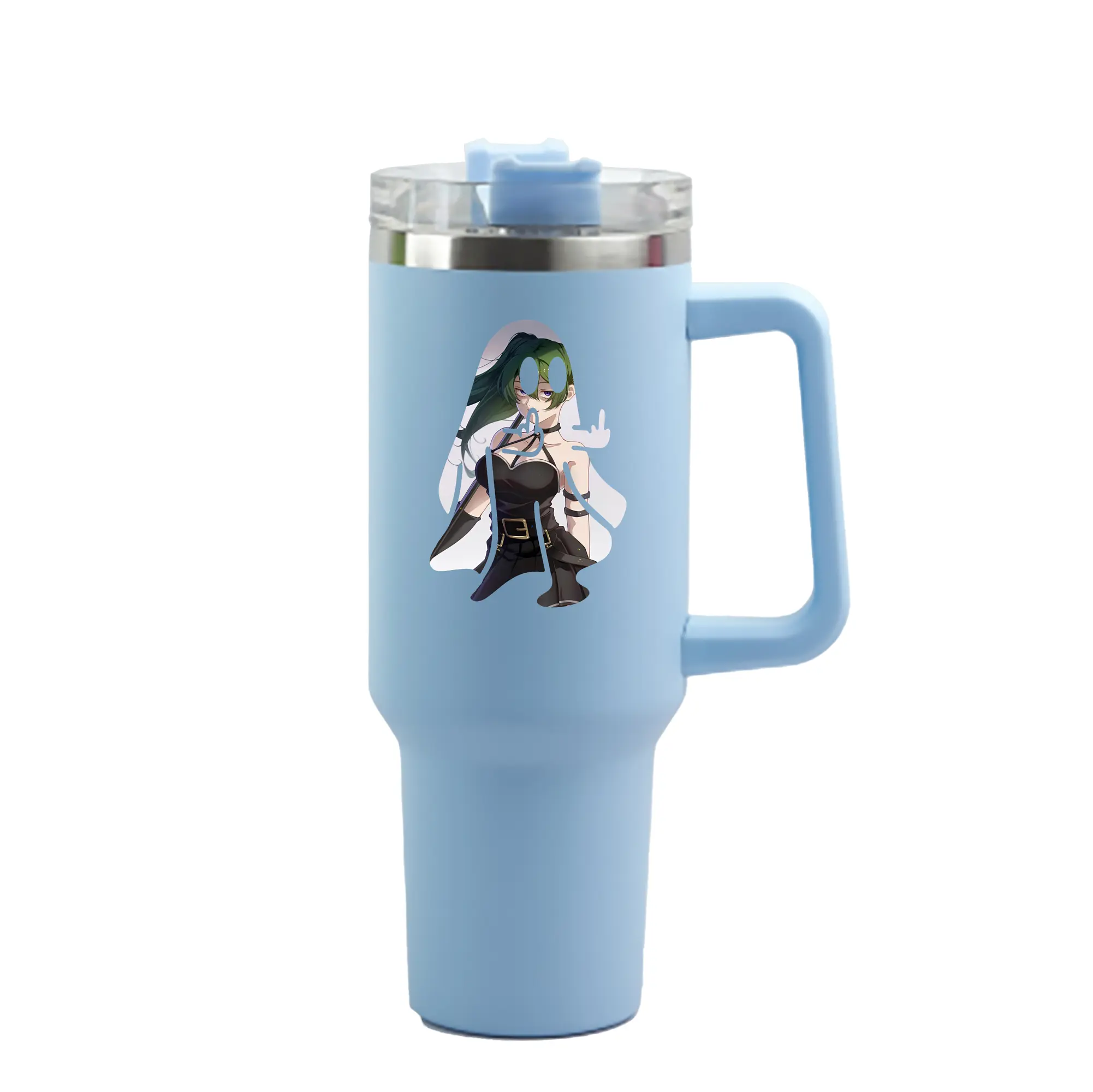 葬送のフリーレン(Frieren) グッズ,ユーベル(Übel) - 1200mL 車用タンブラー ・ クリスタルステッカー ・ 304ステンレス 内側 ・ 201ステンレス 外側 ・ 保温 保冷 ・ ハンドル&ストロー付き ・ 通勤 ドライブ アウトドア用