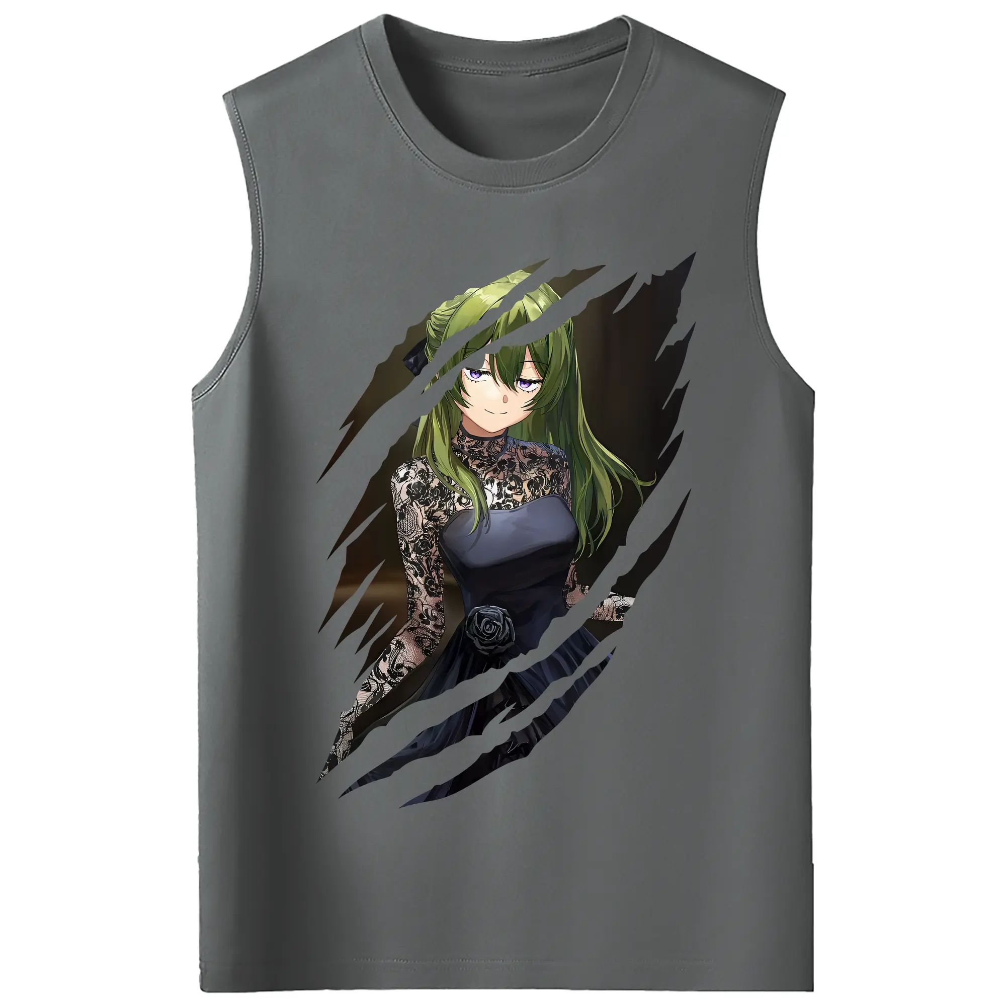 葬送のフリーレン(Frieren) グッズ,ユーベル(Übel) - コットン100% タンクトップ ・ フロントプリント ・ タイトフィット ・ 快適 通気性 ・ スポーツ カジュアル 散歩用