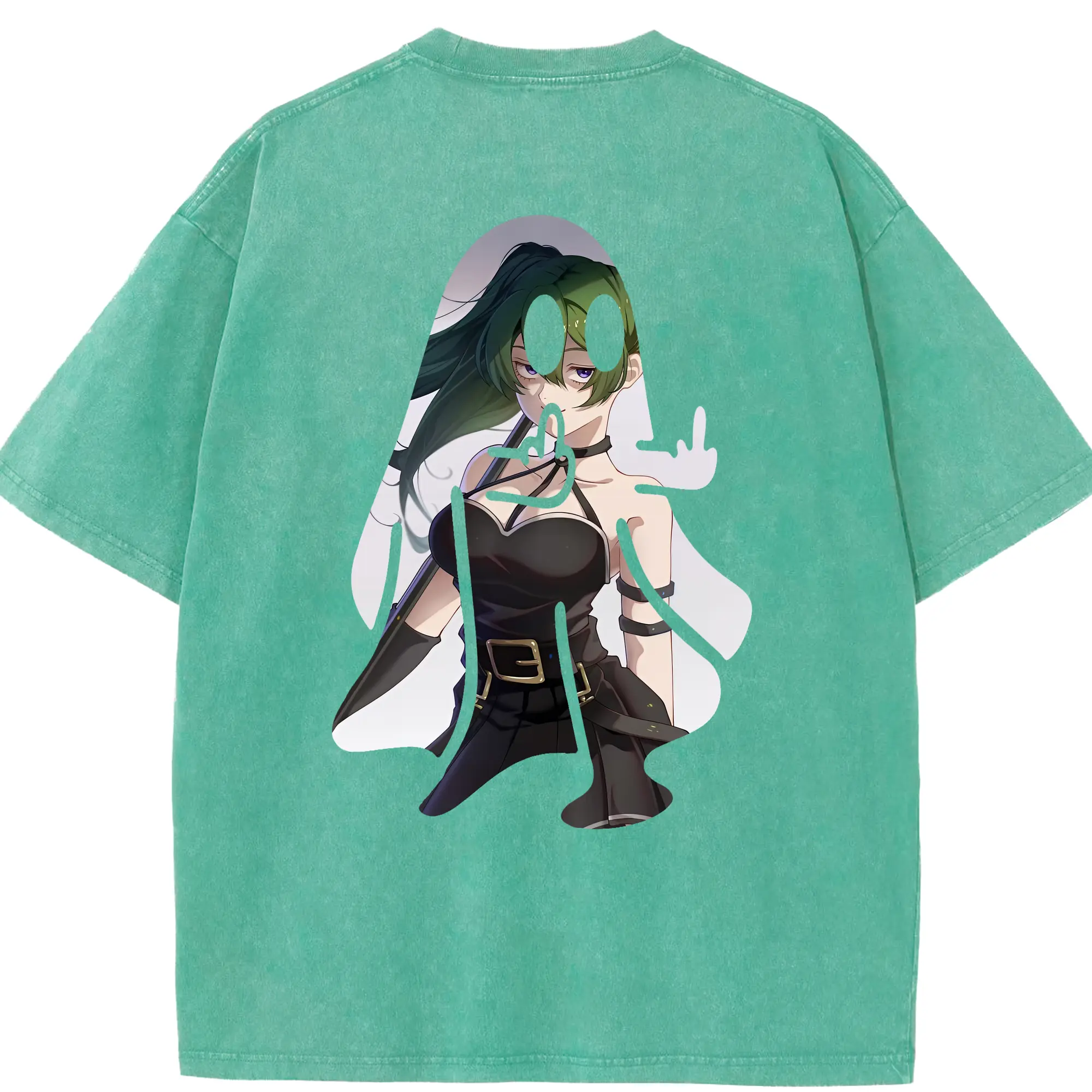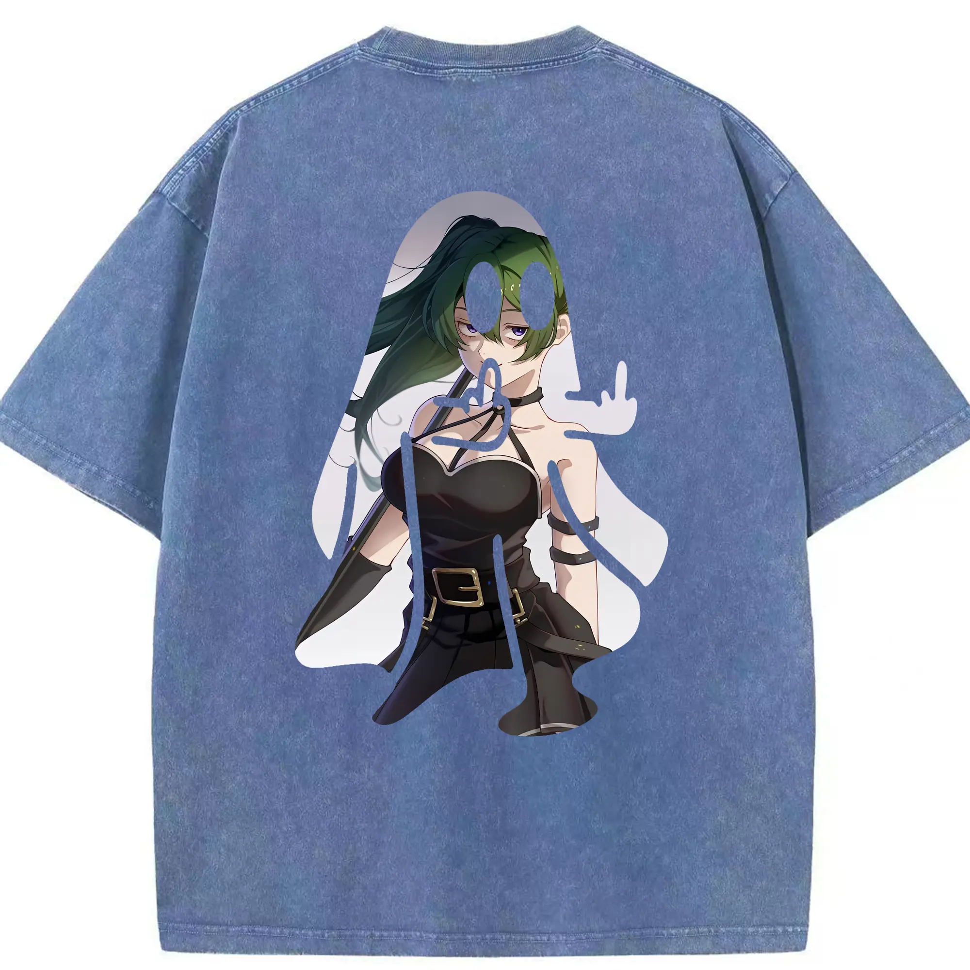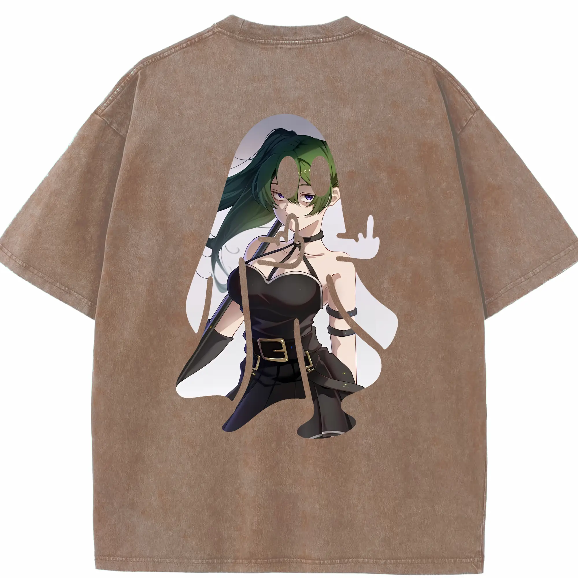 鳴潮 グッズ ザンニー - 綿100% ヴィンテージ風 半袖Tシャツ ・ 背面プリント ・ 柔らか肌触り ・ 通気性 快適 ・ スポーツ カジュアル 外出用