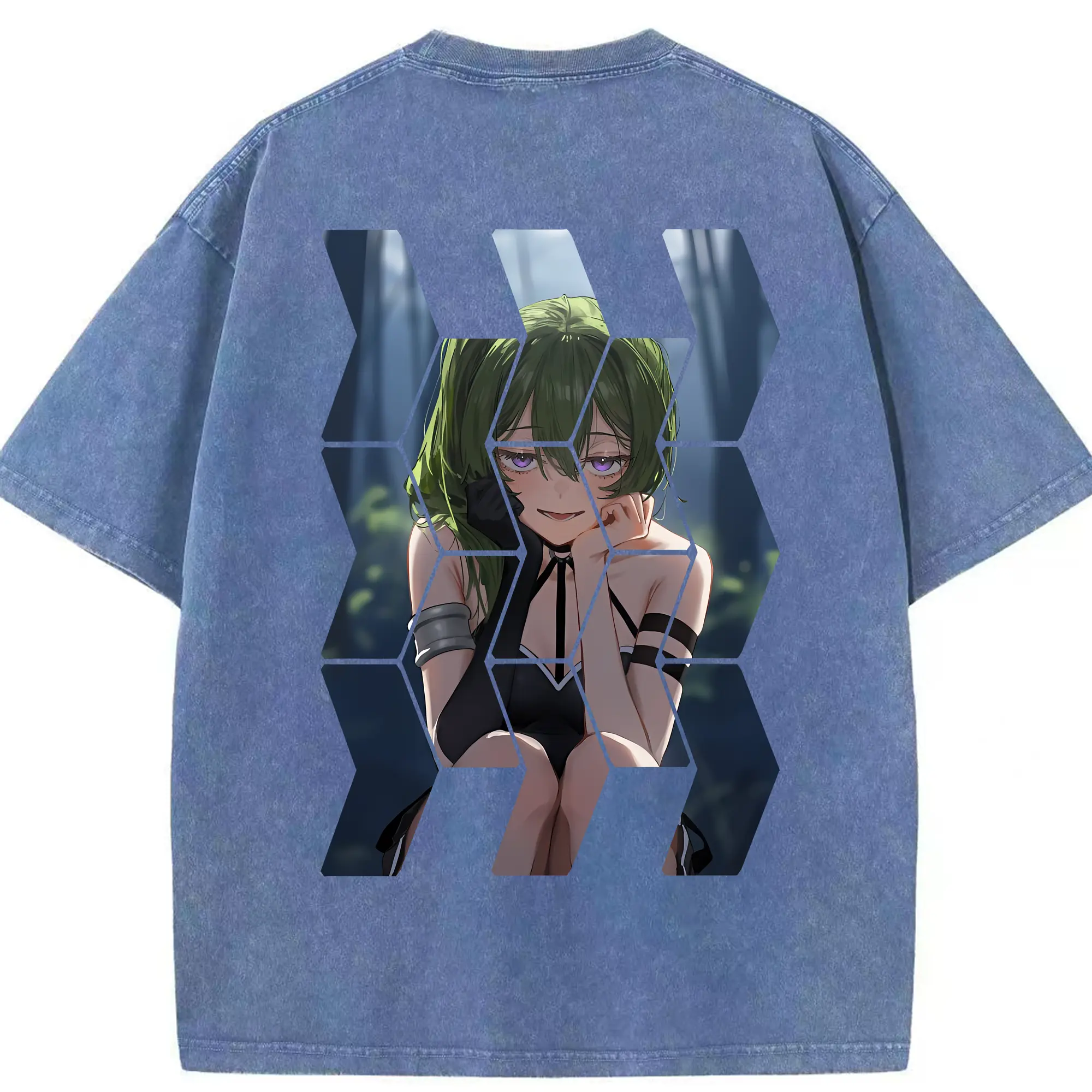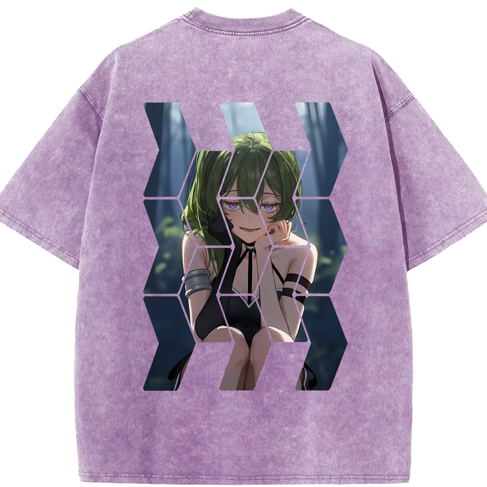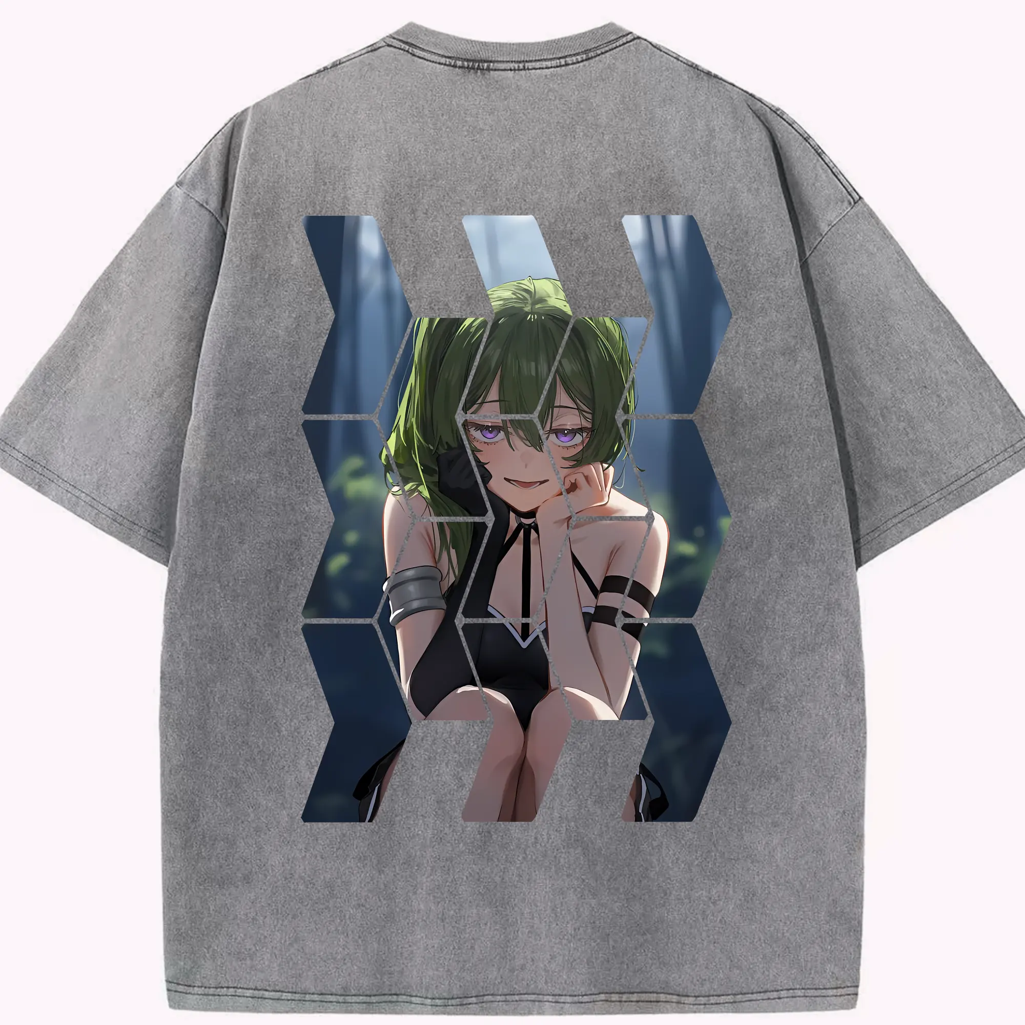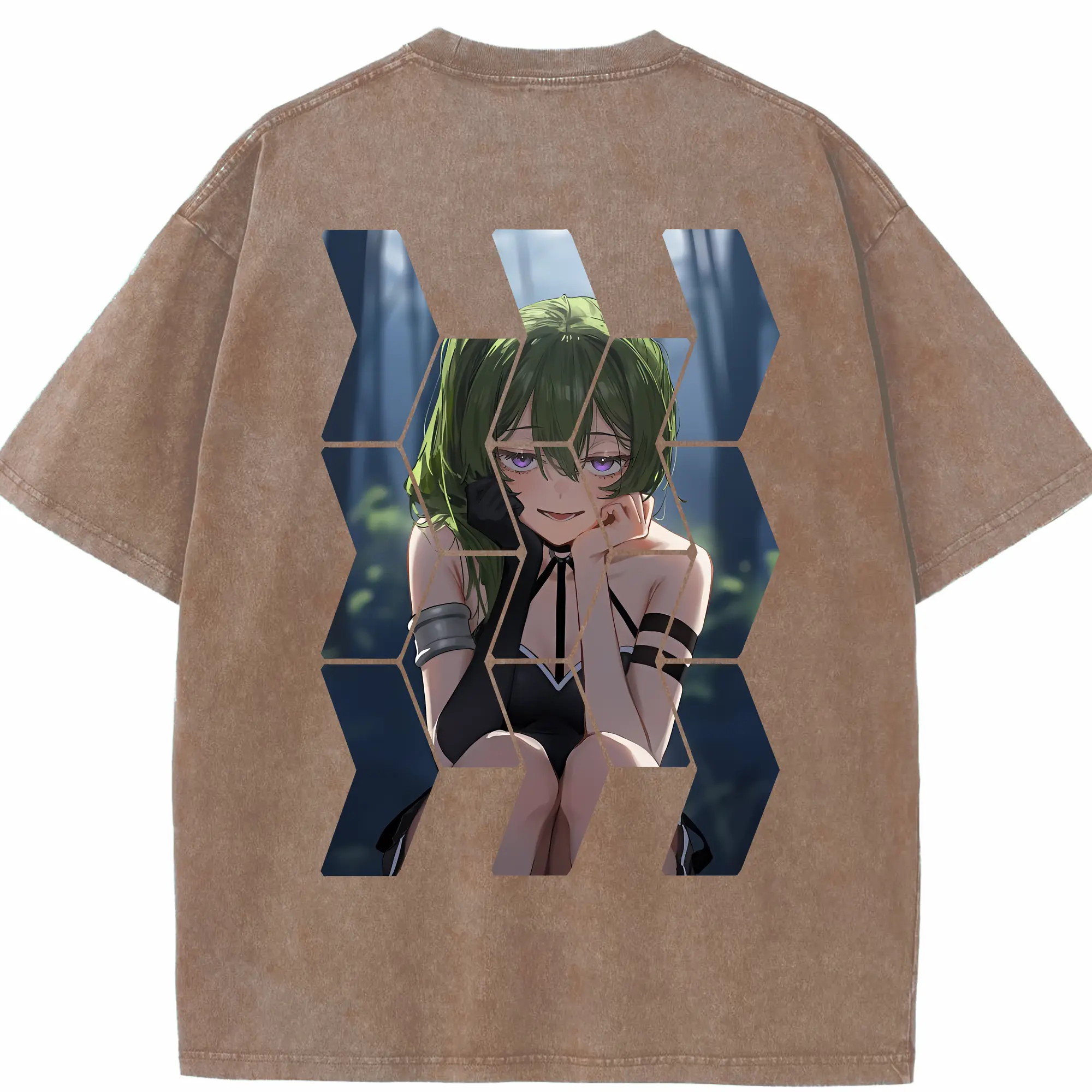 原 神 グッズ フリーナ - 綿100% ヴィンテージ風 半袖Tシャツ ・ 背面プリント ・ 柔らか肌触り ・ 通気性 快適 ・ スポーツ カジュアル 外出用