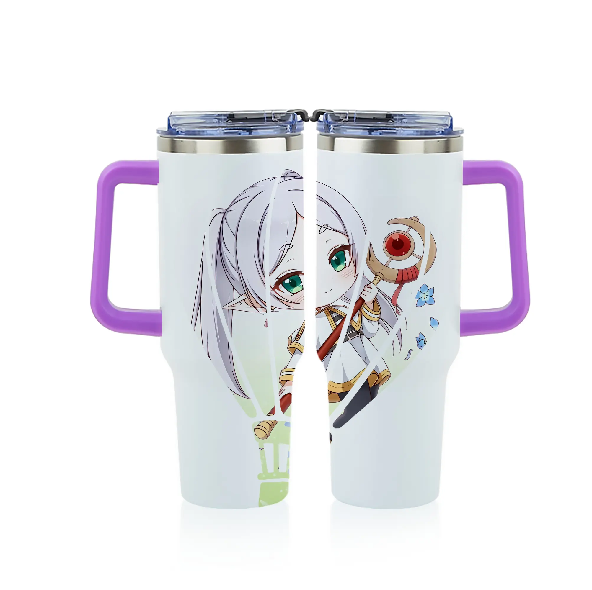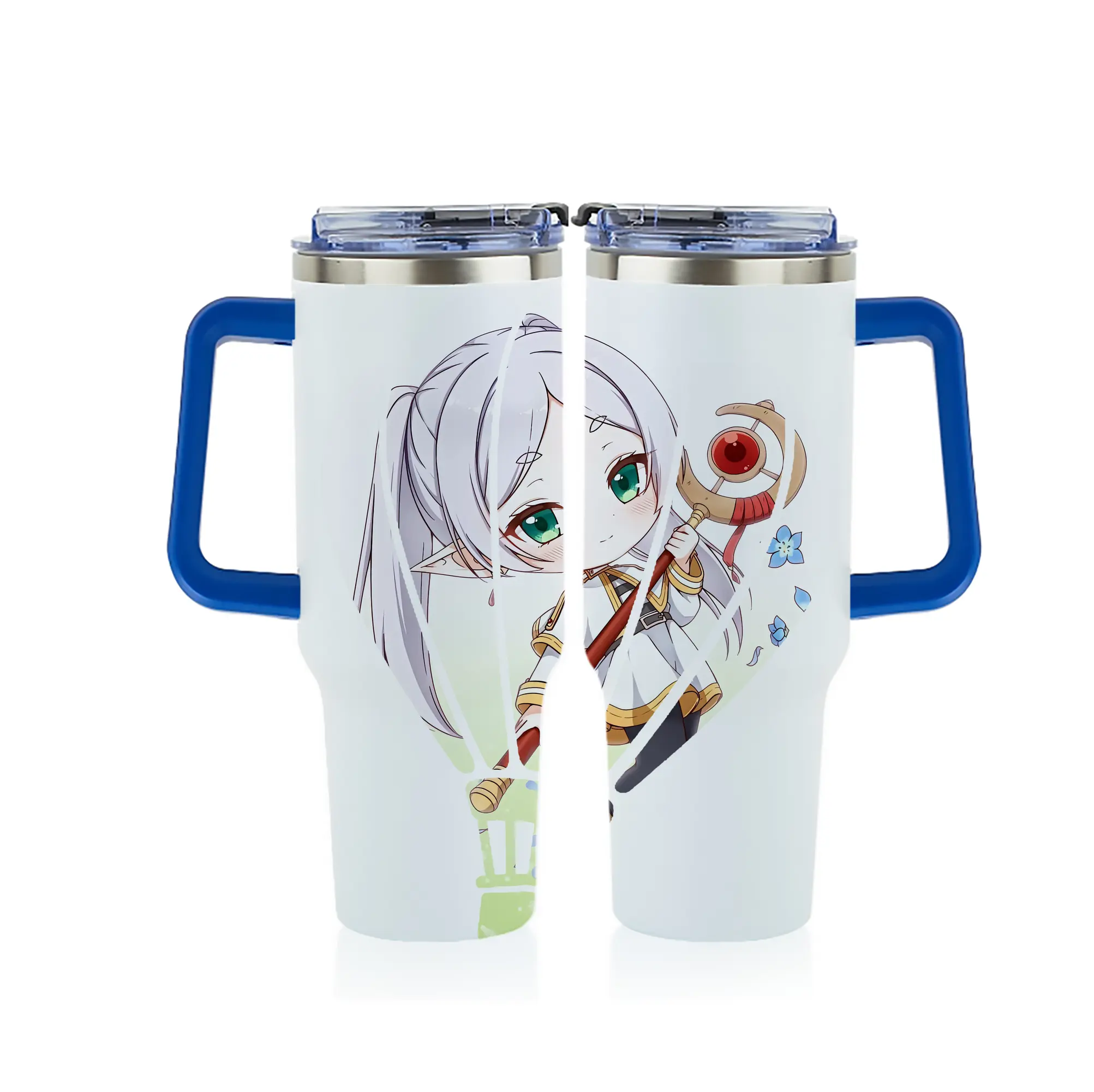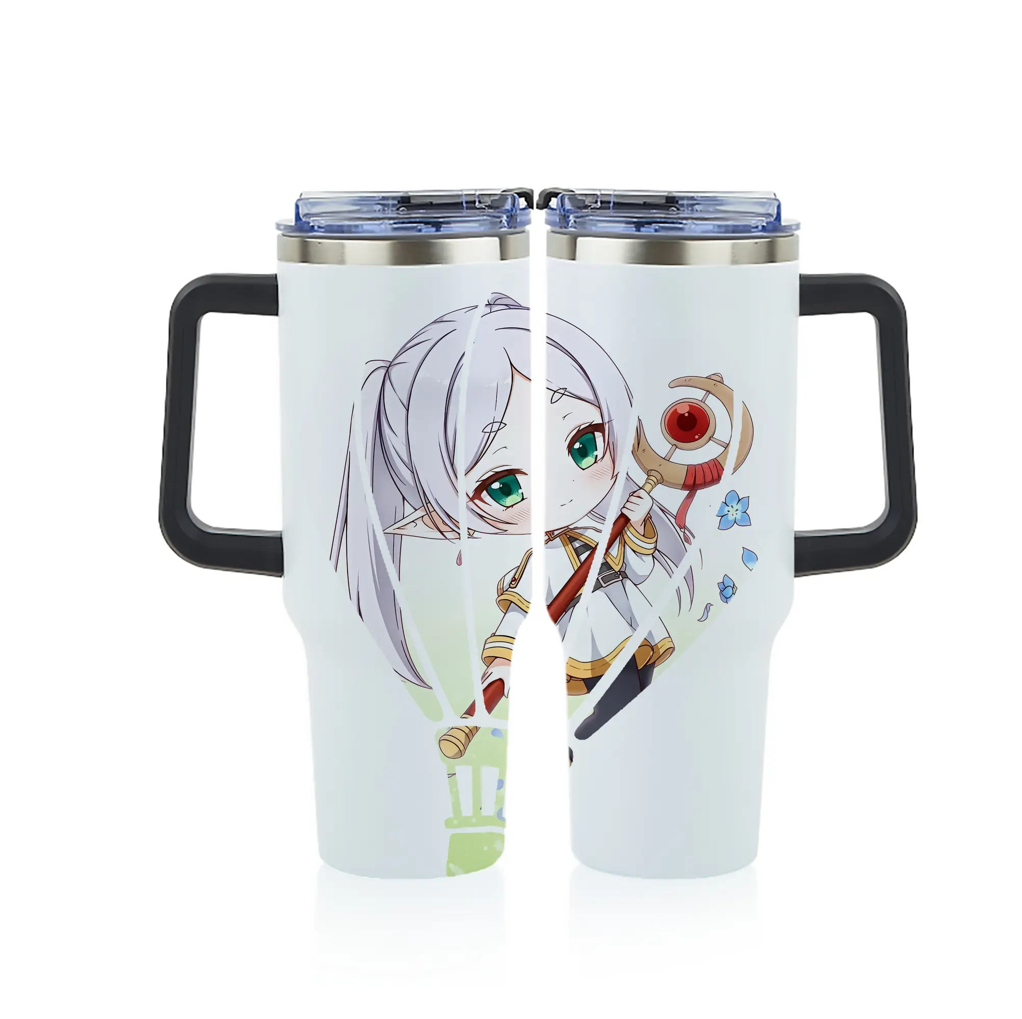 葬送のフリーレン(Frieren) グッズ,フリーレン(Frieren) - 1200mL フルプリント車用タンブラー ・ 304ステンレス 内側 ・ 201ステンレス 外側 ・ 保温 保冷 ・ 通勤 ドライブ アウトドア用