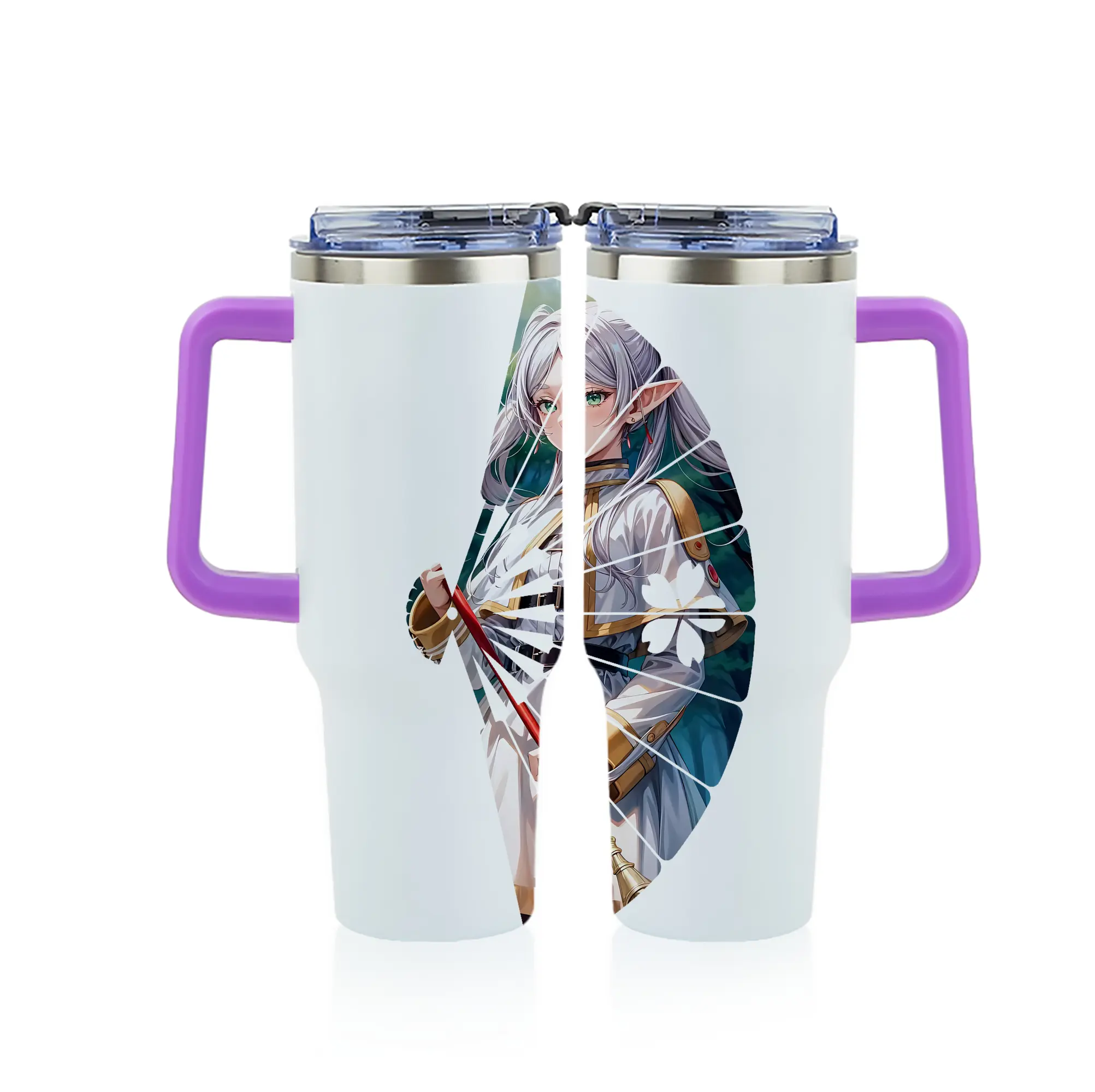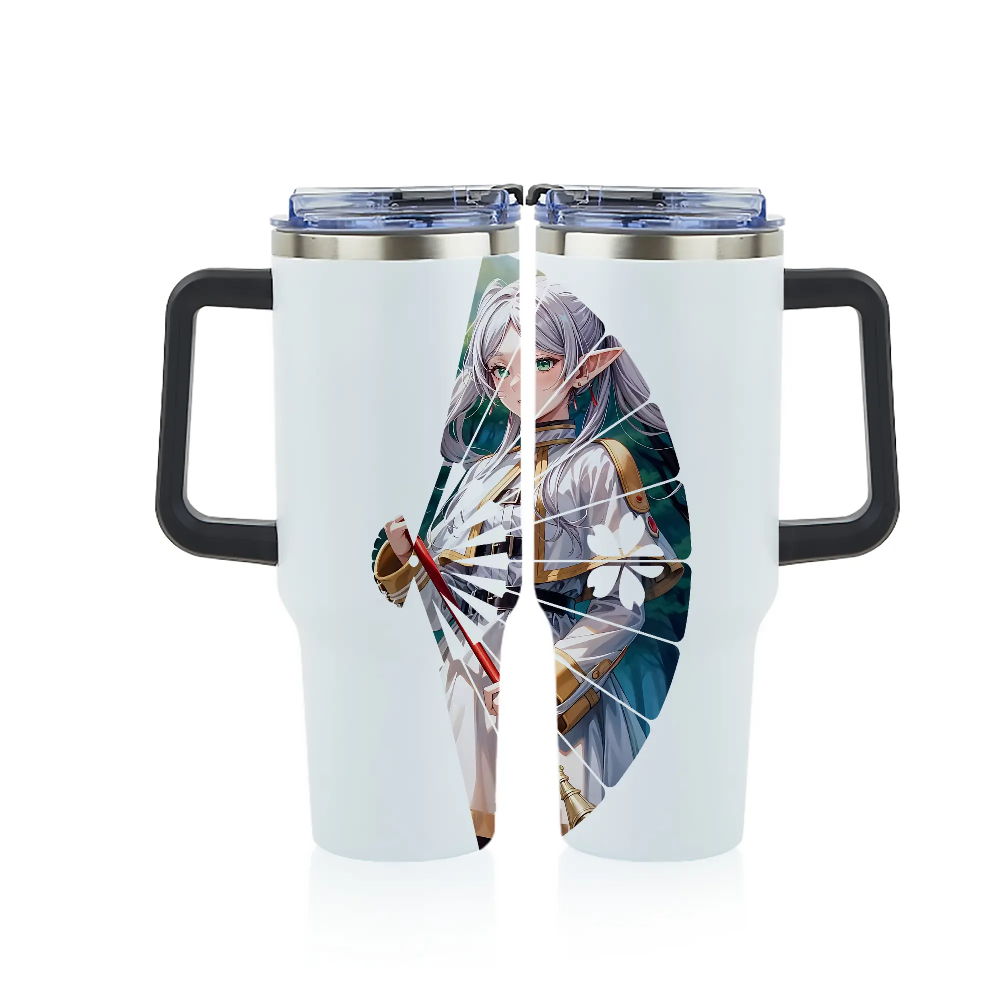 葬送のフリーレン(Frieren) グッズ,フリーレン(Frieren) - 1200mL フルプリント車用タンブラー ・ 304ステンレス 内側 ・ 201ステンレス 外側 ・ 保温 保冷 ・ 通勤 ドライブ アウトドア用