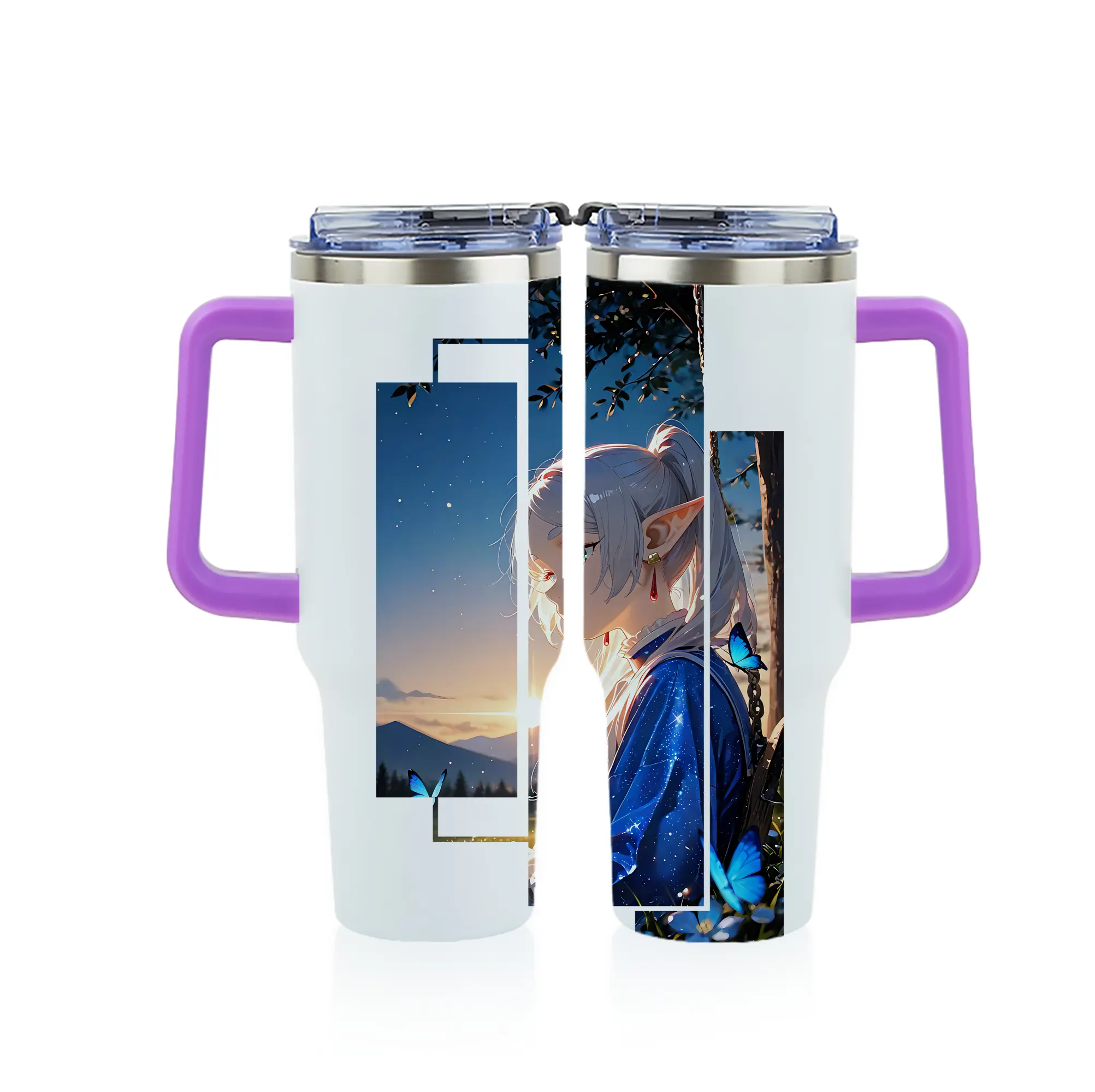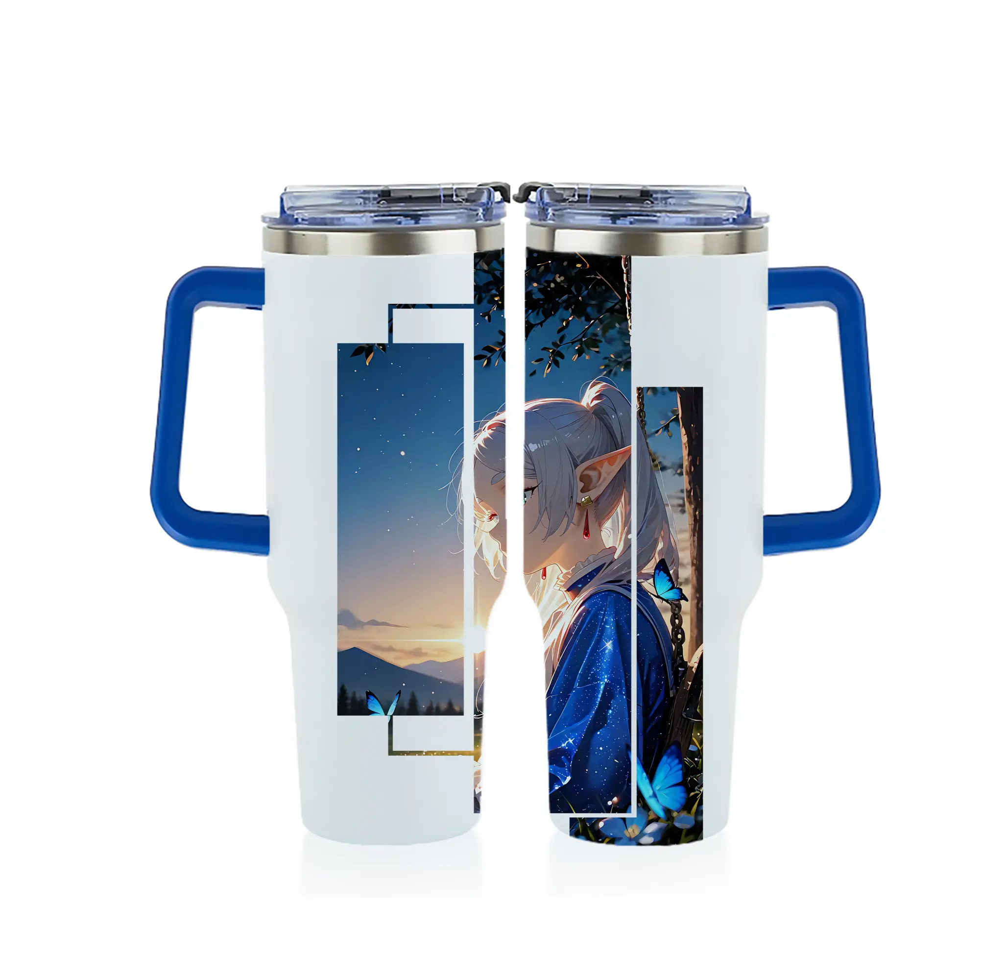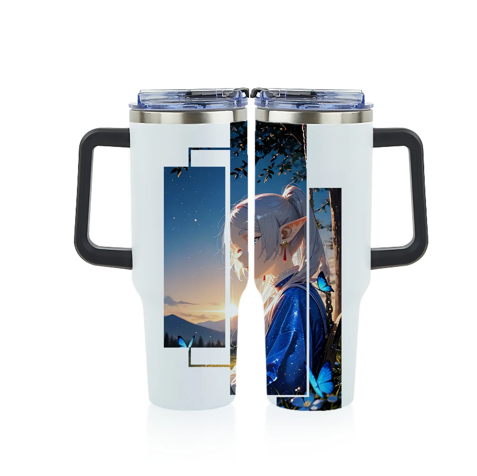 葬送のフリーレン(Frieren) グッズ,フリーレン(Frieren) - 1200mL フルプリント車用タンブラー ・ 304ステンレス 内側 ・ 201ステンレス 外側 ・ 保温 保冷 ・ 通勤 ドライブ アウトドア用