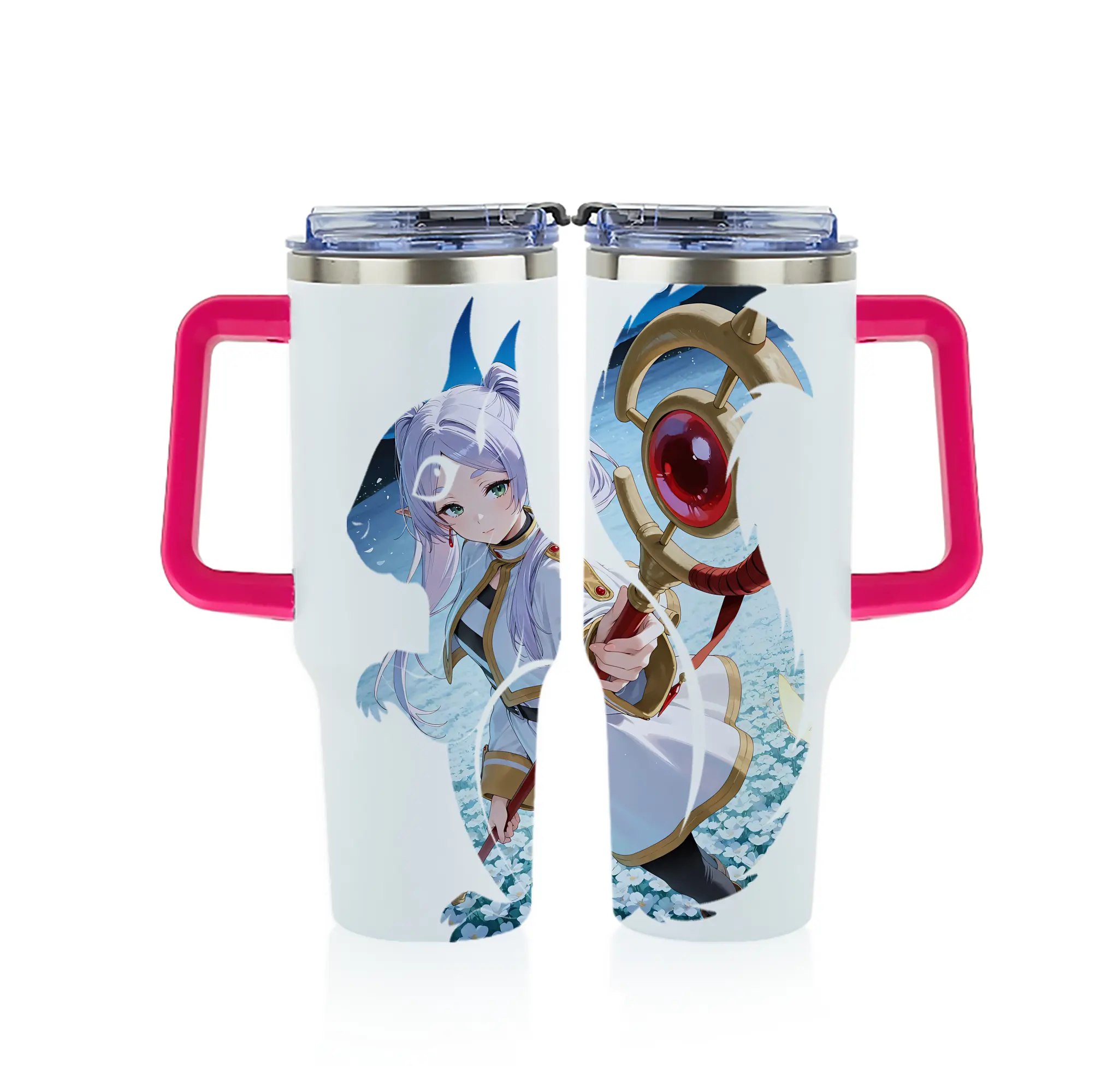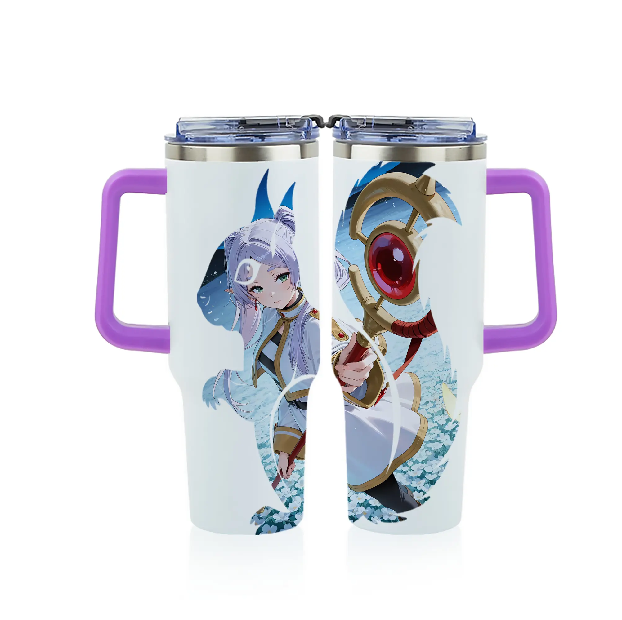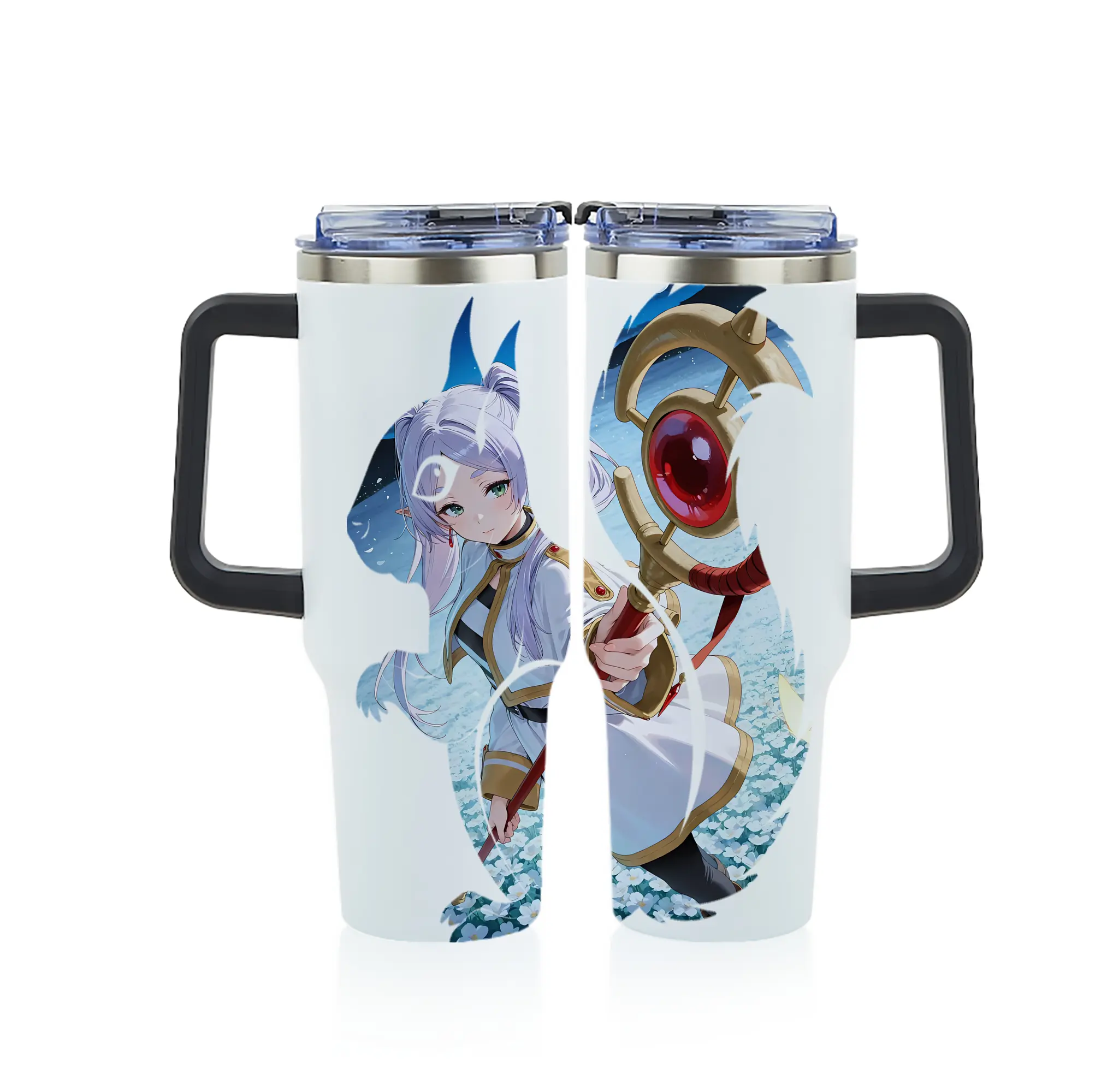 葬送のフリーレン(Frieren) グッズ,フリーレン(Frieren) - 1200mL フルプリント車用タンブラー ・ 304ステンレス 内側 ・ 201ステンレス 外側 ・ 保温 保冷 ・ 通勤 ドライブ アウトドア用