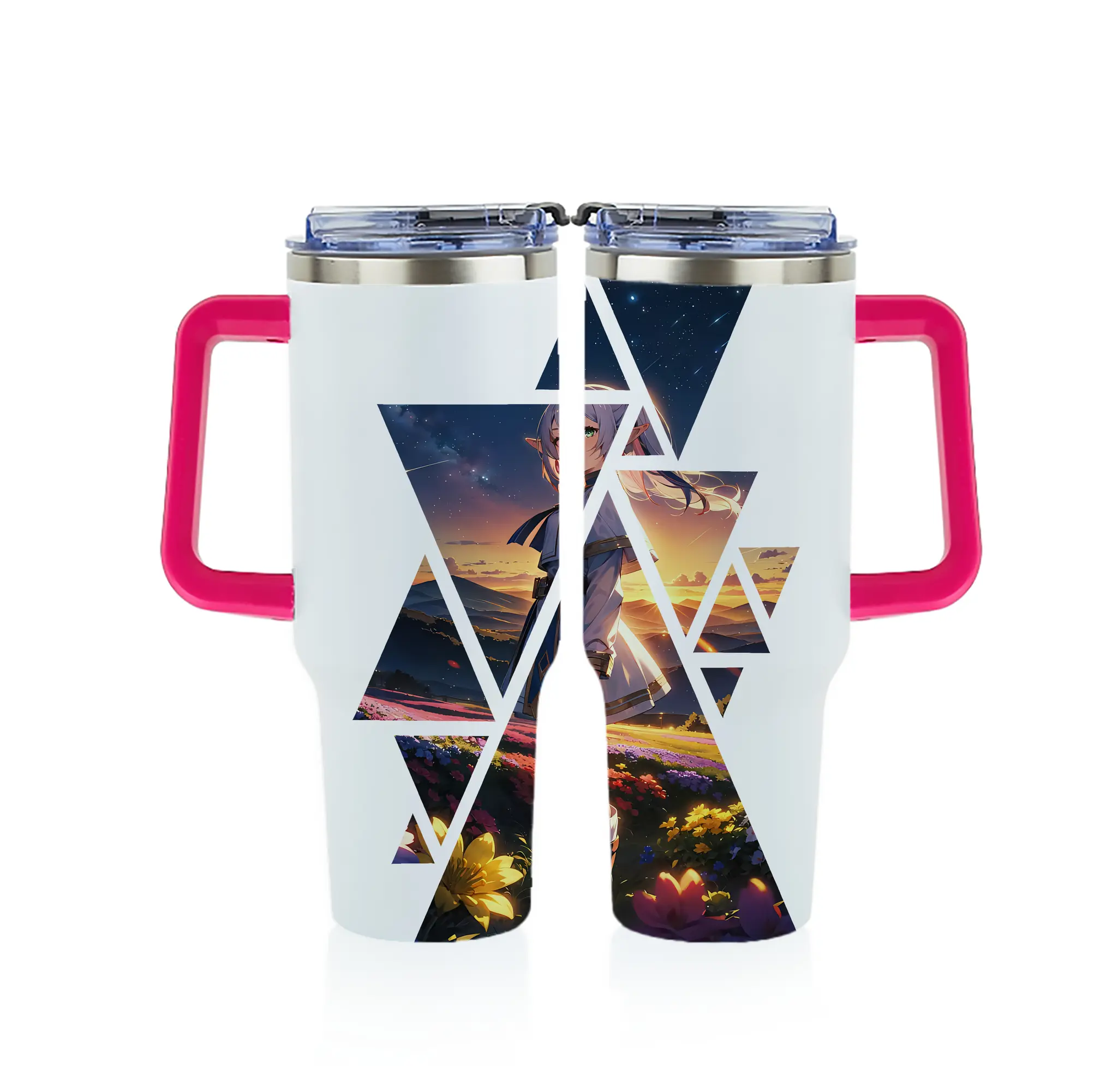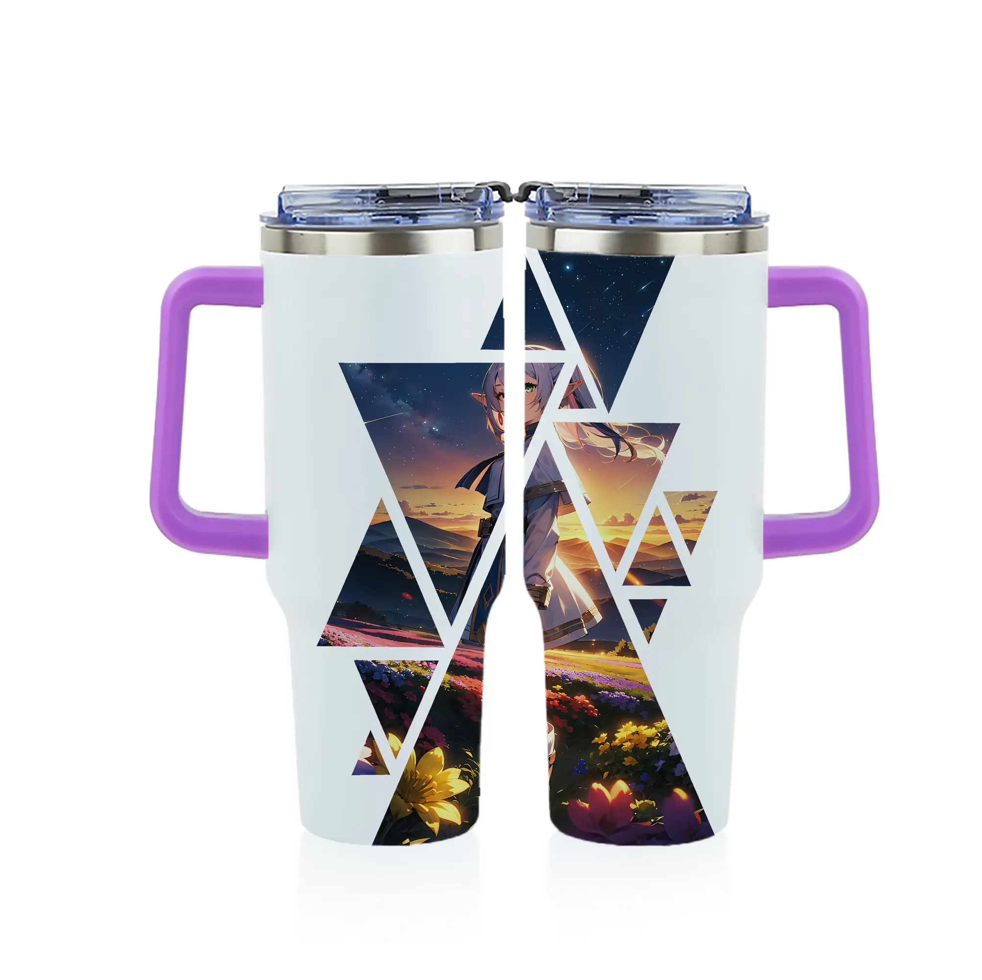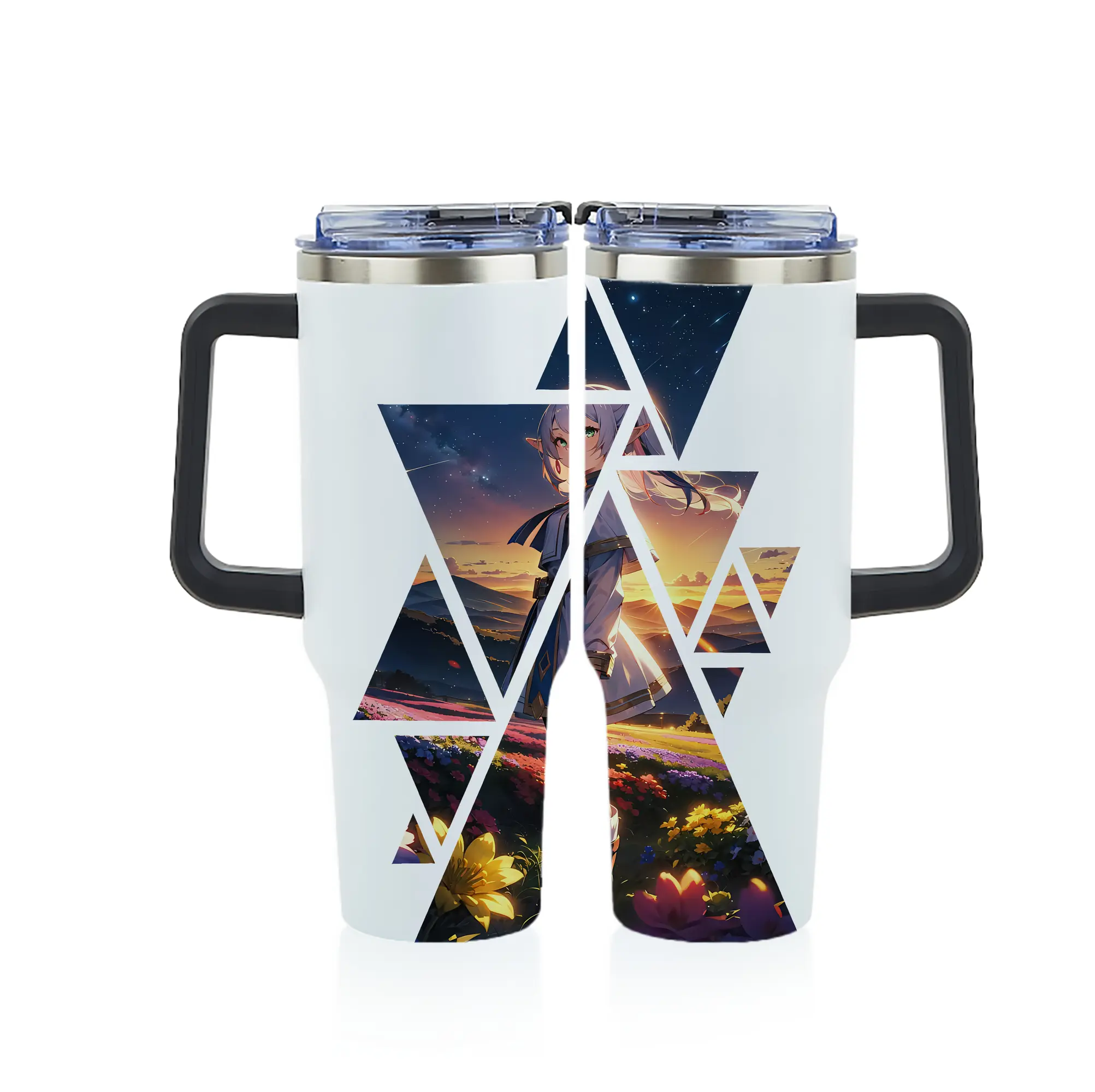 葬送のフリーレン(Frieren) グッズ,フリーレン(Frieren) - 1200mL フルプリント車用タンブラー ・ 304ステンレス 内側 ・ 201ステンレス 外側 ・ 保温 保冷 ・ 通勤 ドライブ アウトドア用