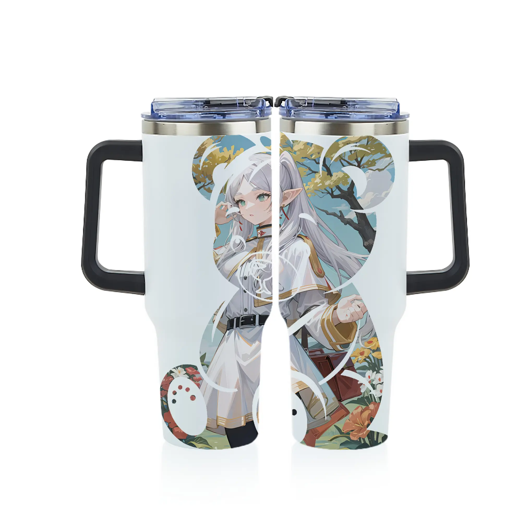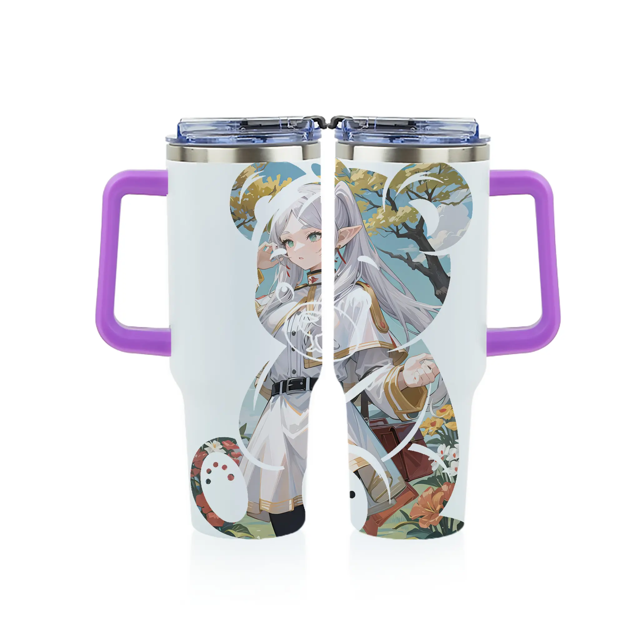 葬送のフリーレン(Frieren) グッズ,フリーレン(Frieren) - 1200mL フルプリント車用タンブラー ・ 304ステンレス 内側 ・ 201ステンレス 外側 ・ 保温 保冷 ・ 通勤 ドライブ アウトドア用