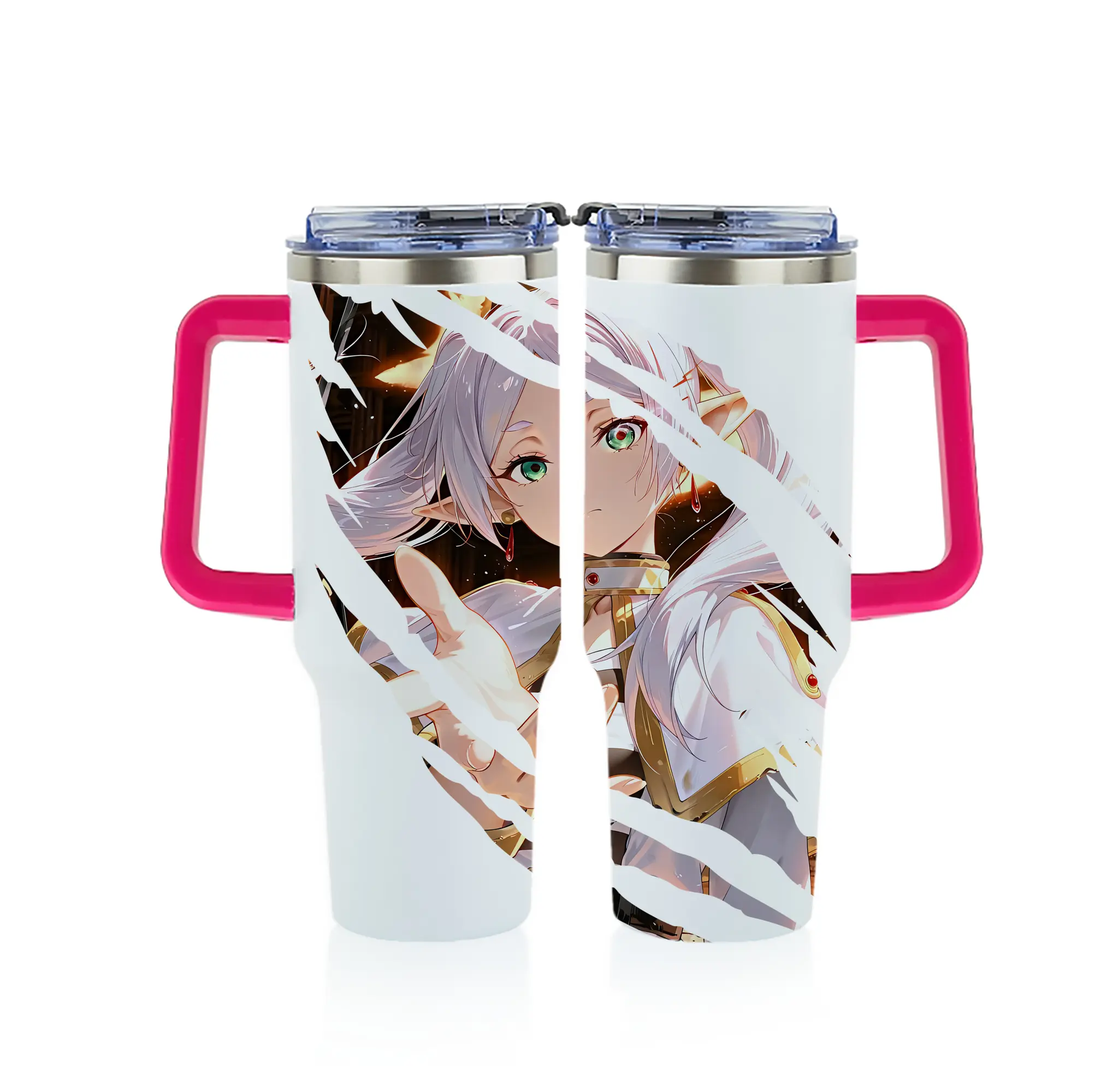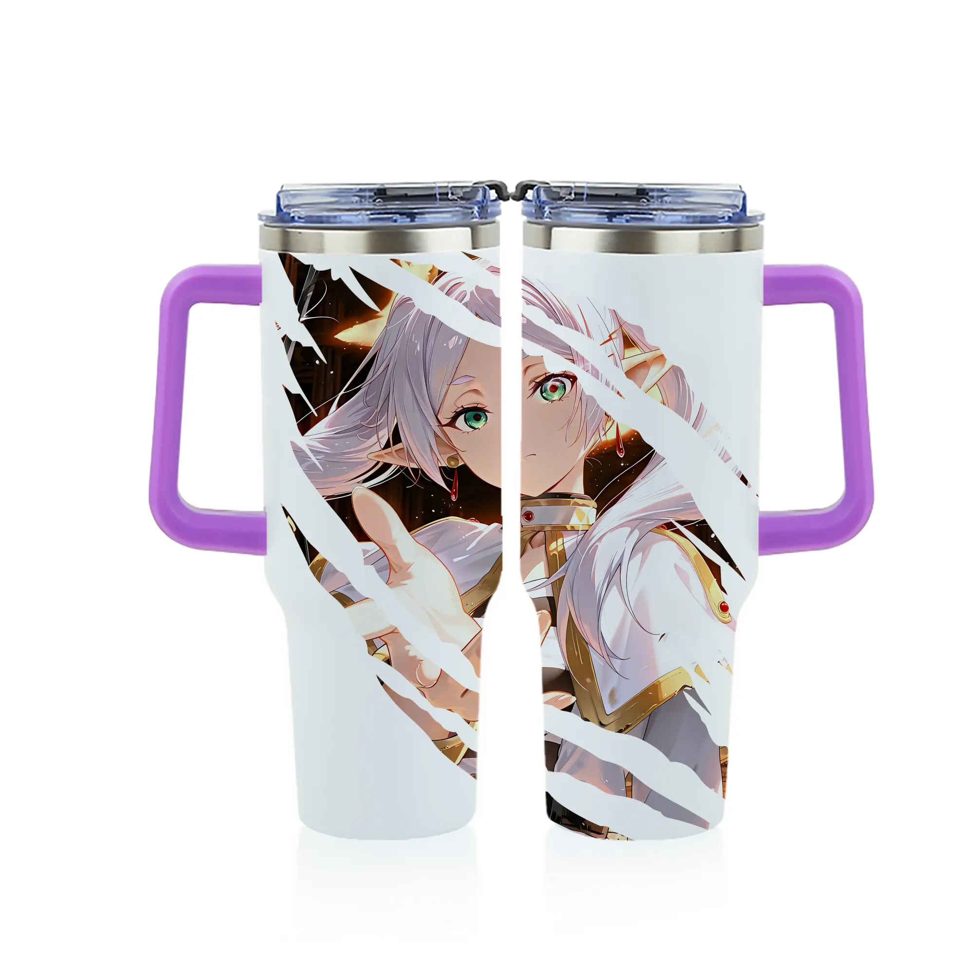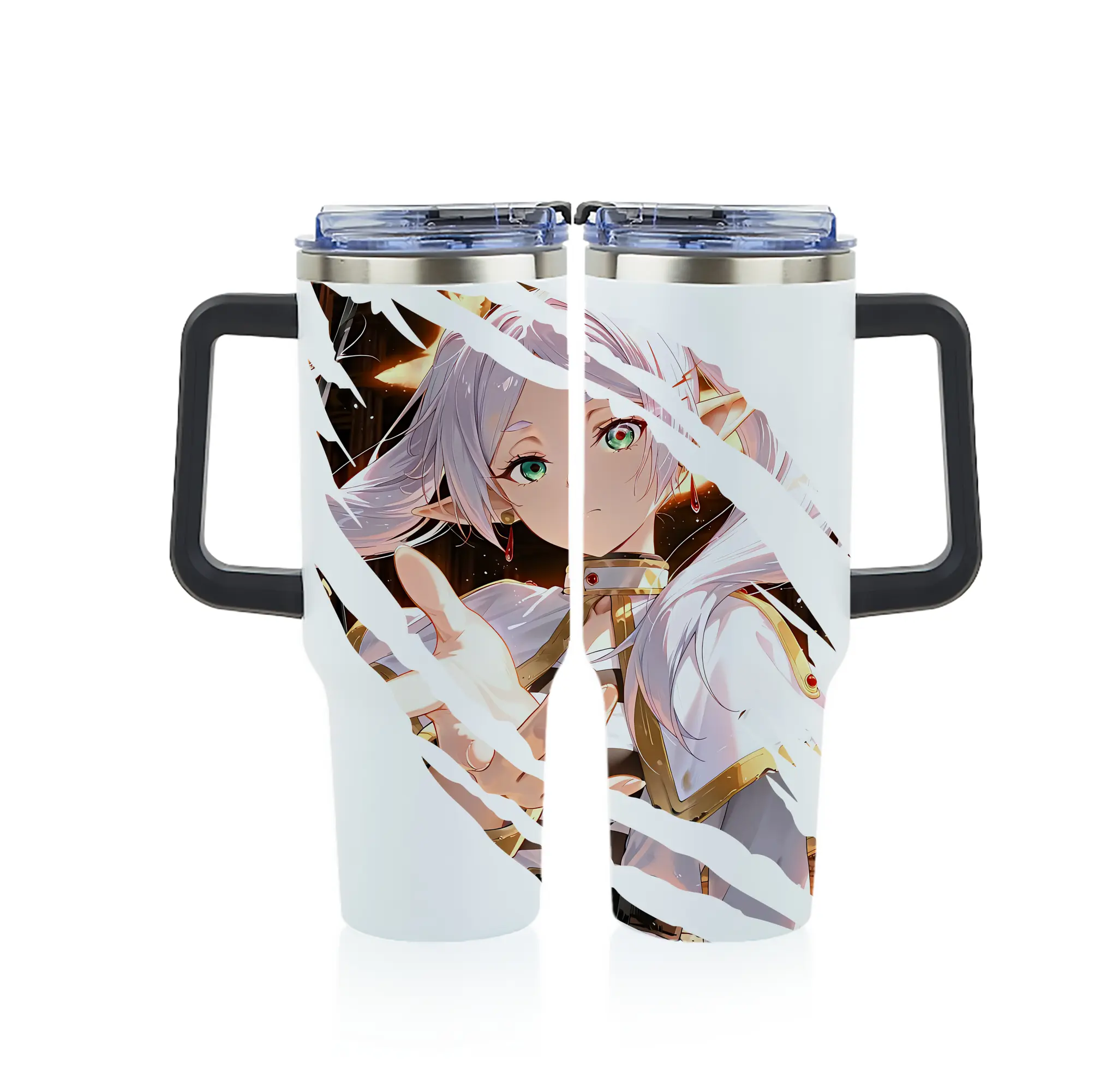 葬送のフリーレン(Frieren) グッズ,フリーレン(Frieren) - 1200mL フルプリント車用タンブラー ・ 304ステンレス 内側 ・ 201ステンレス 外側 ・ 保温 保冷 ・ 通勤 ドライブ アウトドア用