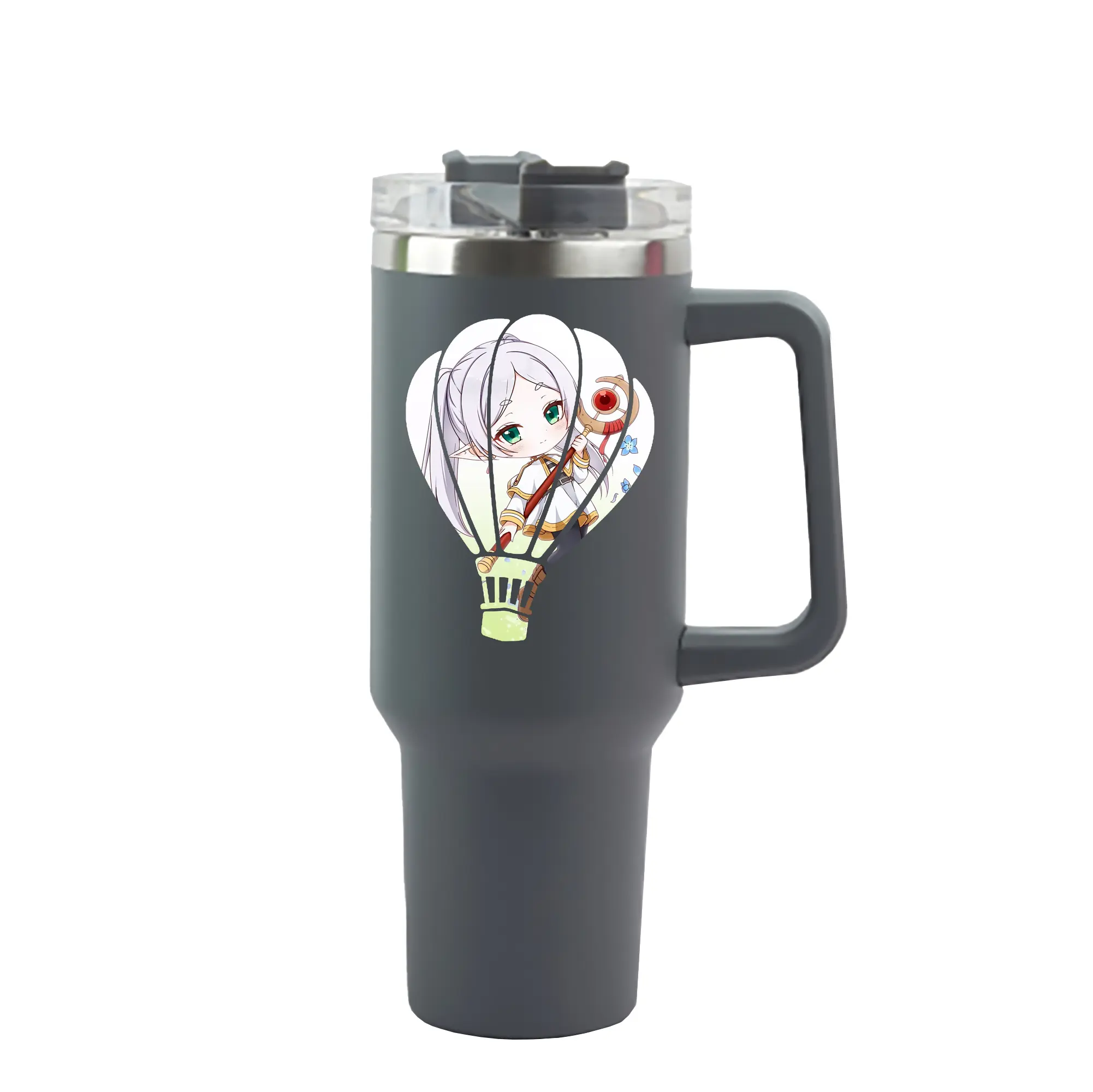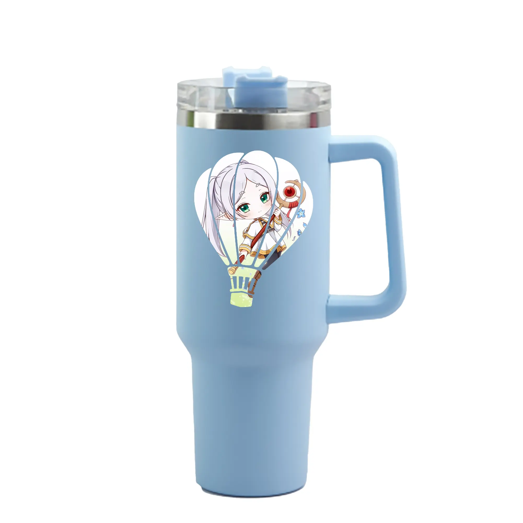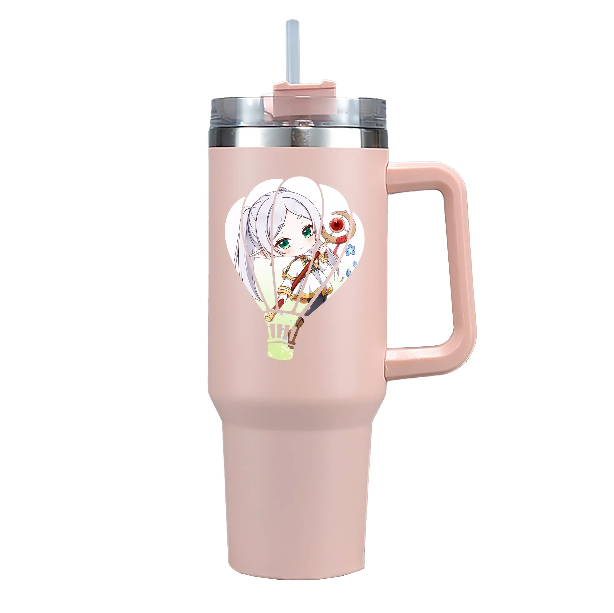 葬送のフリーレン(Frieren) グッズ,フリーレン(Frieren) - 1200mL 車用タンブラー ・ クリスタルステッカー ・ 304ステンレス 内側 ・ 201ステンレス 外側 ・ 保温 保冷 ・ ハンドル&ストロー付き ・ 通勤 ドライブ アウトドア用