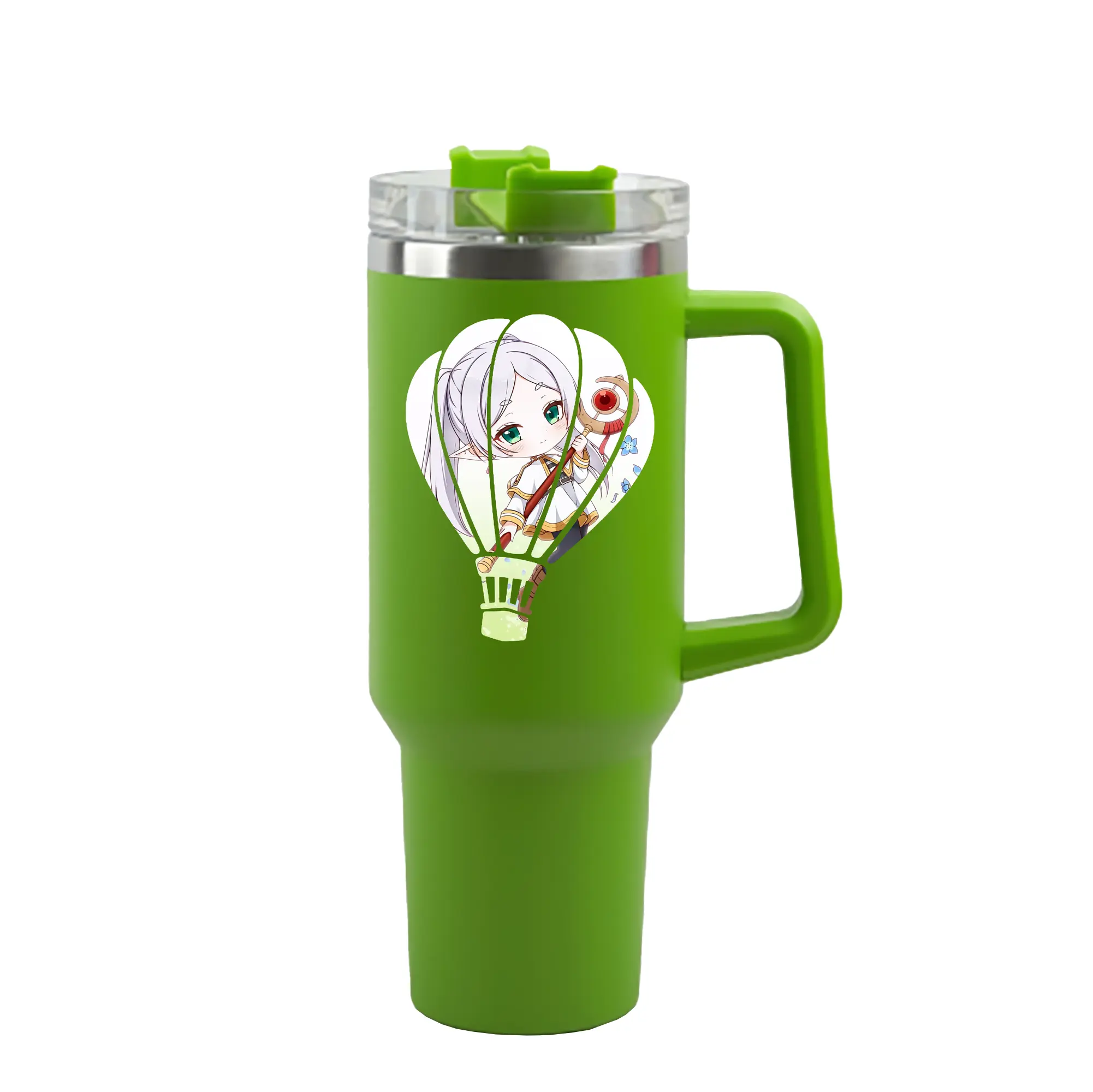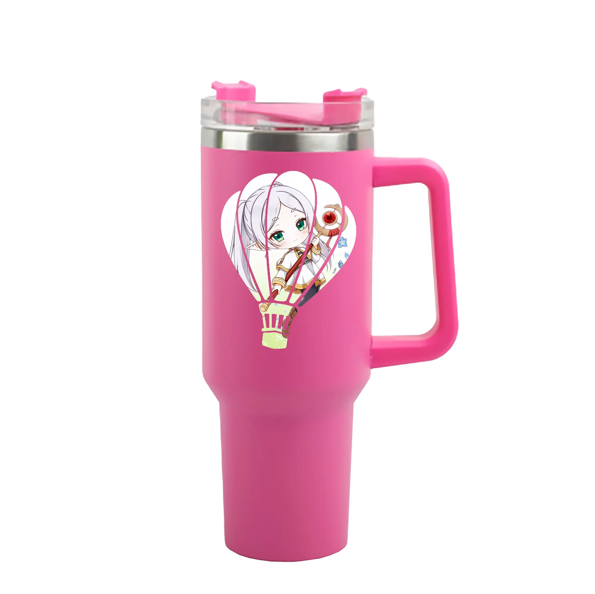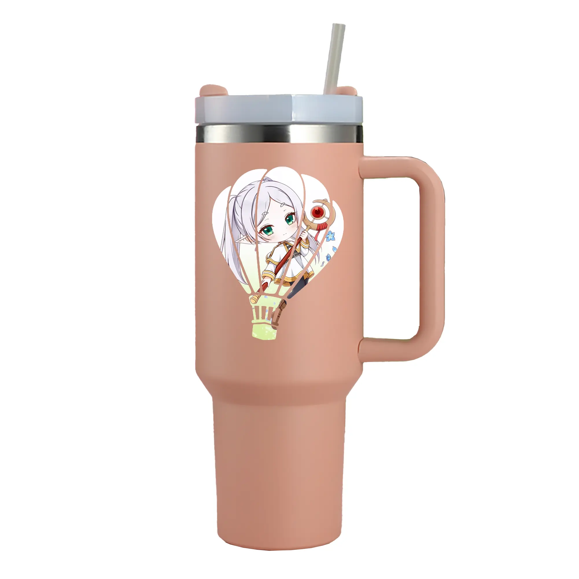 葬送のフリーレン(Frieren) グッズ,フリーレン(Frieren) - 1200mL 車用タンブラー ・ クリスタルステッカー ・ 304ステンレス 内側 ・ 201ステンレス 外側 ・ 保温 保冷 ・ ハンドル&ストロー付き ・ 通勤 ドライブ アウトドア用