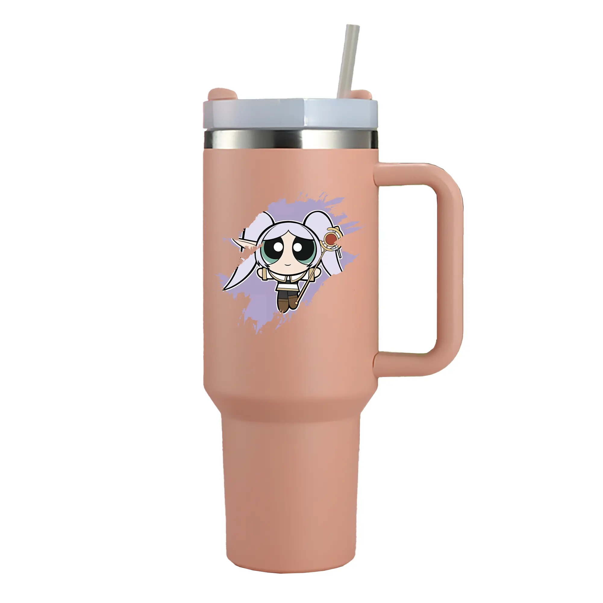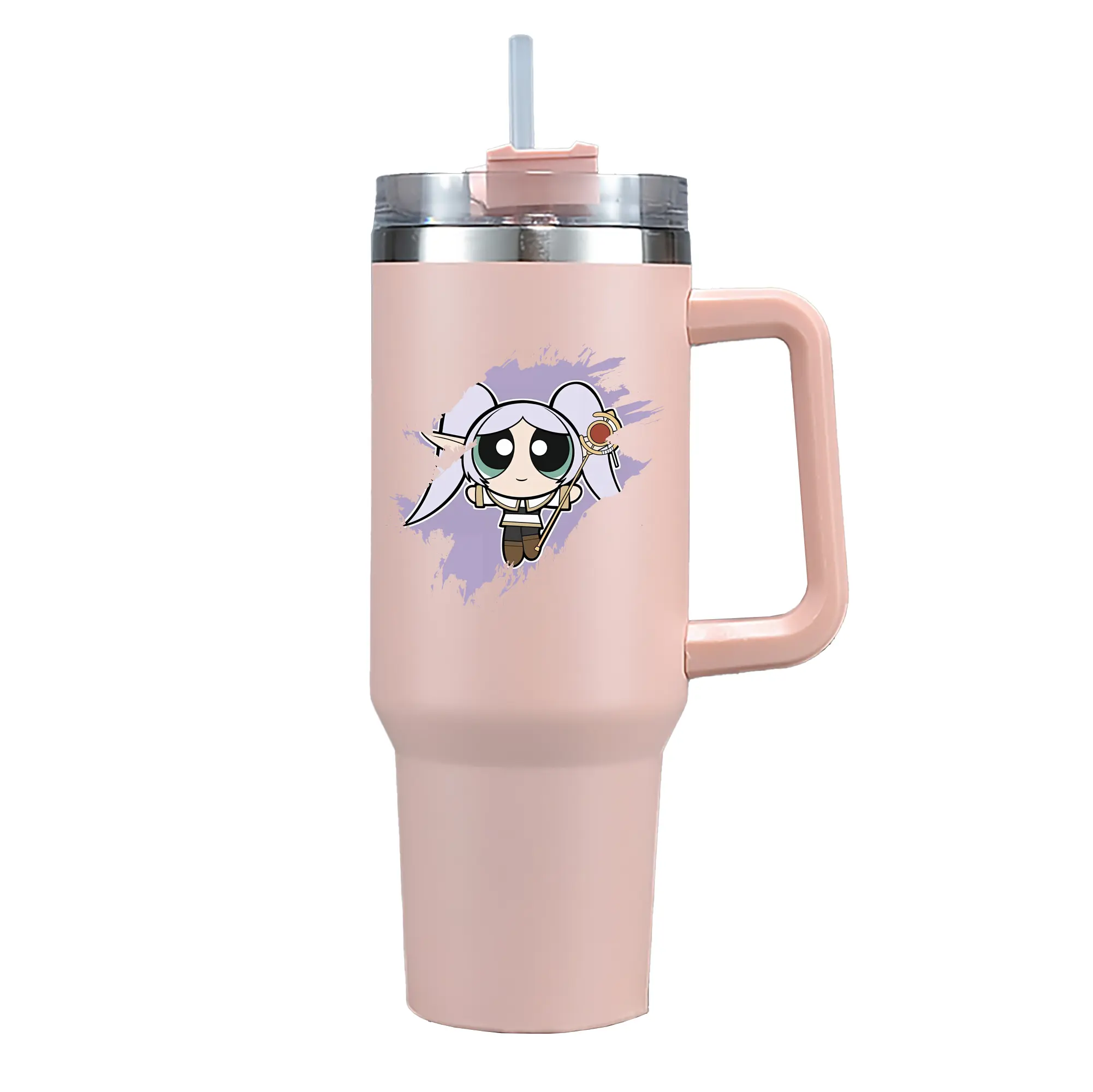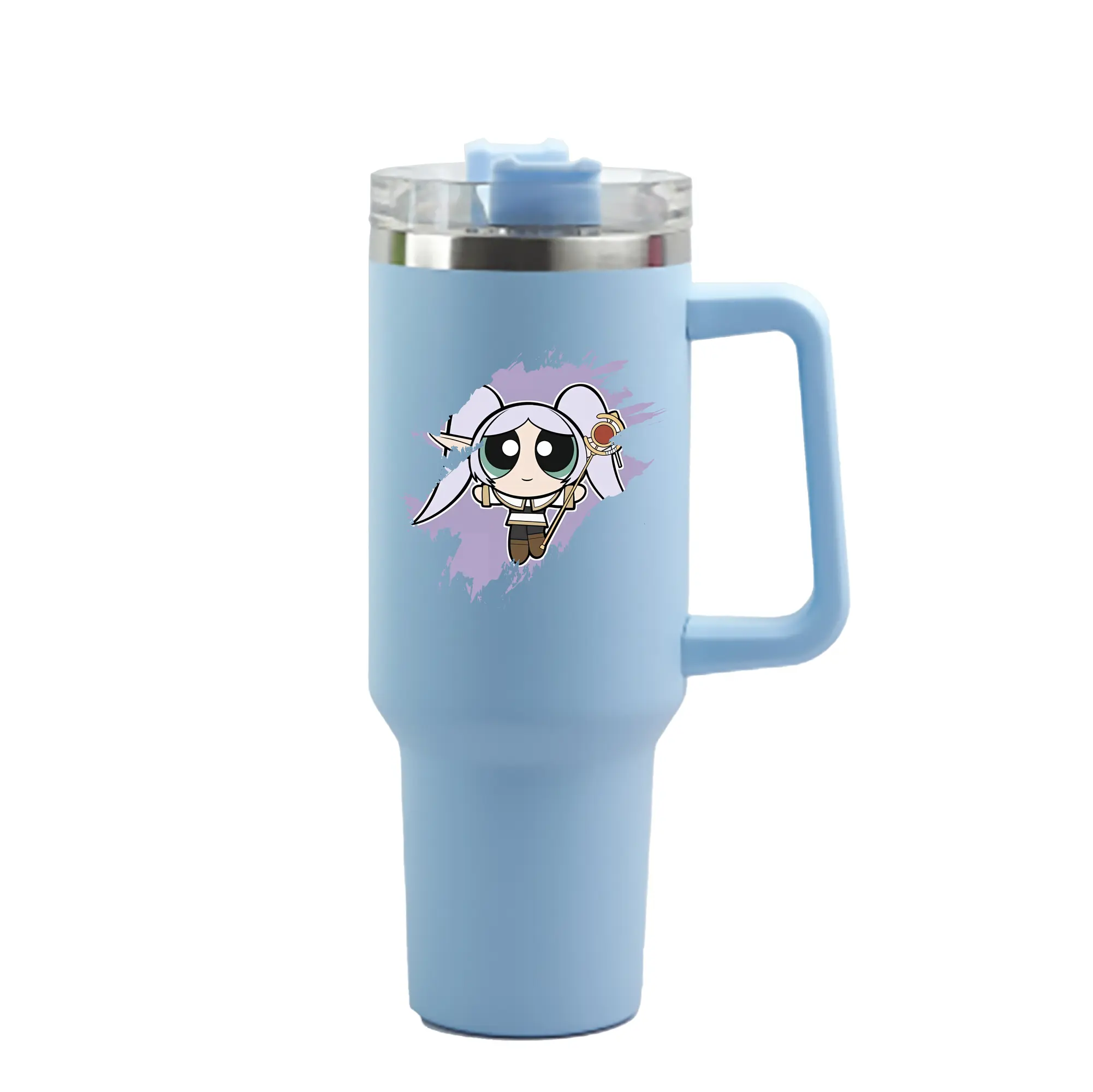 葬送のフリーレン(Frieren) グッズ,フリーレン(Frieren) - 1200mL 車用タンブラー ・ クリスタルステッカー ・ 304ステンレス 内側 ・ 201ステンレス 外側 ・ 保温 保冷 ・ ハンドル&ストロー付き ・ 通勤 ドライブ アウトドア用
