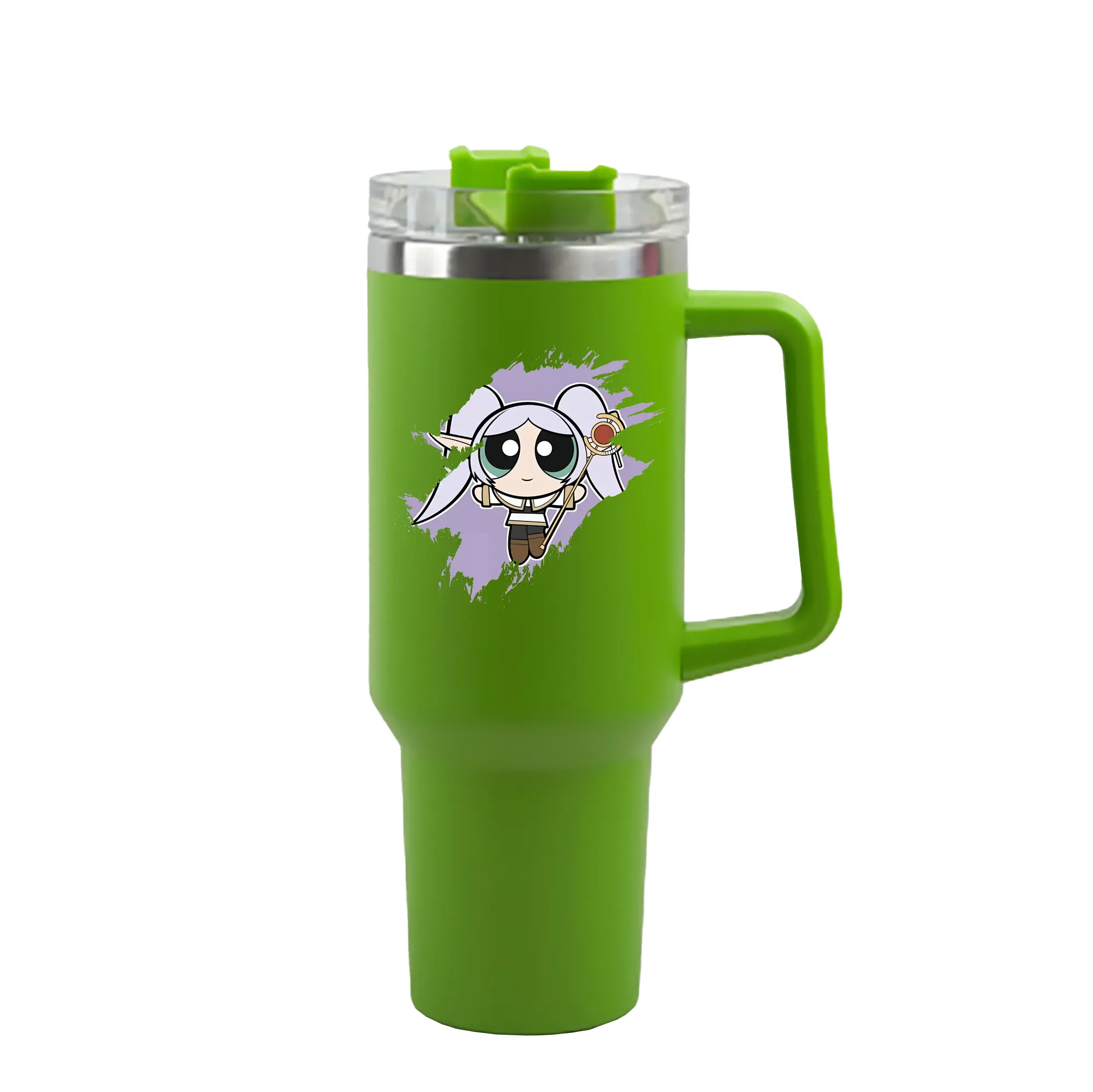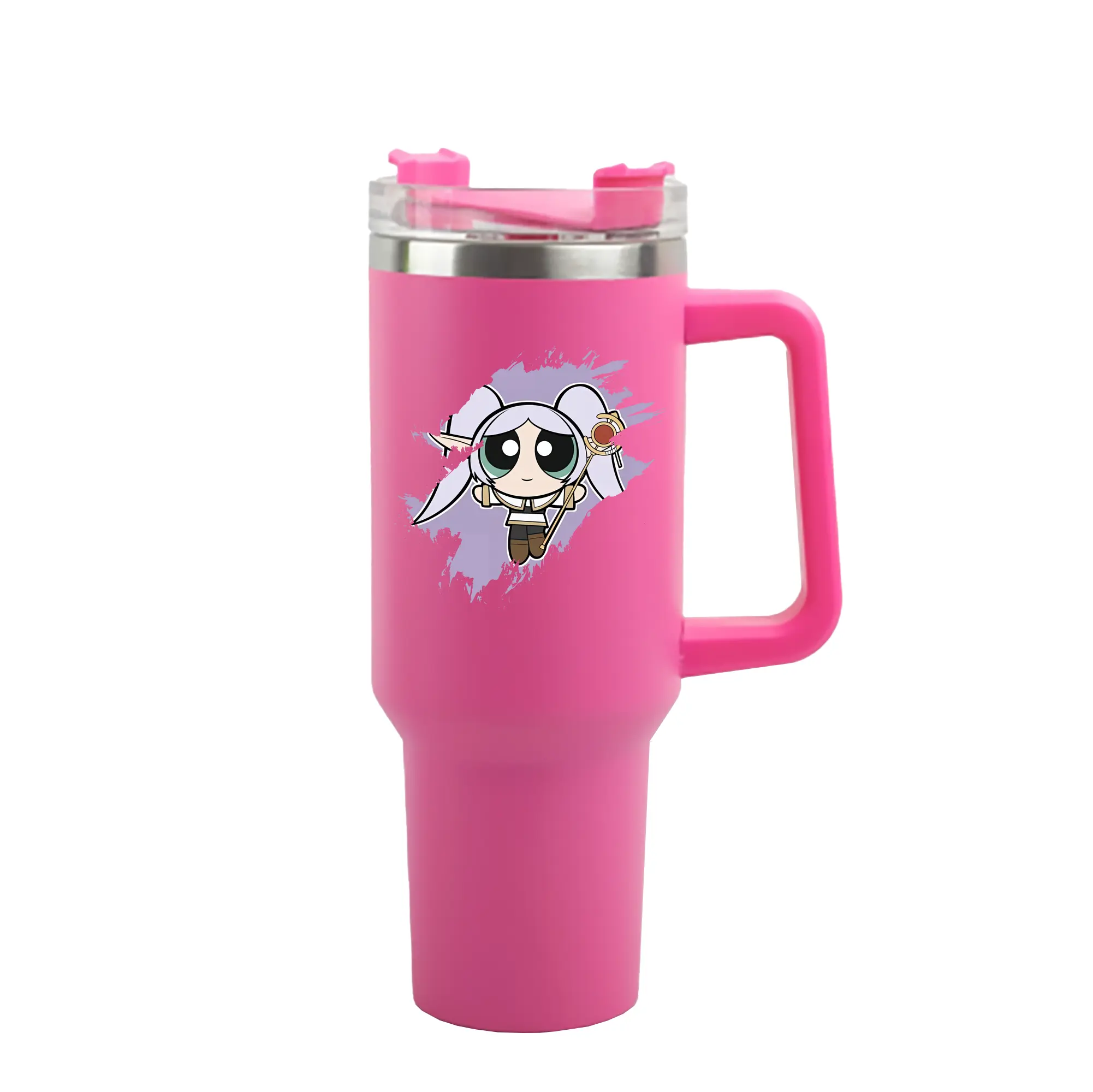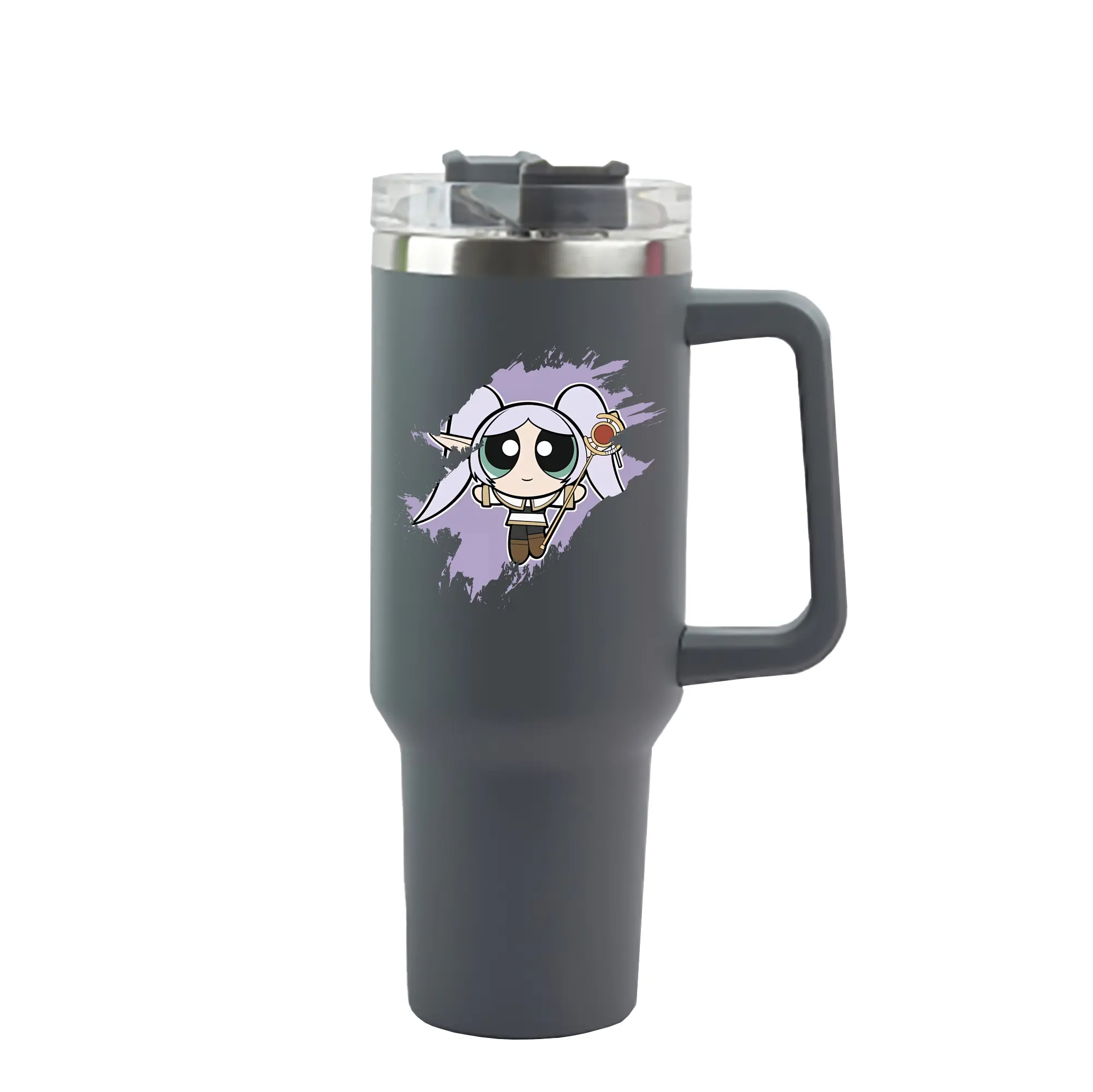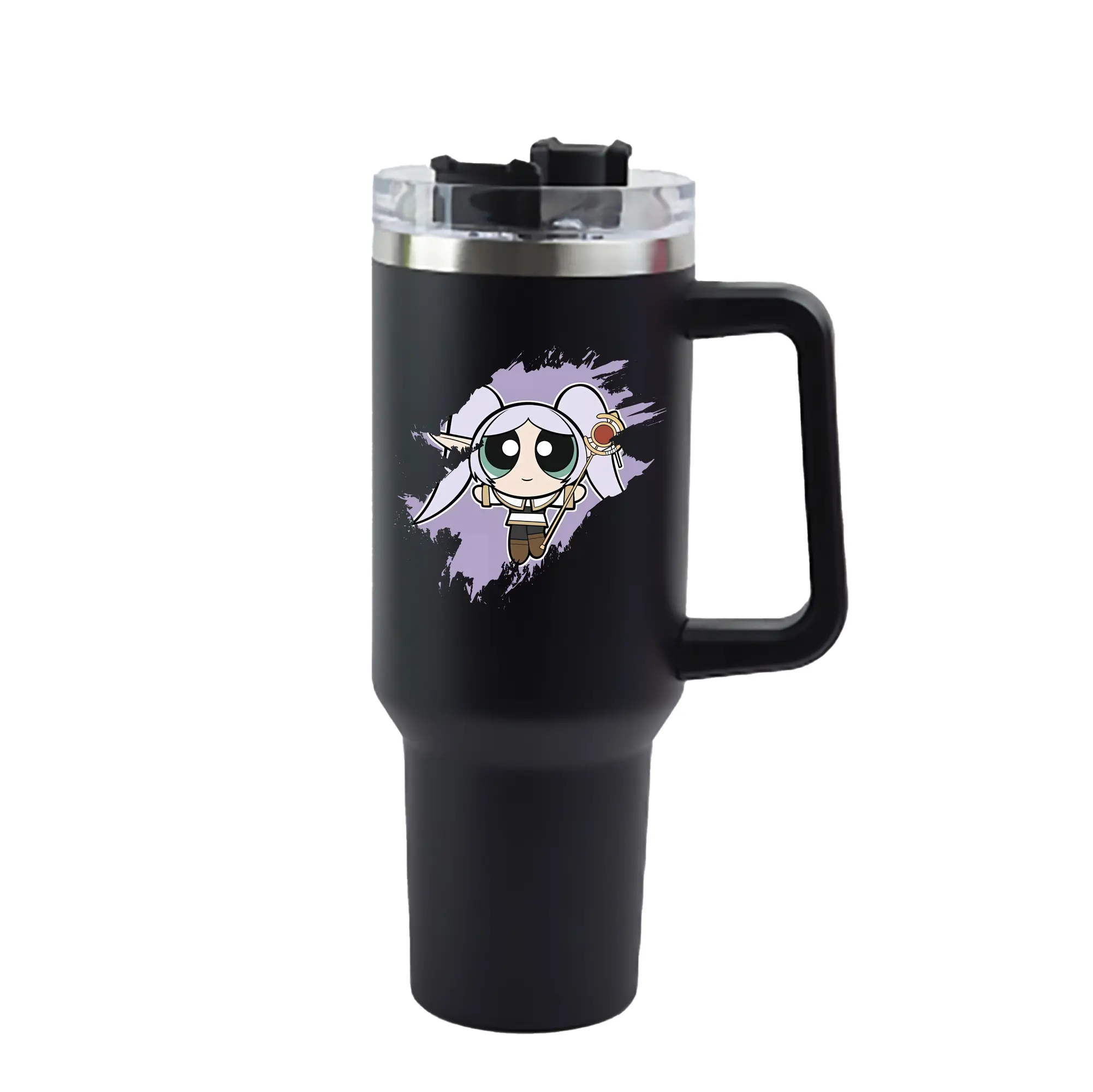 葬送のフリーレン(Frieren) グッズ,フリーレン(Frieren) - 1200mL 車用タンブラー ・ クリスタルステッカー ・ 304ステンレス 内側 ・ 201ステンレス 外側 ・ 保温 保冷 ・ ハンドル&ストロー付き ・ 通勤 ドライブ アウトドア用