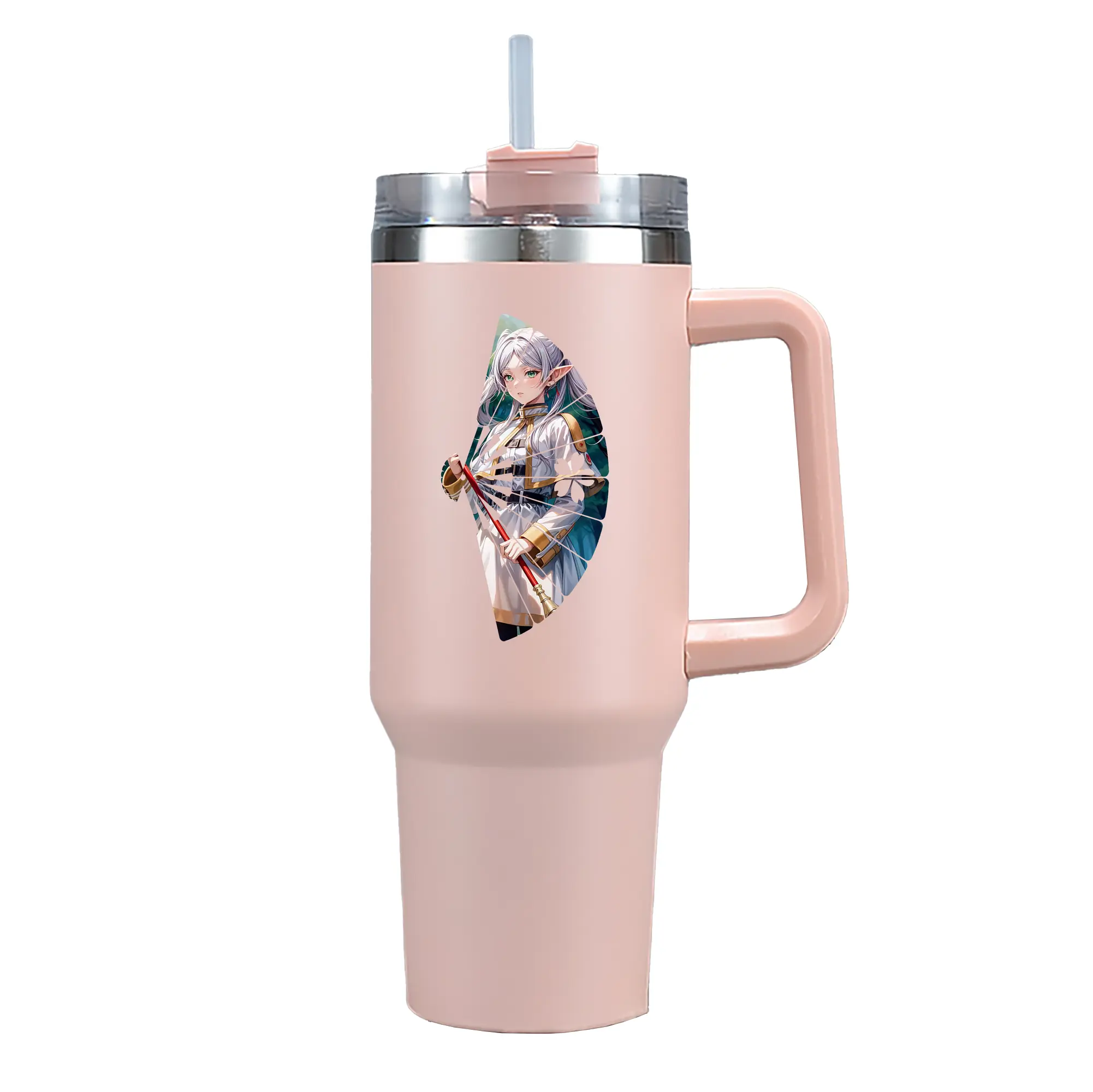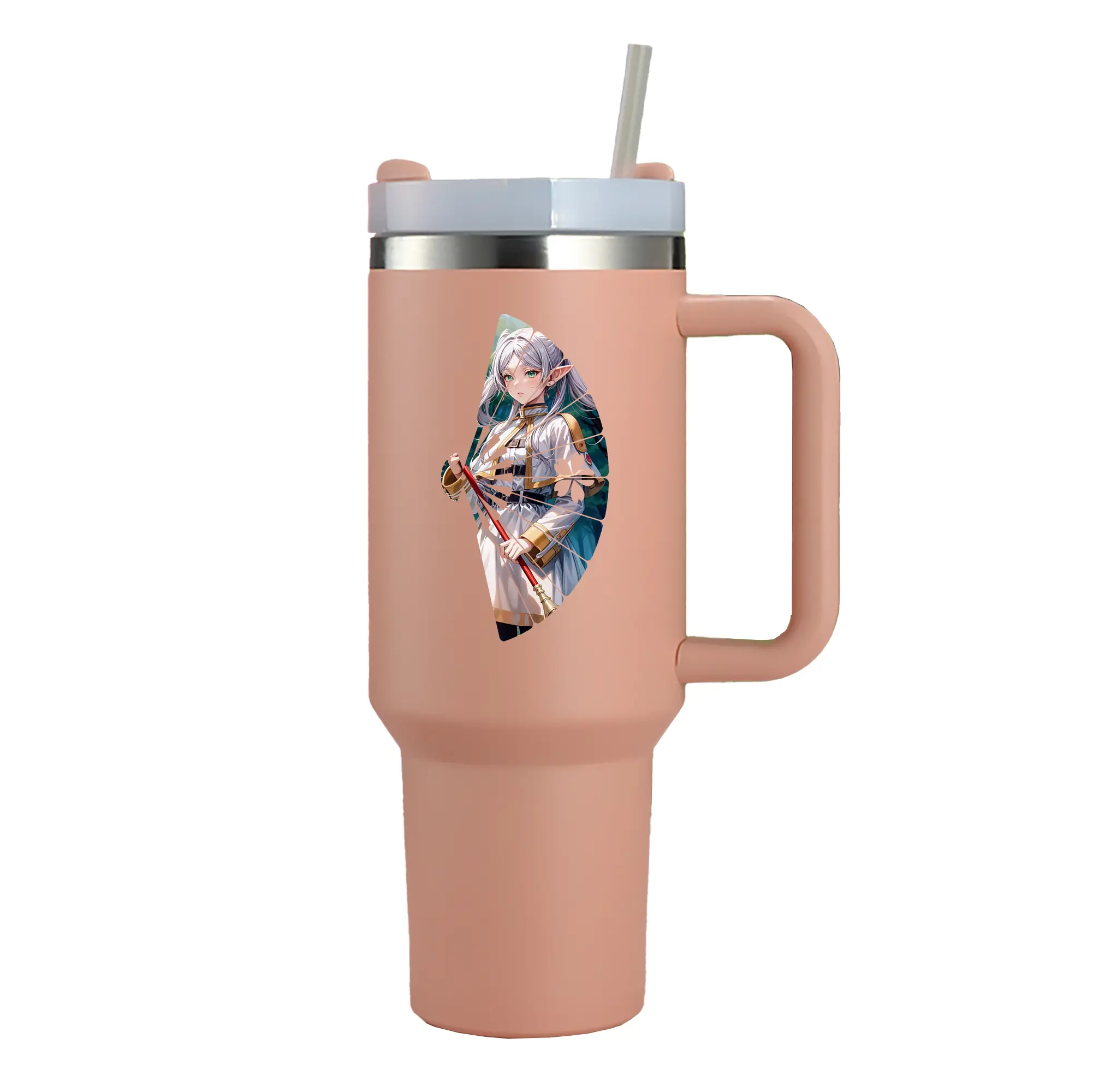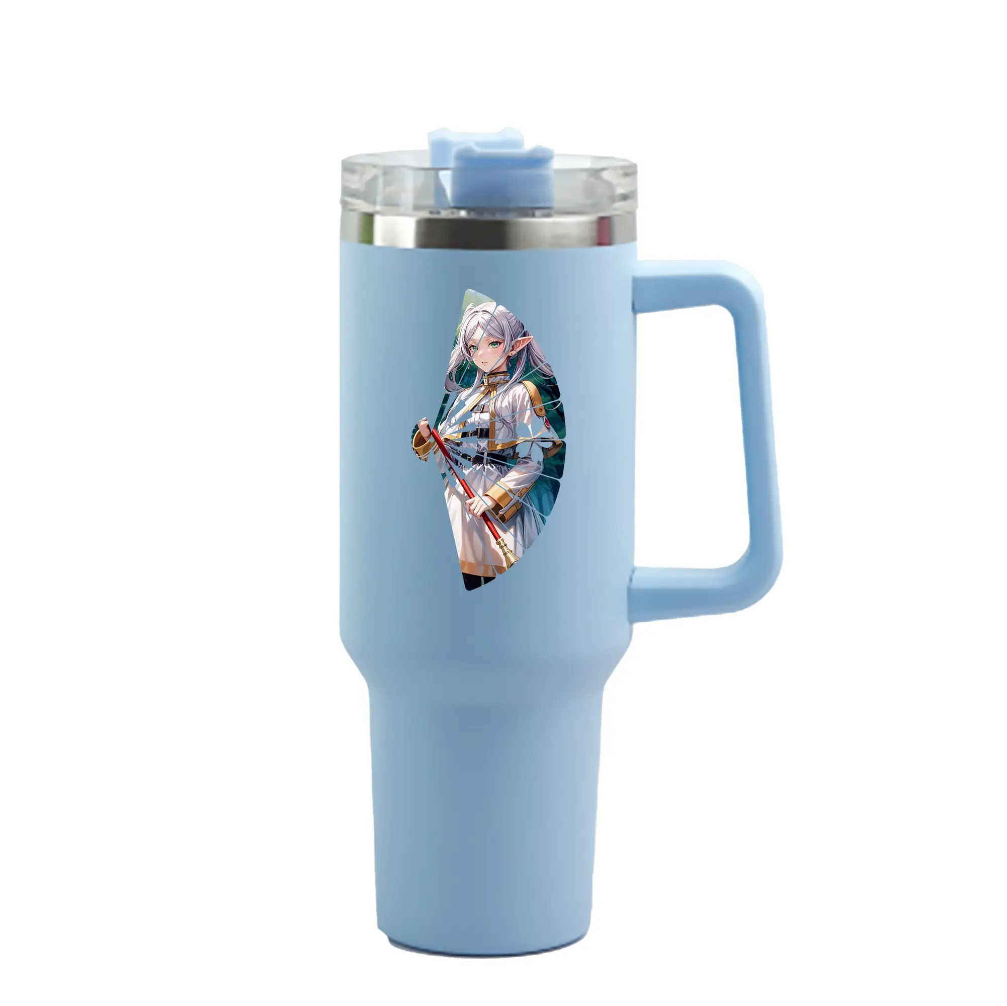 葬送のフリーレン(Frieren) グッズ,フリーレン(Frieren) - 1200mL 車用タンブラー ・ クリスタルステッカー ・ 304ステンレス 内側 ・ 201ステンレス 外側 ・ 保温 保冷 ・ ハンドル&ストロー付き ・ 通勤 ドライブ アウトドア用