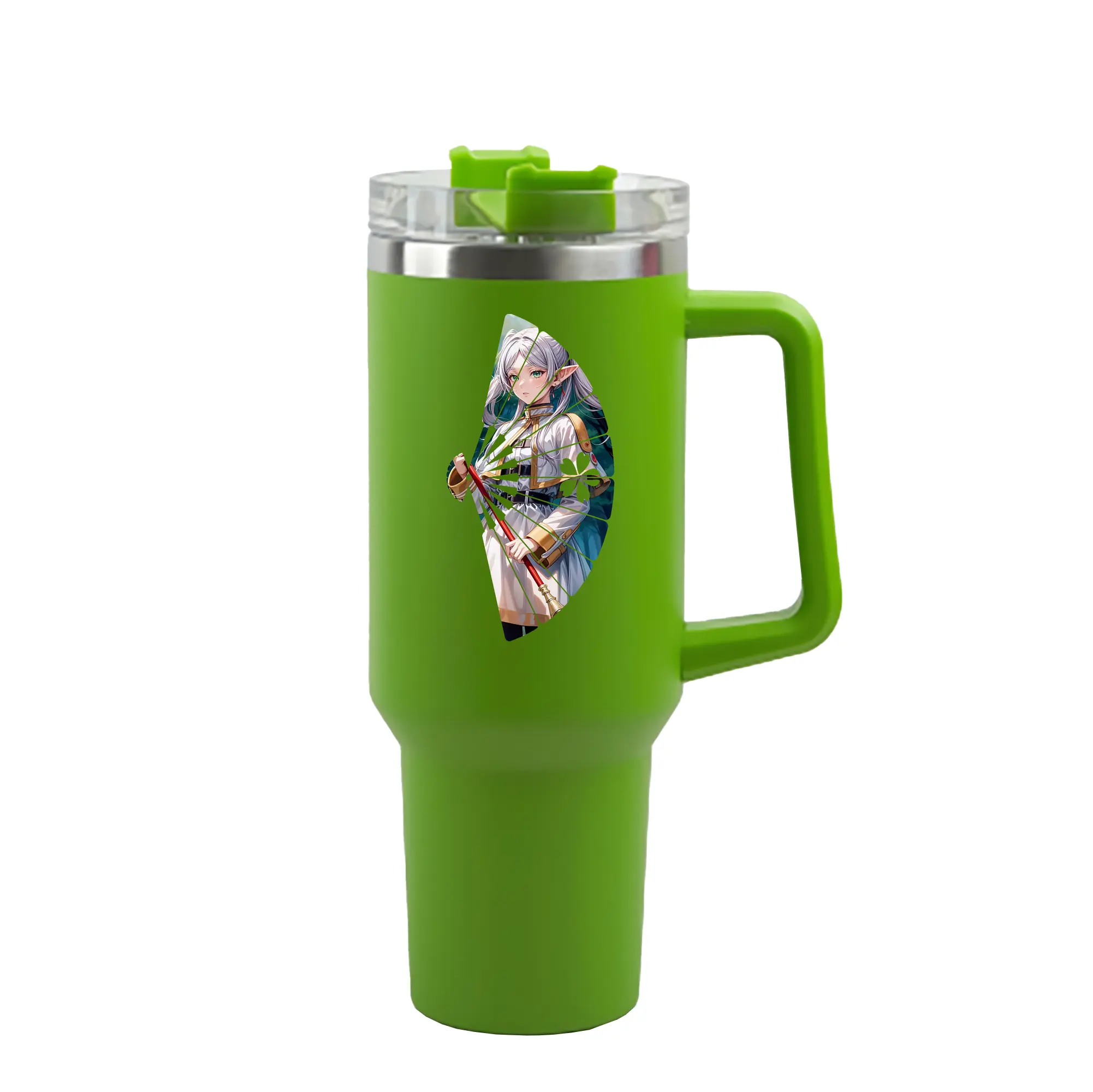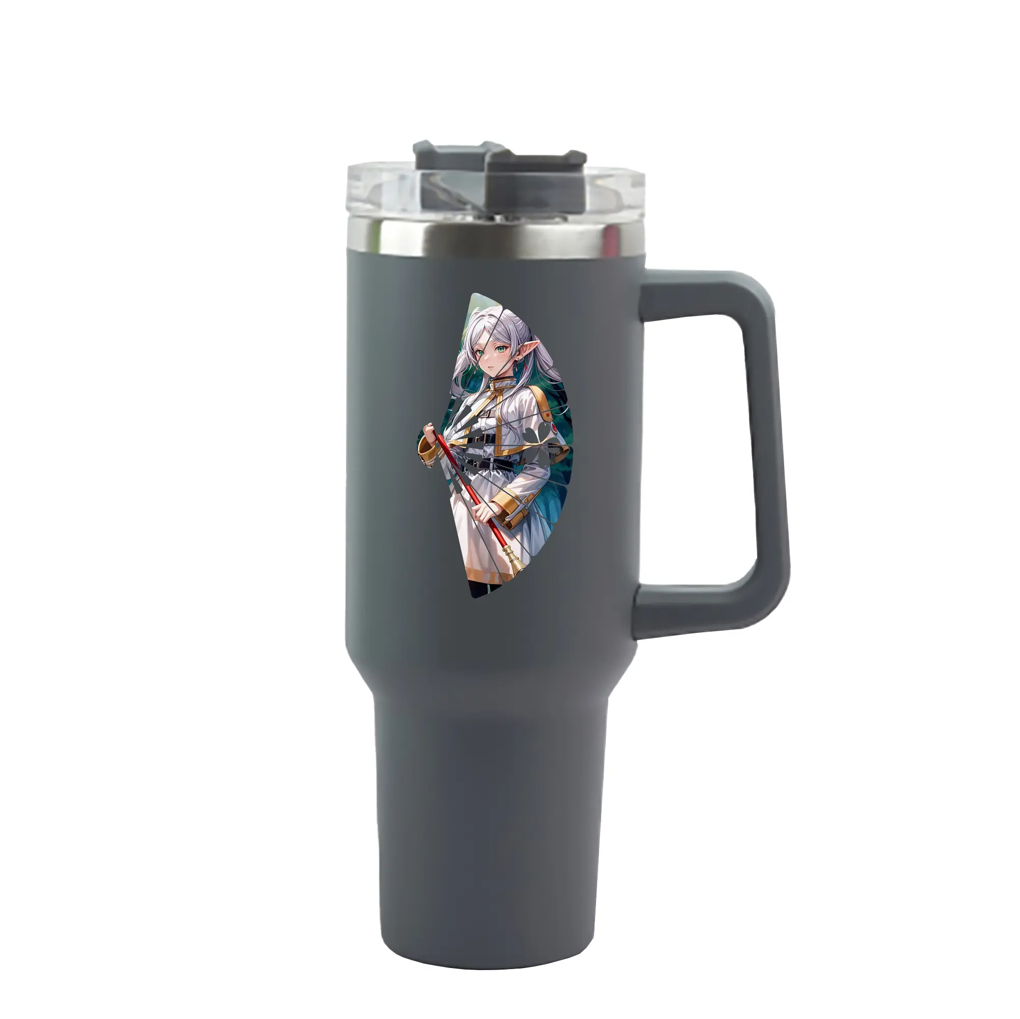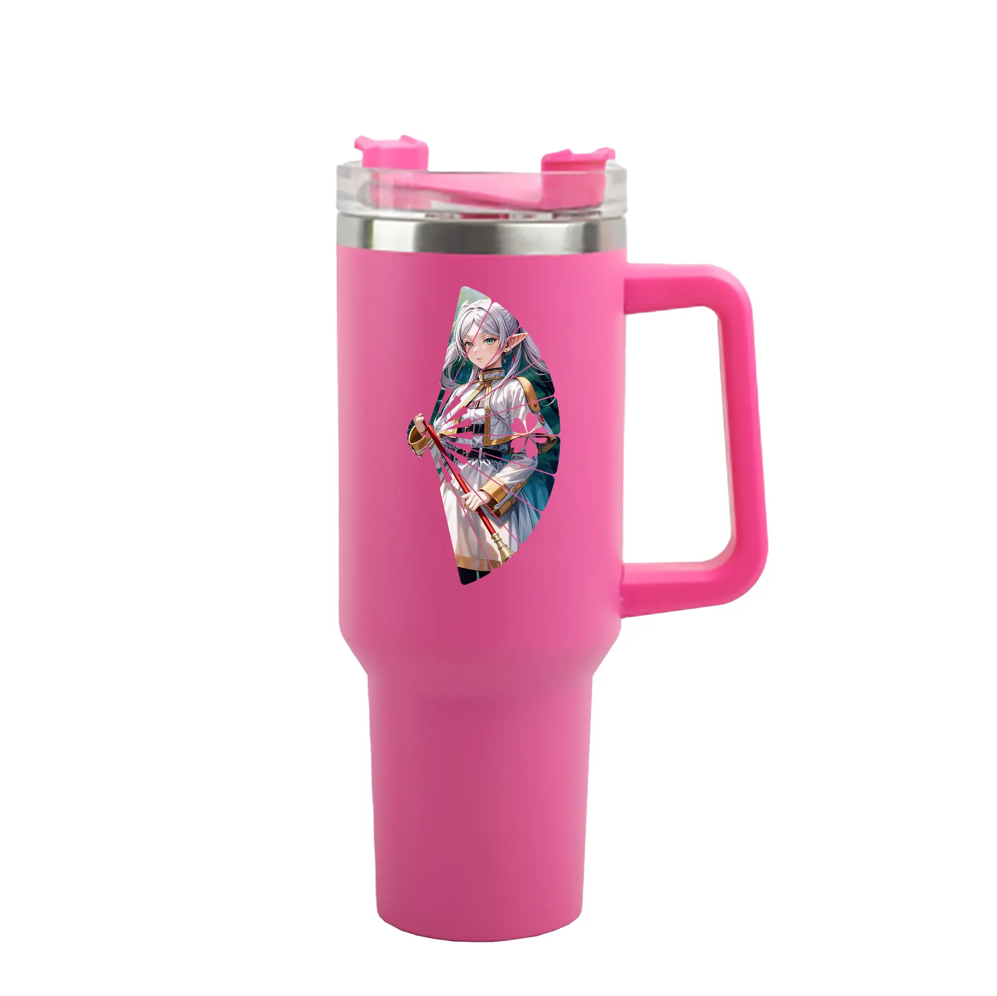 葬送のフリーレン(Frieren) グッズ,フリーレン(Frieren) - 1200mL 車用タンブラー ・ クリスタルステッカー ・ 304ステンレス 内側 ・ 201ステンレス 外側 ・ 保温 保冷 ・ ハンドル&ストロー付き ・ 通勤 ドライブ アウトドア用