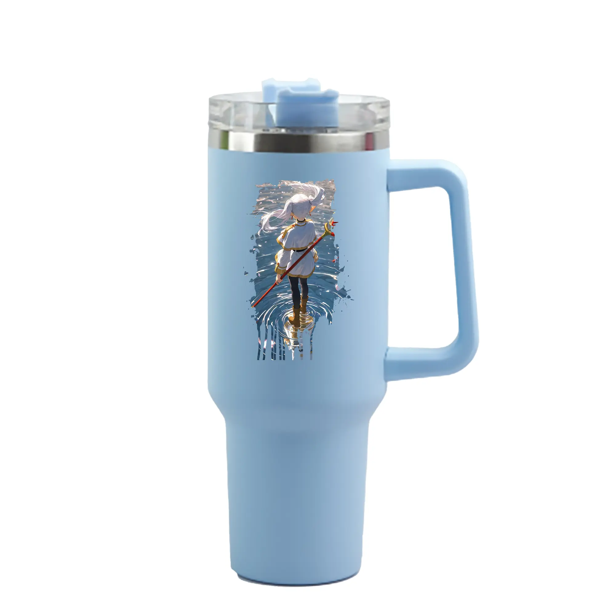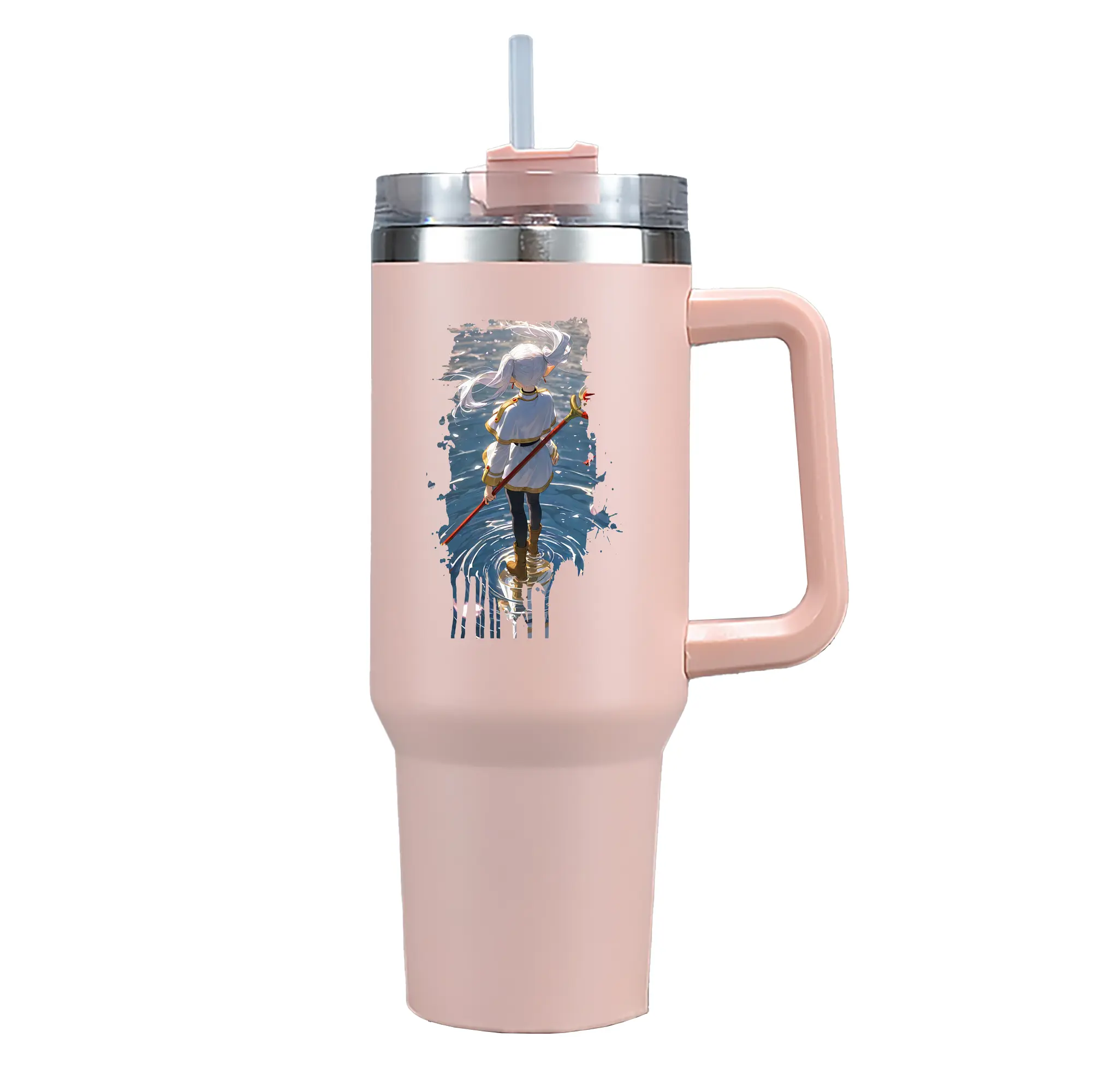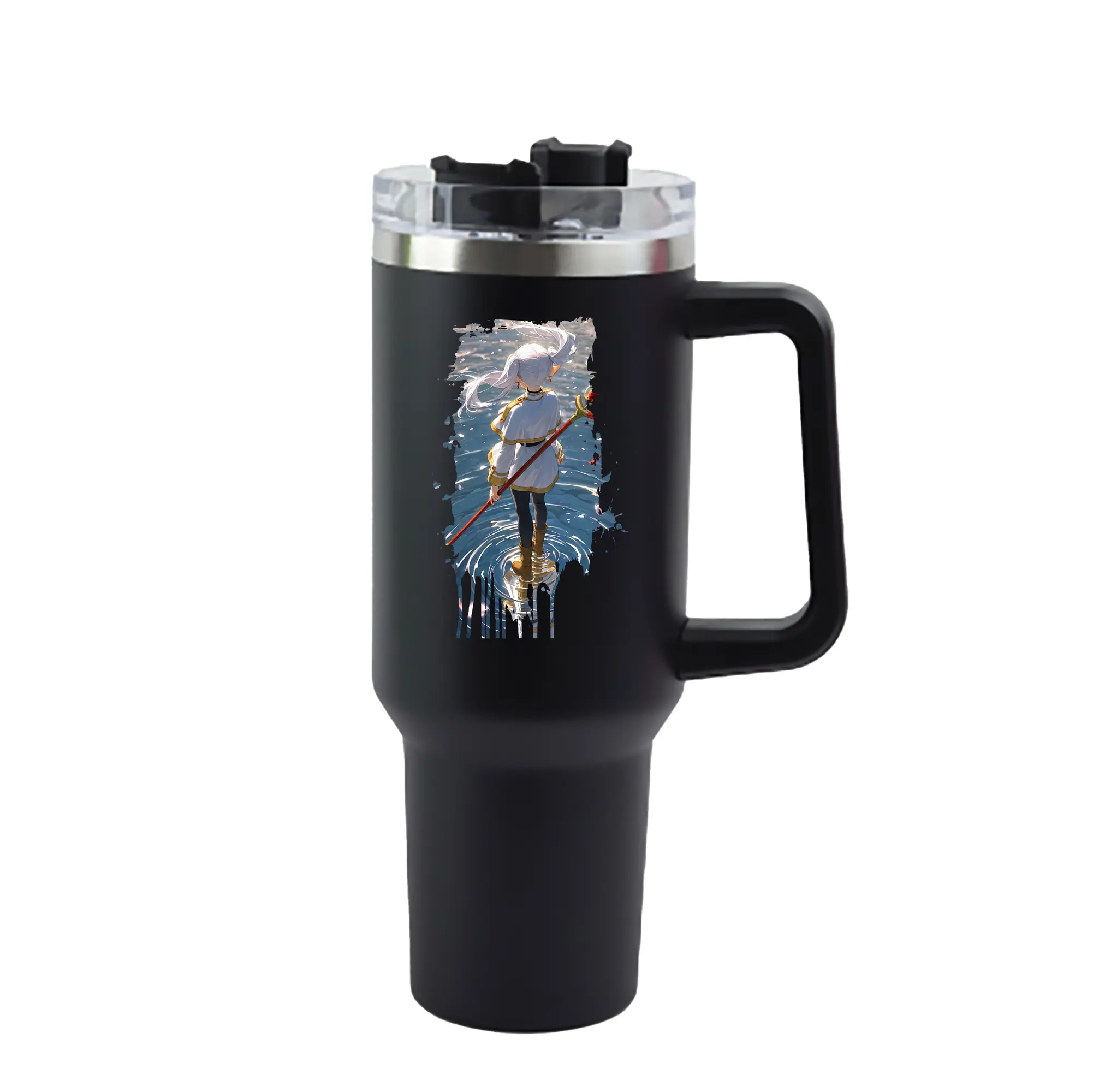 葬送のフリーレン(Frieren) グッズ,フリーレン(Frieren) - 1200mL 車用タンブラー ・ クリスタルステッカー ・ 304ステンレス 内側 ・ 201ステンレス 外側 ・ 保温 保冷 ・ ハンドル&ストロー付き ・ 通勤 ドライブ アウトドア用