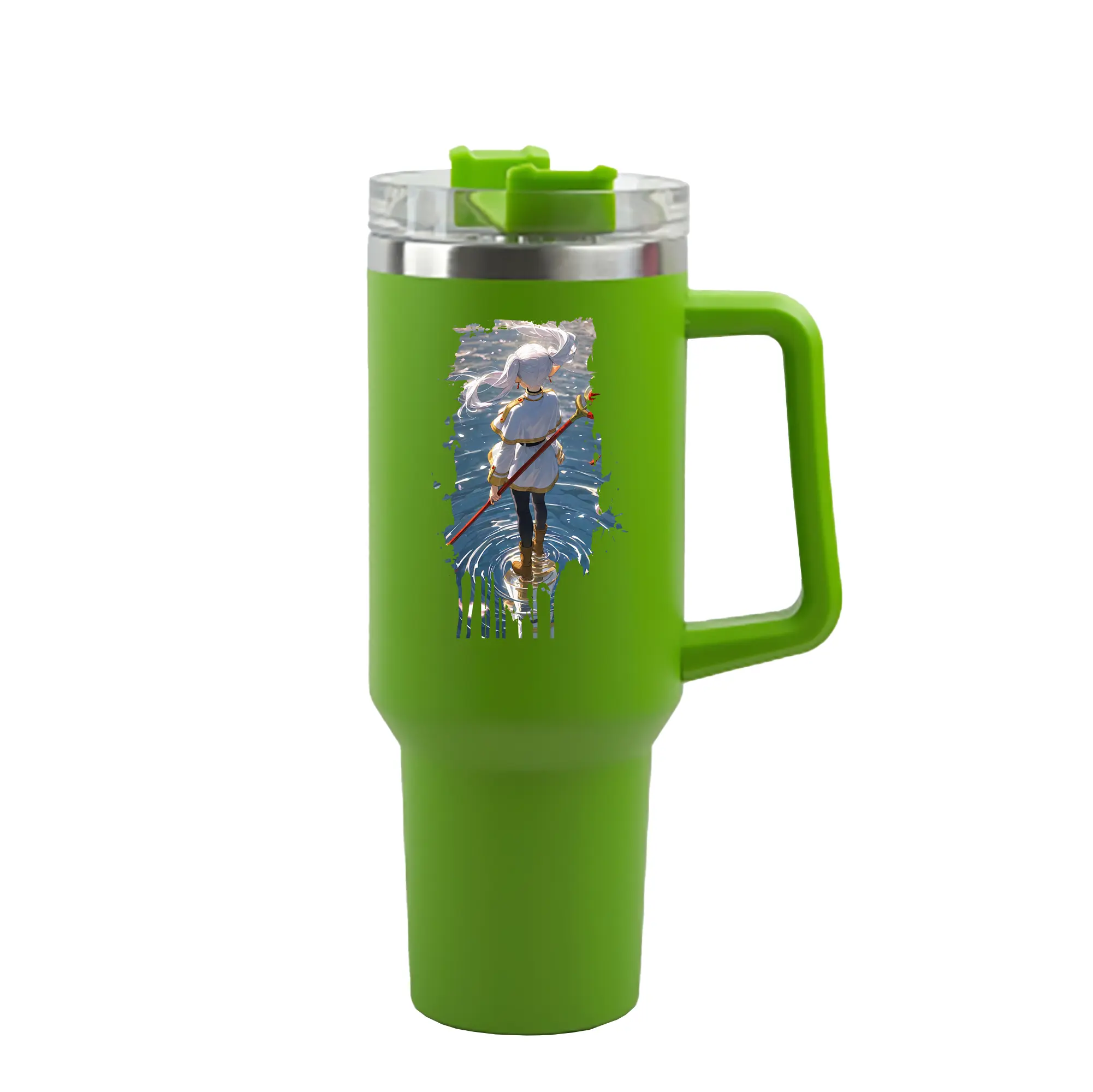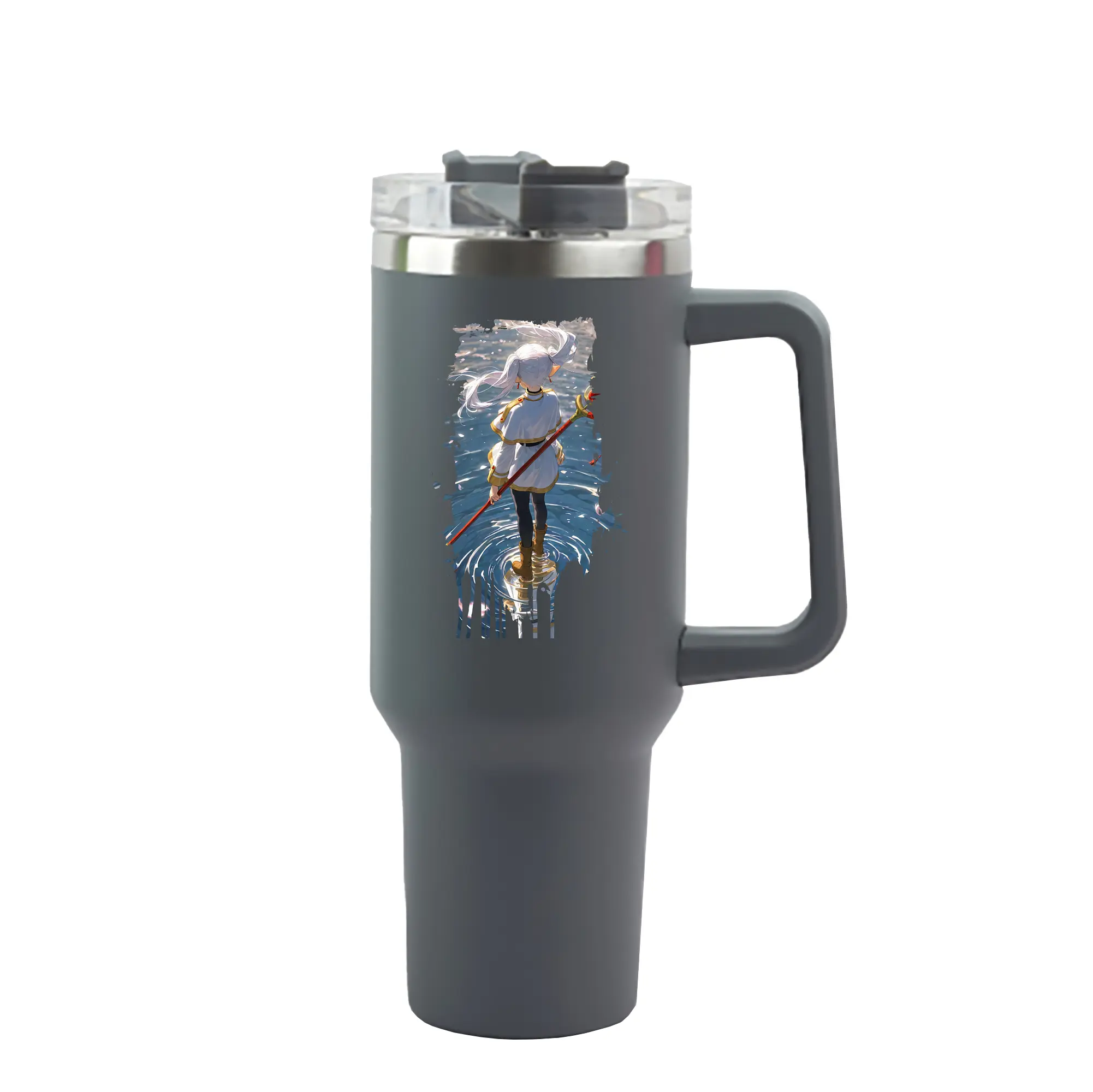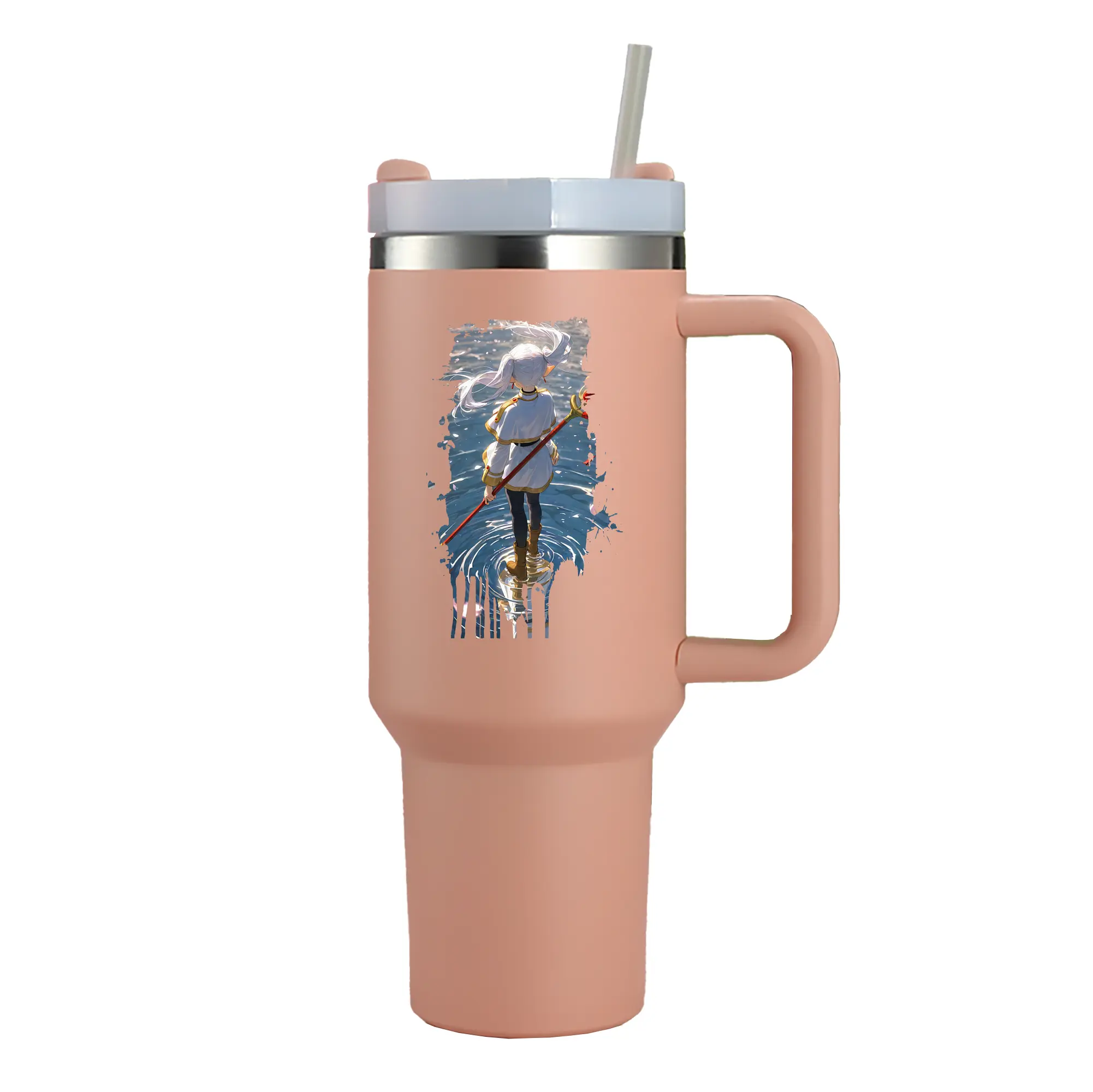 葬送のフリーレン(Frieren) グッズ,フリーレン(Frieren) - 1200mL 車用タンブラー ・ クリスタルステッカー ・ 304ステンレス 内側 ・ 201ステンレス 外側 ・ 保温 保冷 ・ ハンドル&ストロー付き ・ 通勤 ドライブ アウトドア用