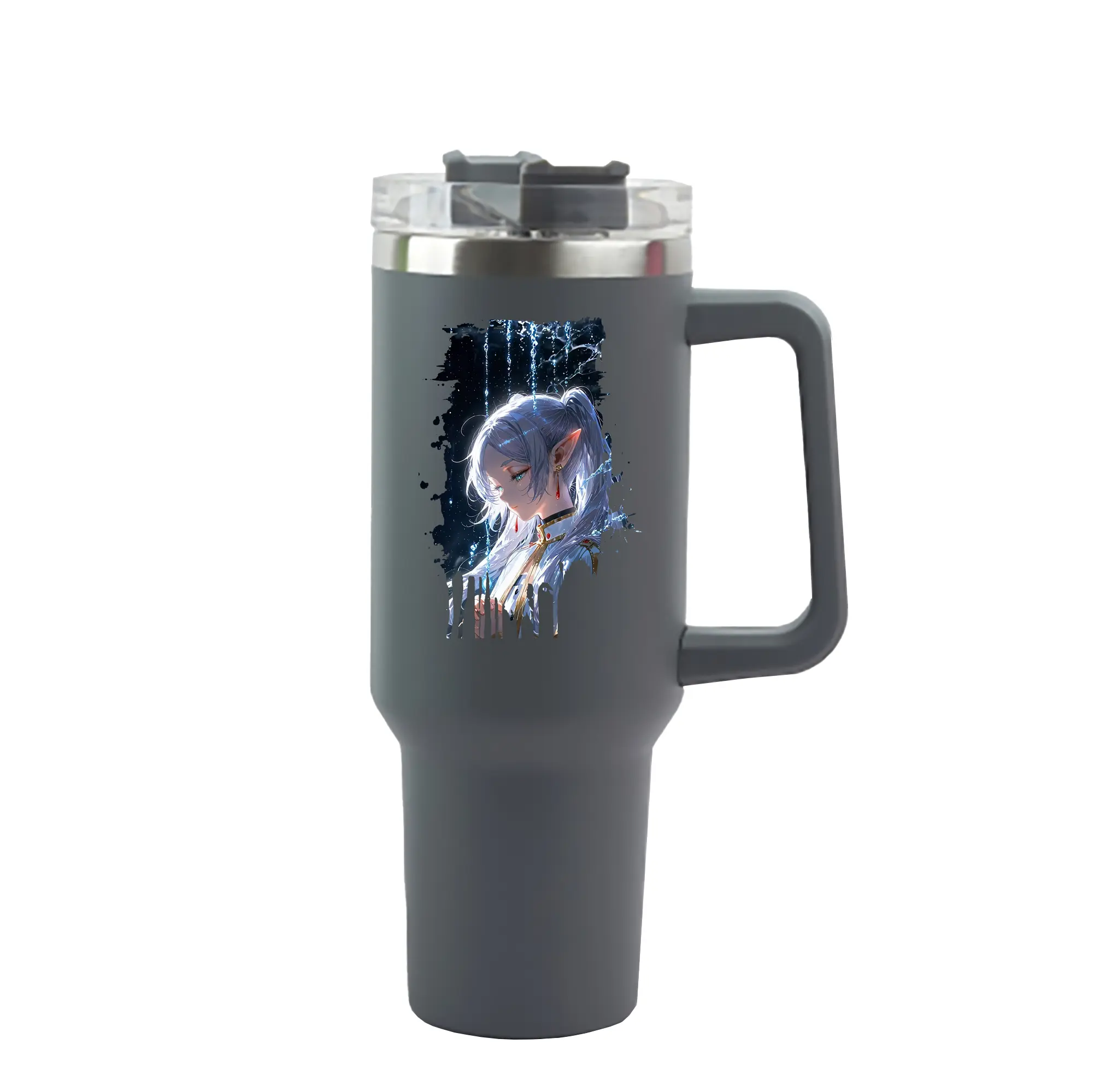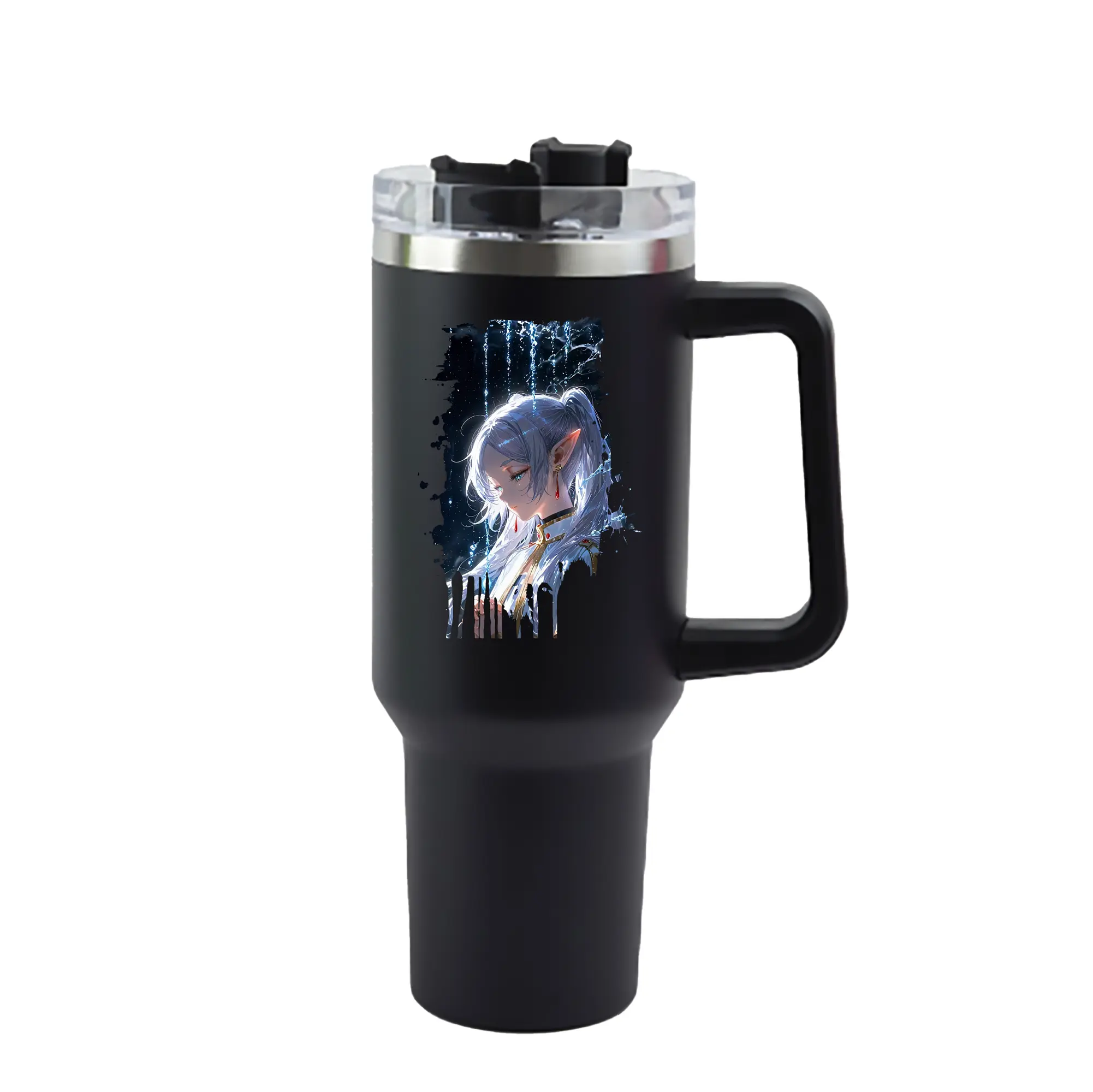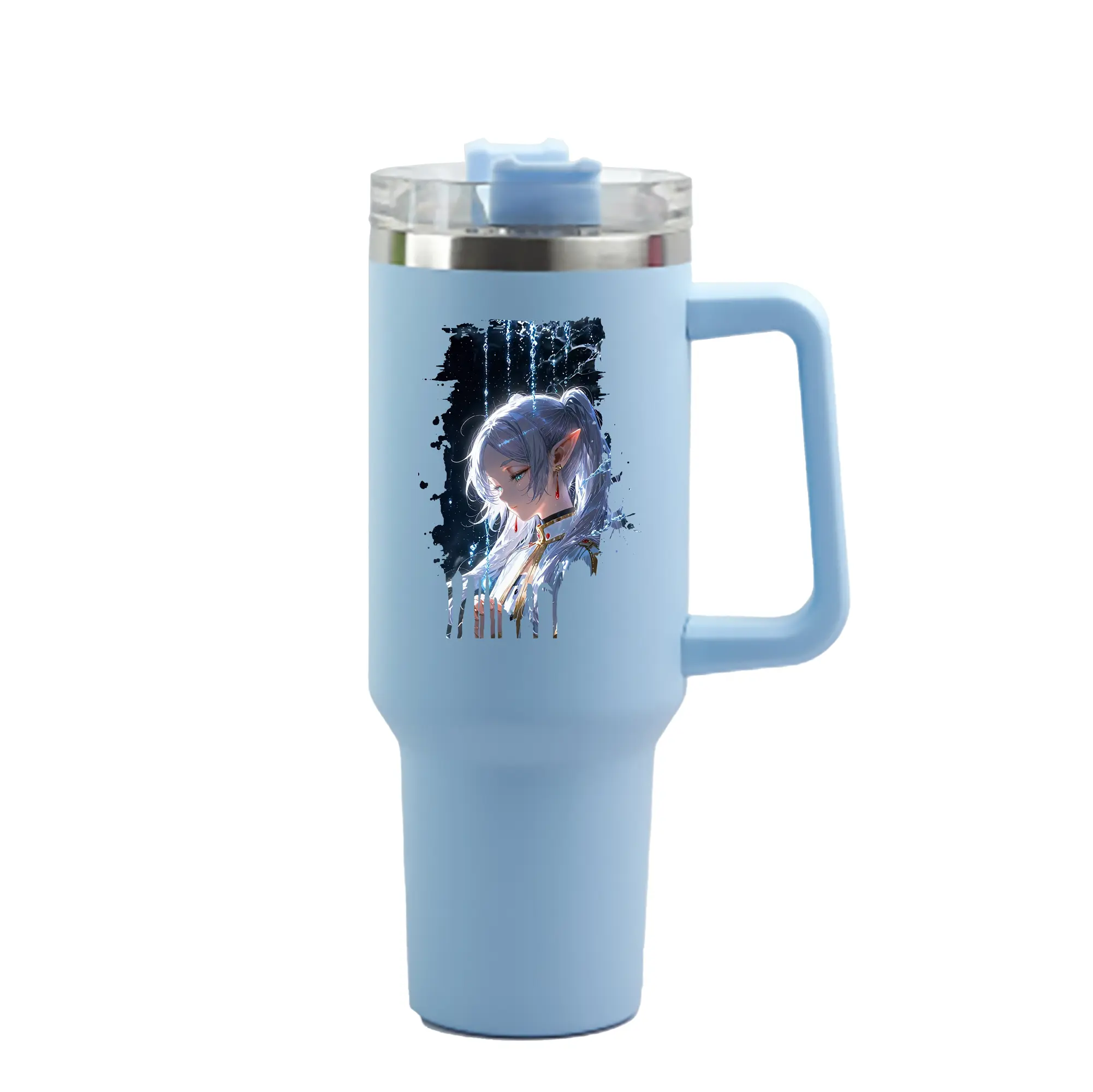 葬送のフリーレン(Frieren) グッズ,フリーレン(Frieren) - 1200mL 車用タンブラー ・ クリスタルステッカー ・ 304ステンレス 内側 ・ 201ステンレス 外側 ・ 保温 保冷 ・ ハンドル&ストロー付き ・ 通勤 ドライブ アウトドア用